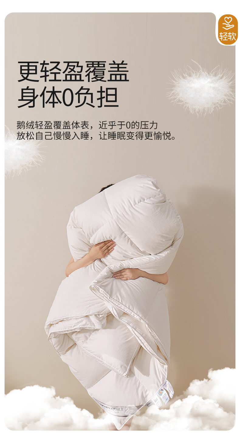 • 91家纺网 家纺一手货源 找家纺 四川牛皮席 2025新款德芙柔羽绒被 被子被芯 珍珠白
