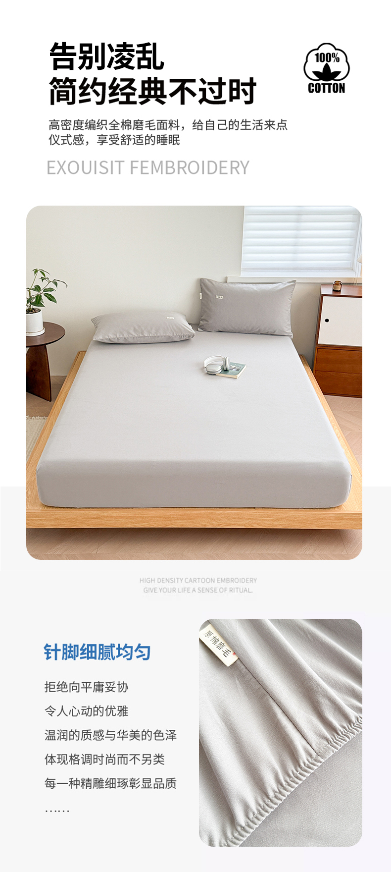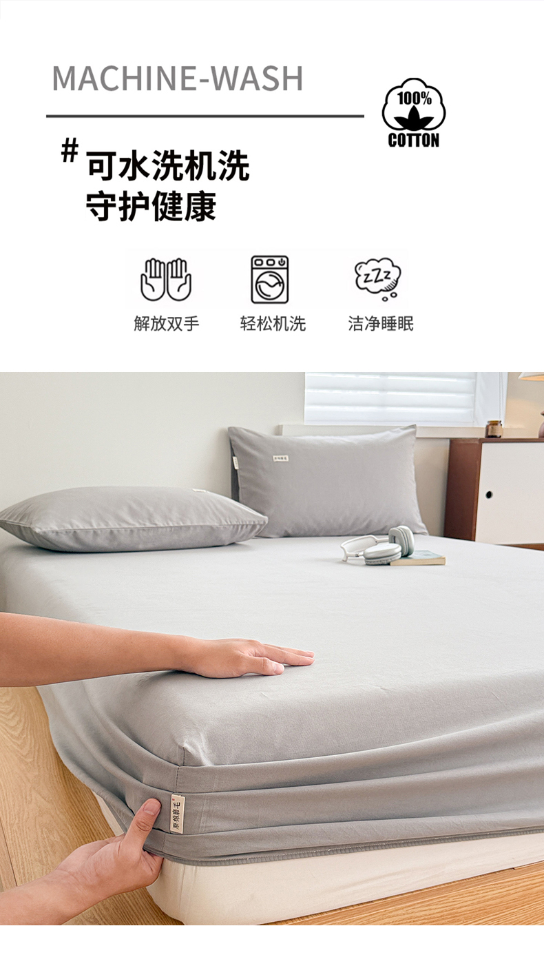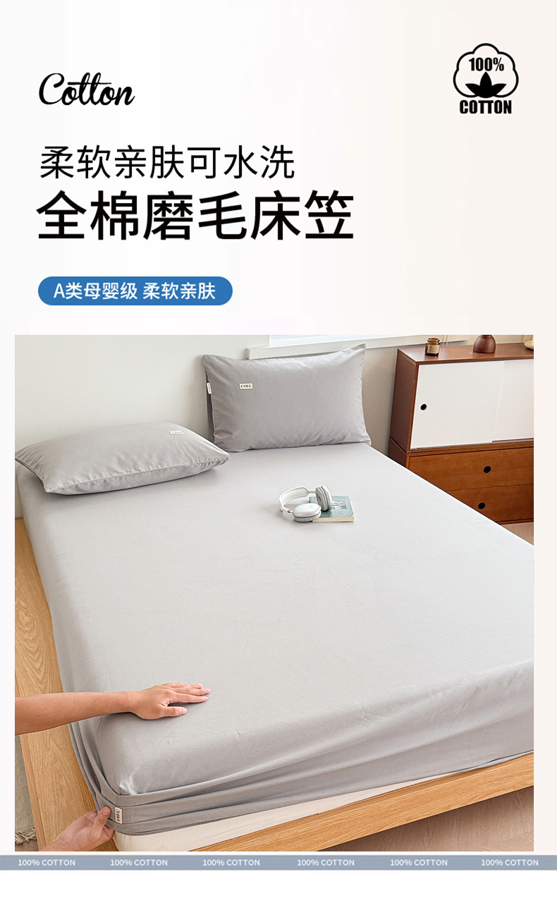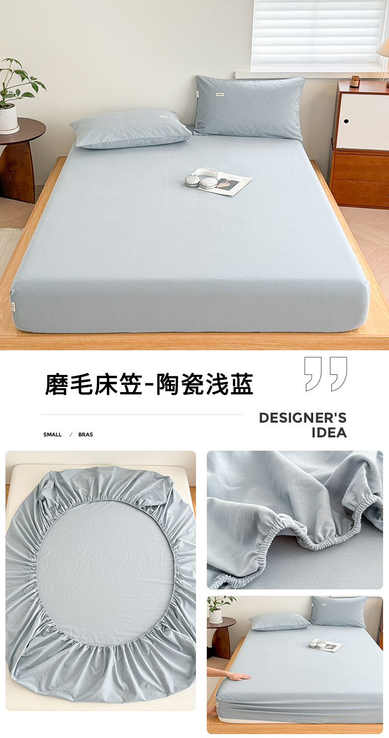 • 91家纺网 家纺一手货源 找家纺 眠博士 2025新款A类纯色全棉磨毛大床床笠三件套 磨毛床笠-陶瓷浅灰