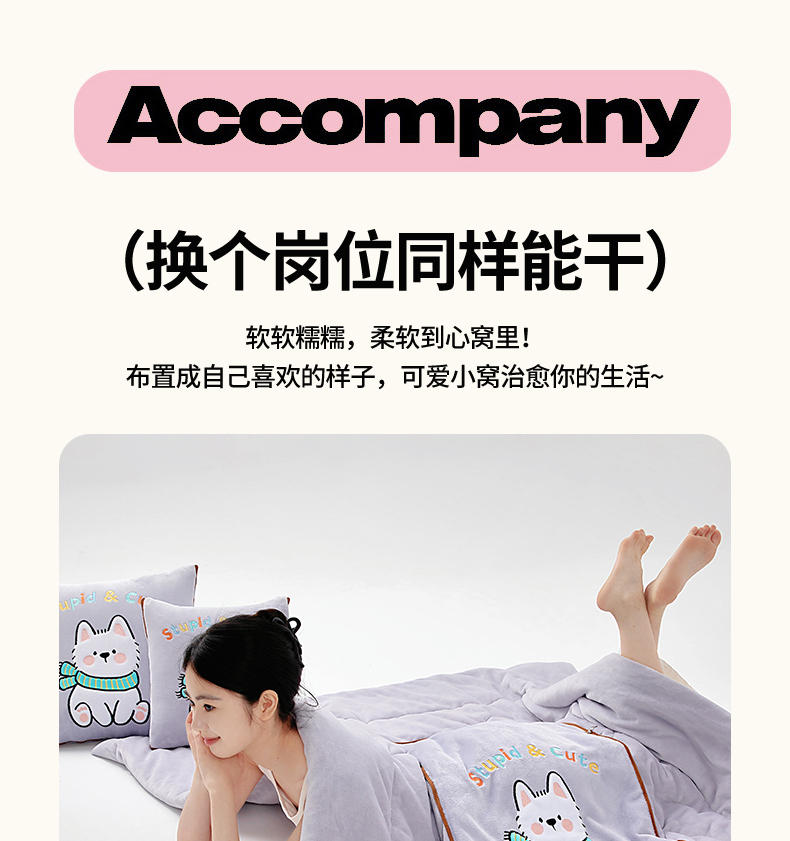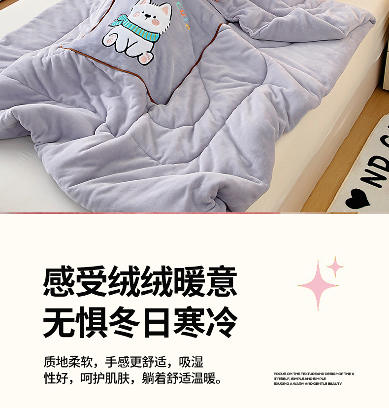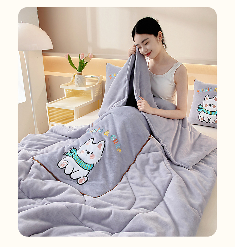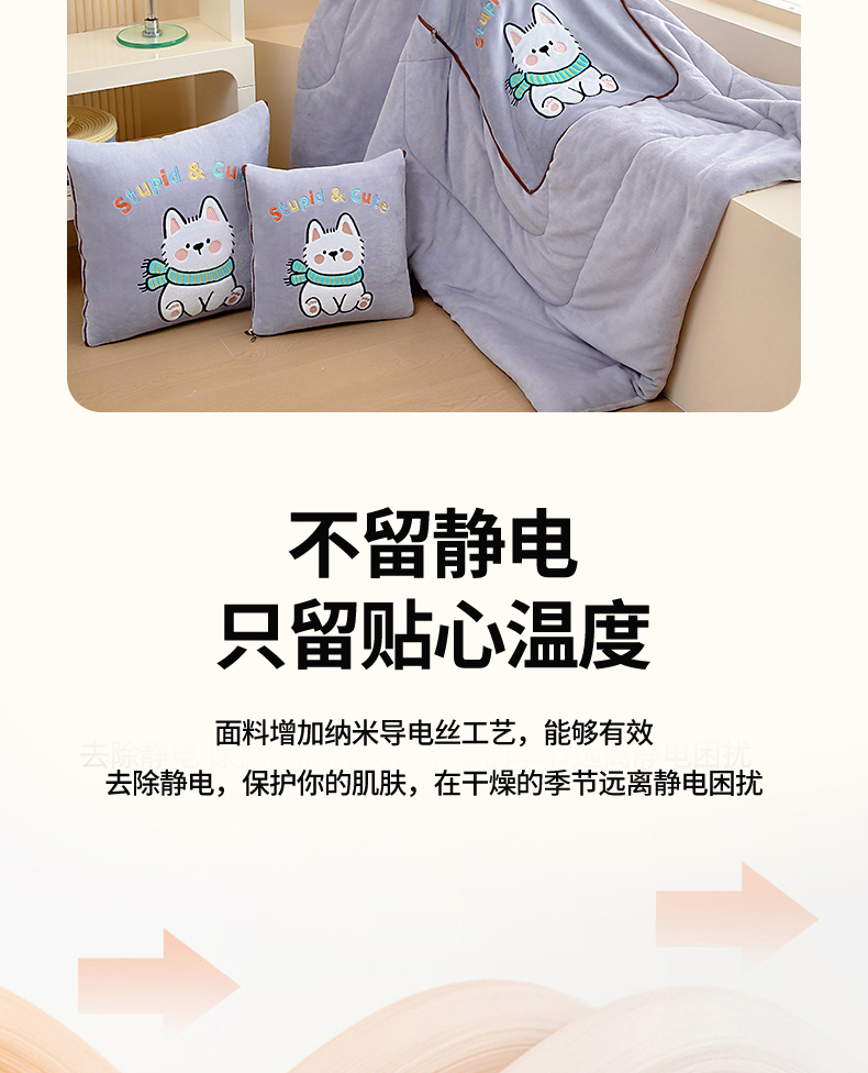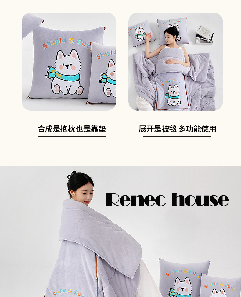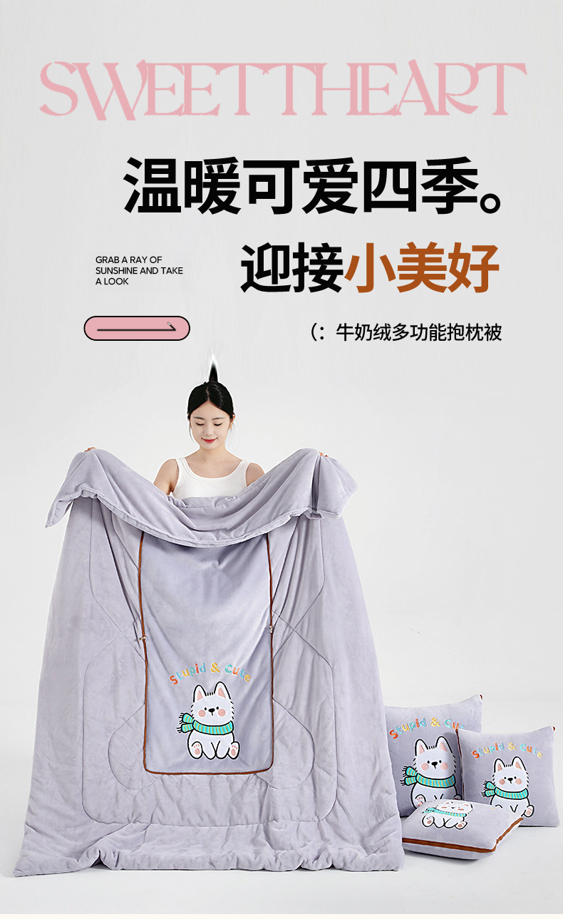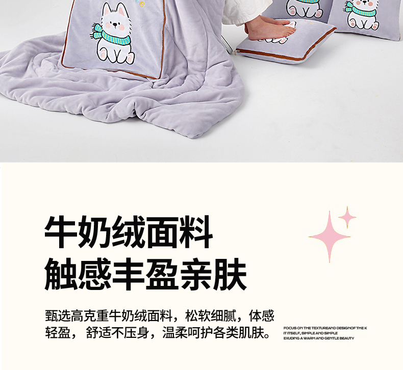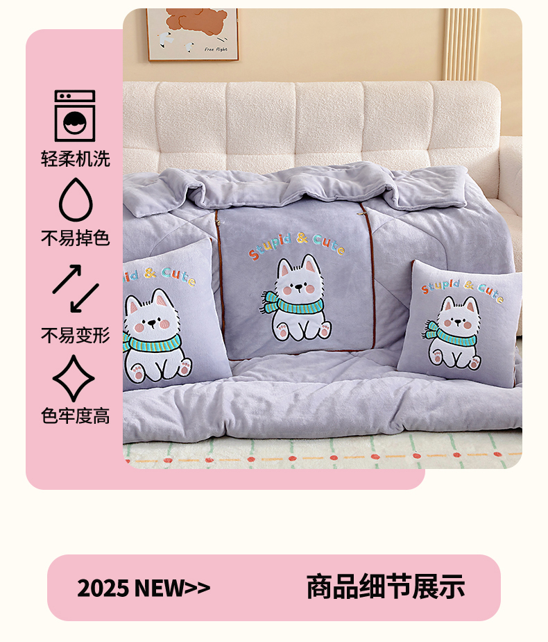 商品名称:阳光依佰抱枕被 2025秋冬新款牛奶绒多功能抱枕被系列-调皮狗 调皮狗---丁香紫