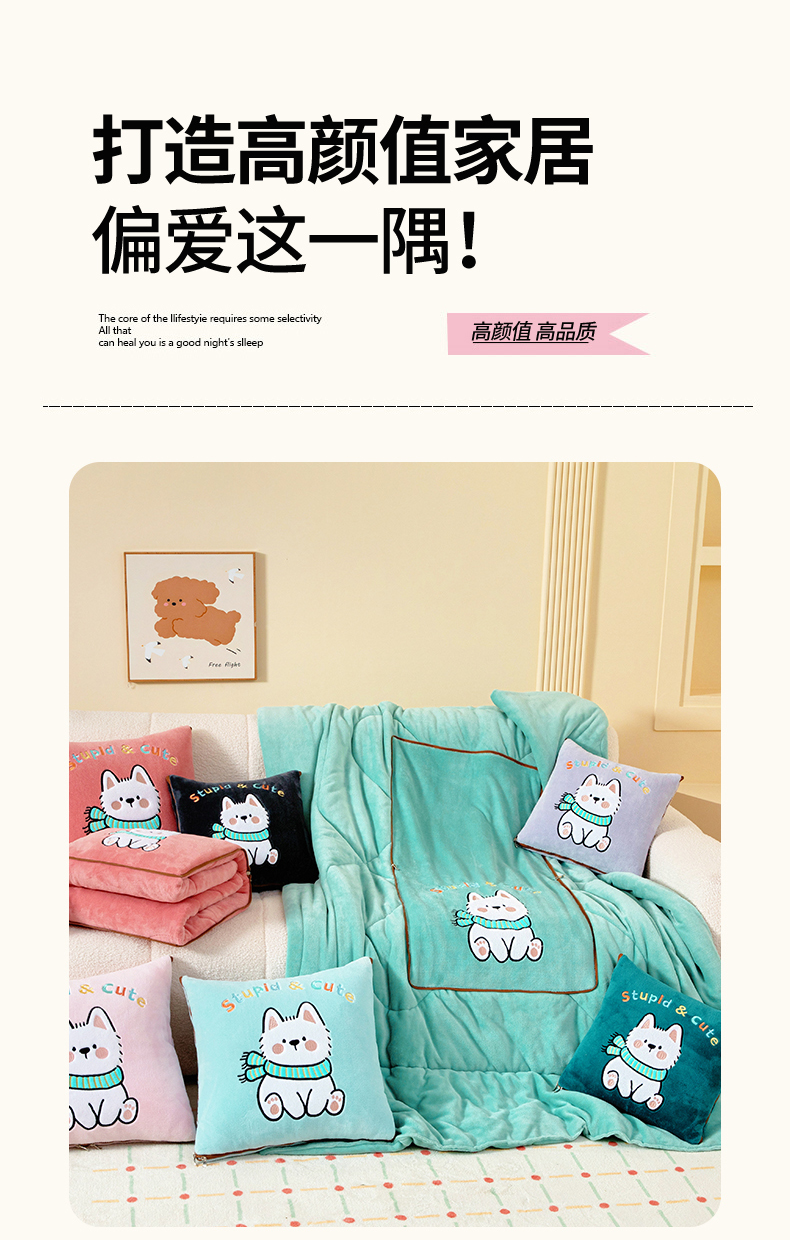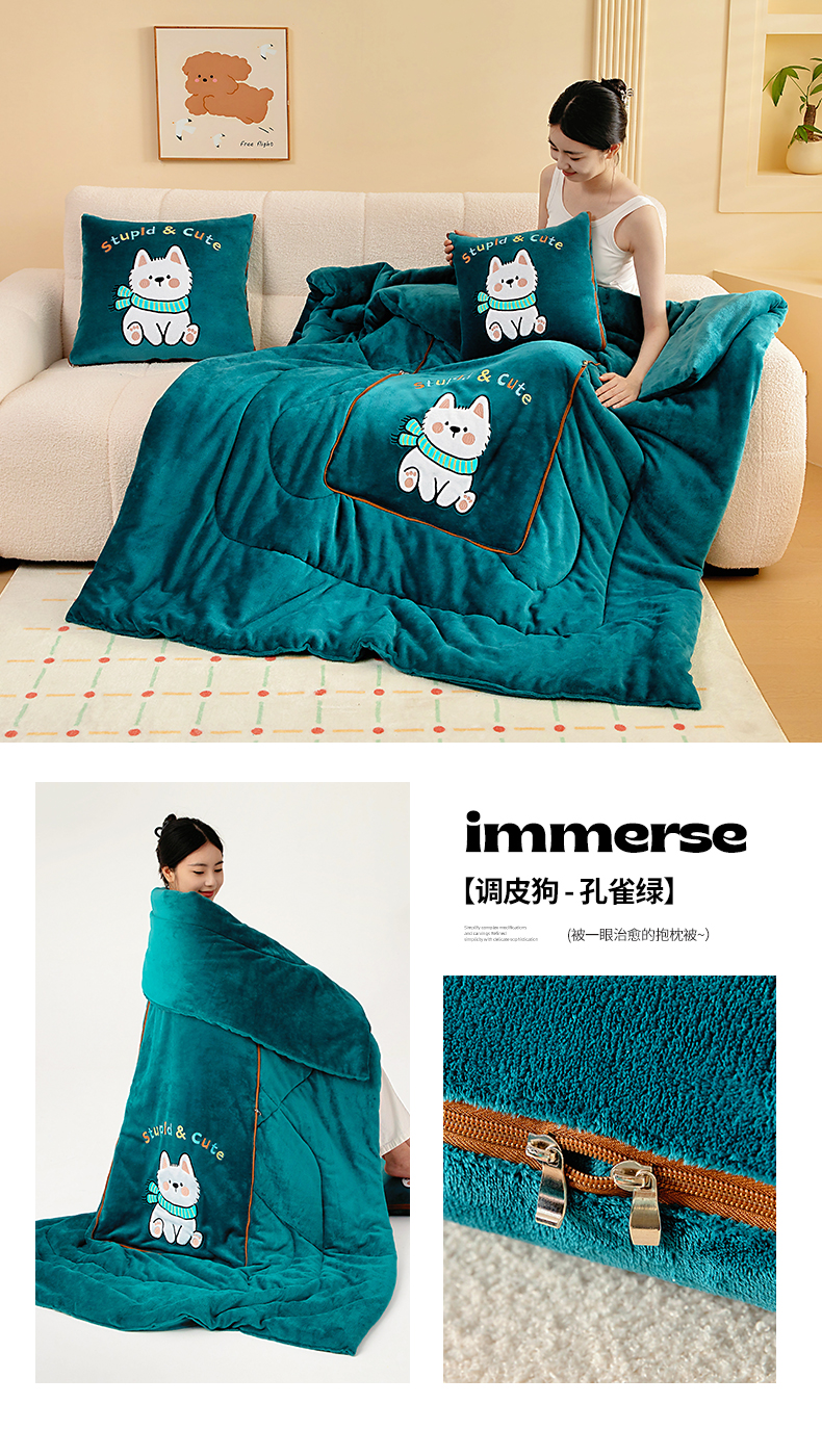 (总)阳光依佰抱枕被 2025秋冬新款牛奶绒多功能抱枕被系列-调皮狗,调皮狗---薄荷绿,调皮狗---浅蓝色,调皮狗---丁香紫,调皮狗---孔雀绿,调皮狗---神秘黑,调皮狗---西瓜红,调皮狗---樱花粉