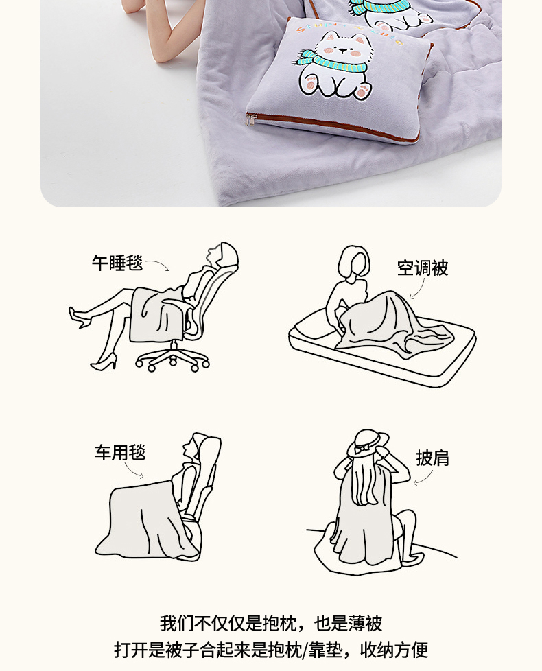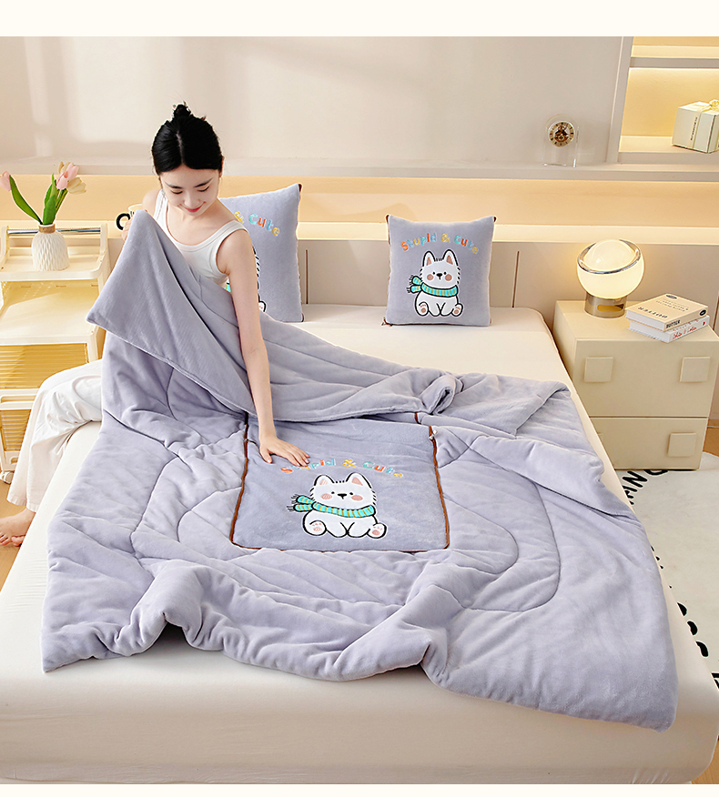 (总)阳光依佰 2023新款磨毛贴布绣四季款抱枕被-发财猫,发财猫-豆沙,发财猫-粉色,发财猫-明黄,发财猫-墨绿,发财猫-浅灰,发财猫-浅蓝,发财猫-星空蓝