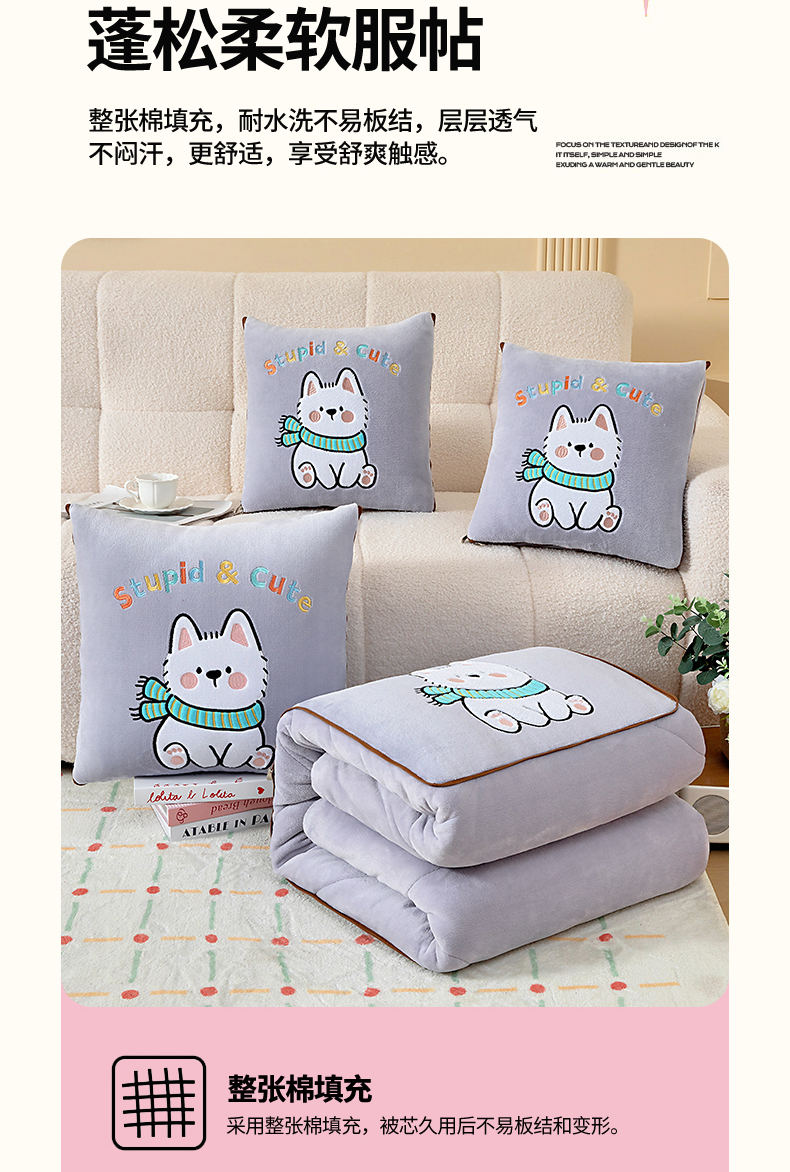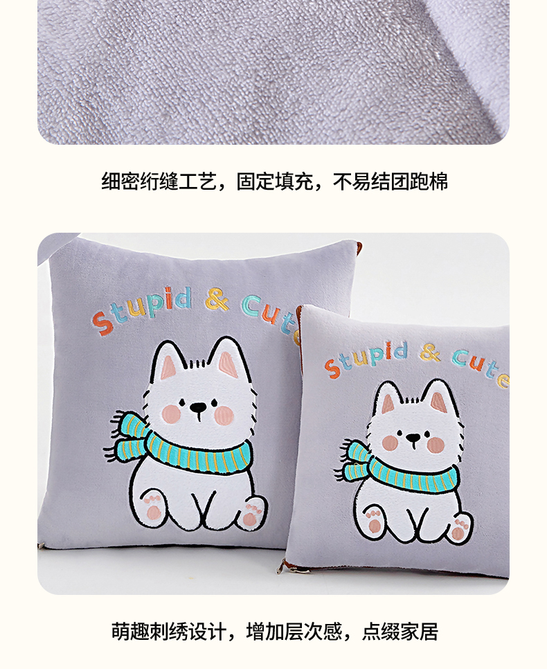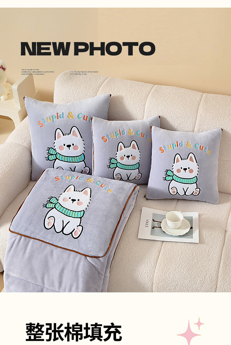(总)阳光依佰抱枕被 2024新款纯棉刺绣多功能抱枕被-哈哈狗,哈哈狗-爱玛橙,哈哈狗-冰川蓝,哈哈狗-豆沙粉,哈哈狗-高级灰,哈哈狗-经典驼,哈哈狗-樱花粉