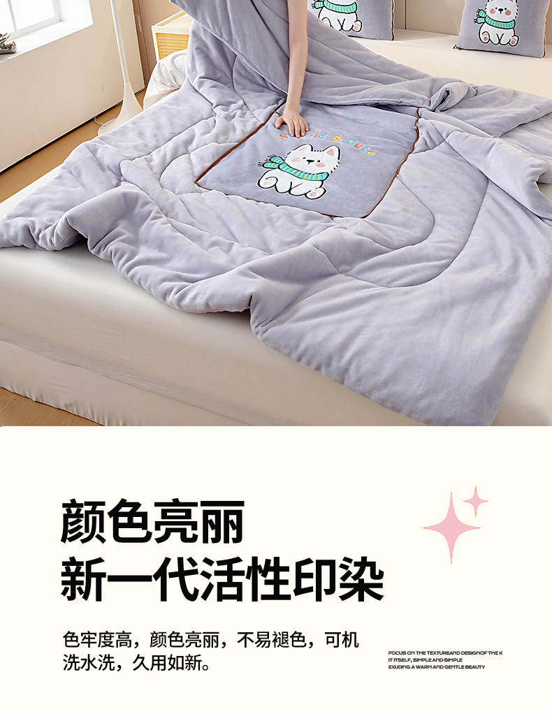 阳光依佰抱枕被 2025秋冬新款牛奶绒多功能抱枕被系列-调皮狗 调皮狗---丁香紫