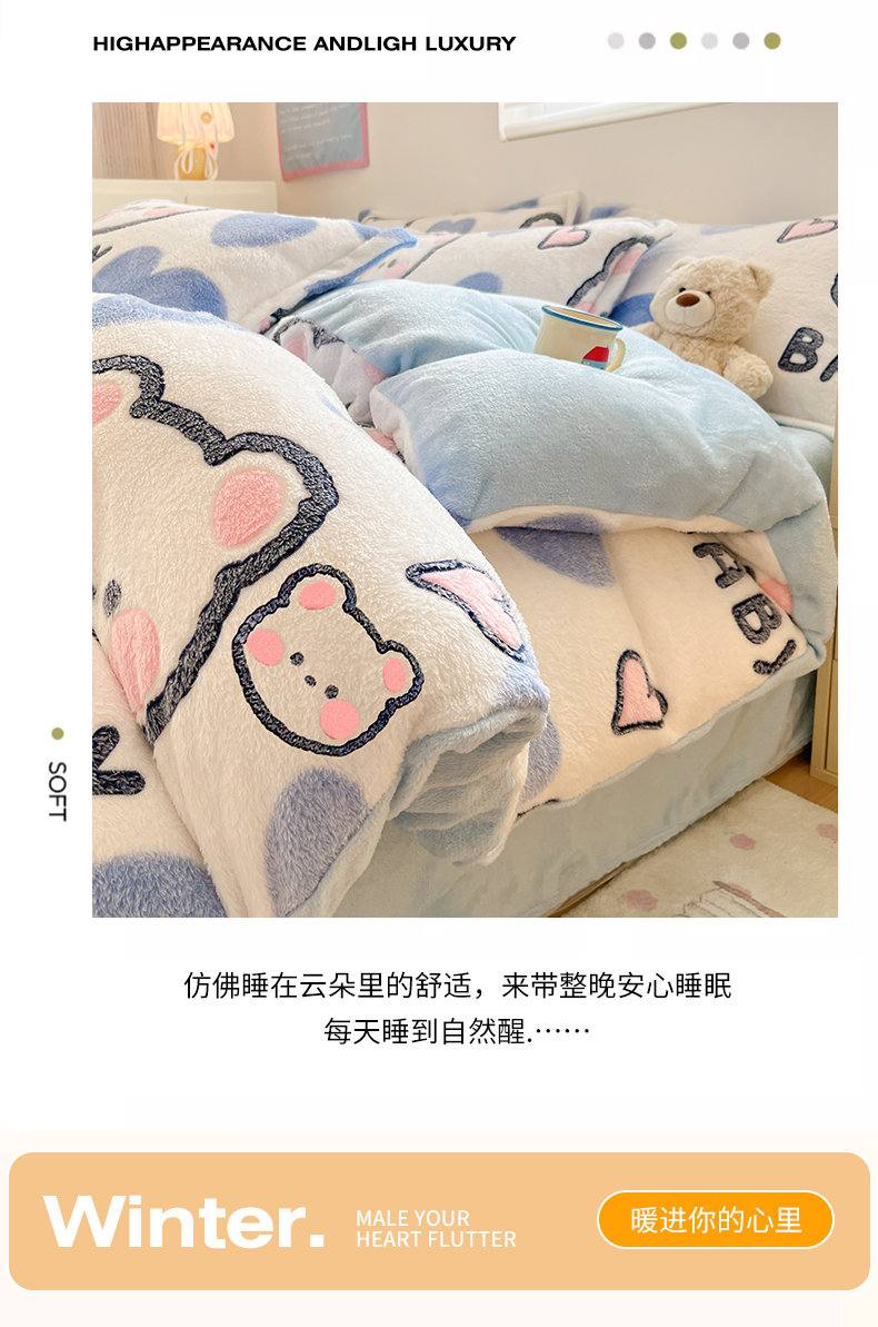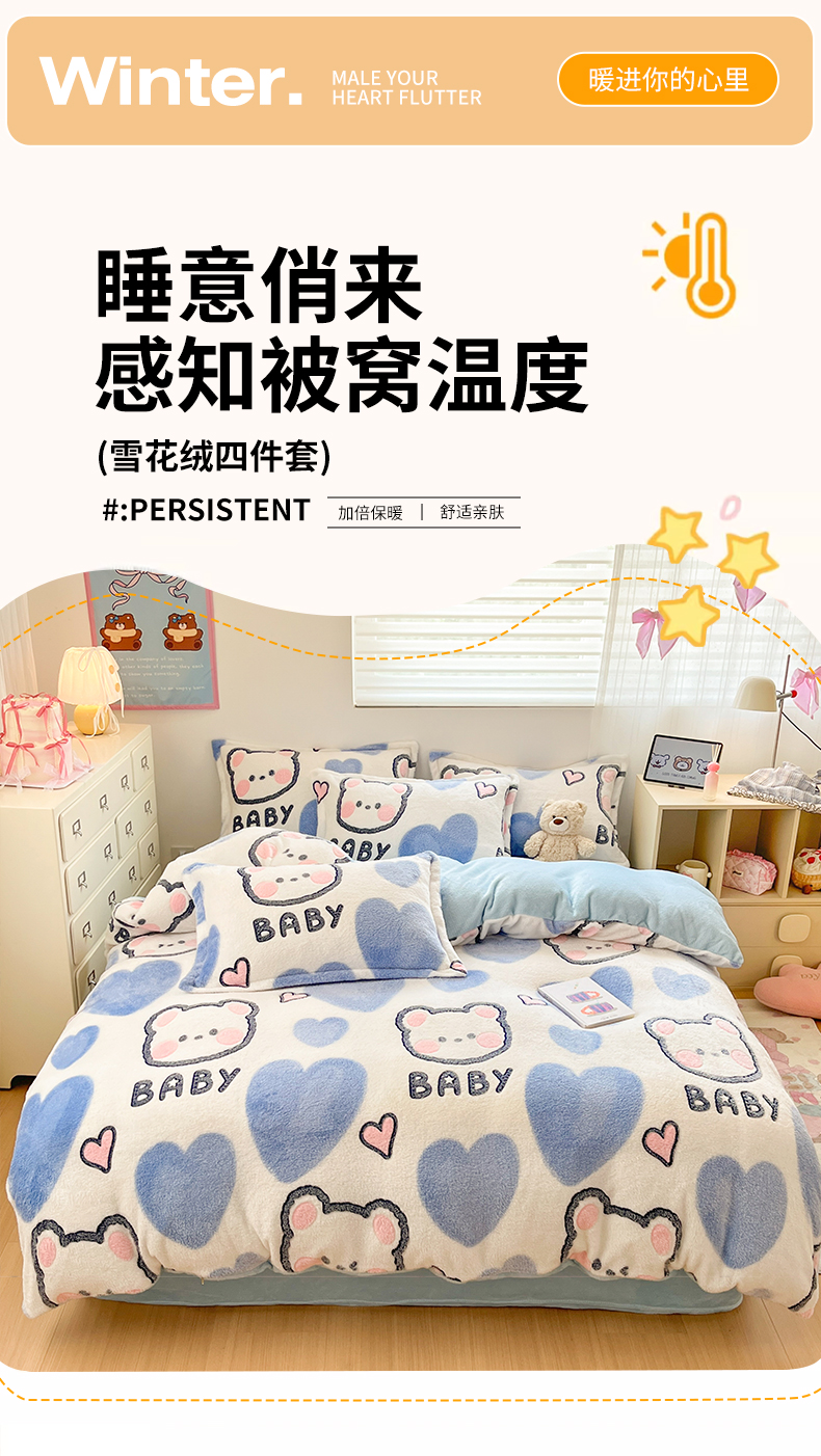 当前位置: 91家纺网 > 商品网购 > 床品套件 > 四件套 > 其它四件套 > 川悦生活 2025新款立体雪花绒印花大床四件套系列一场景一 可爱熊