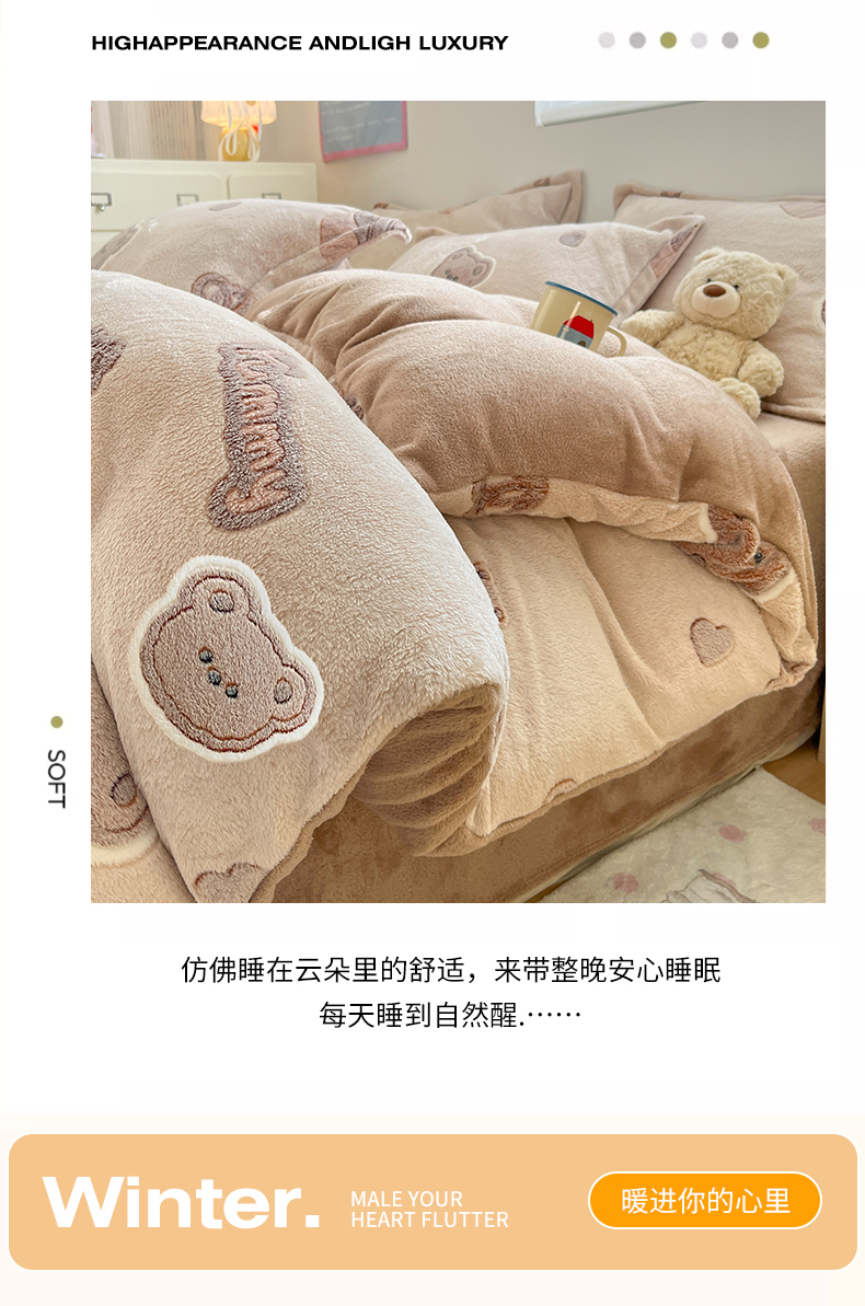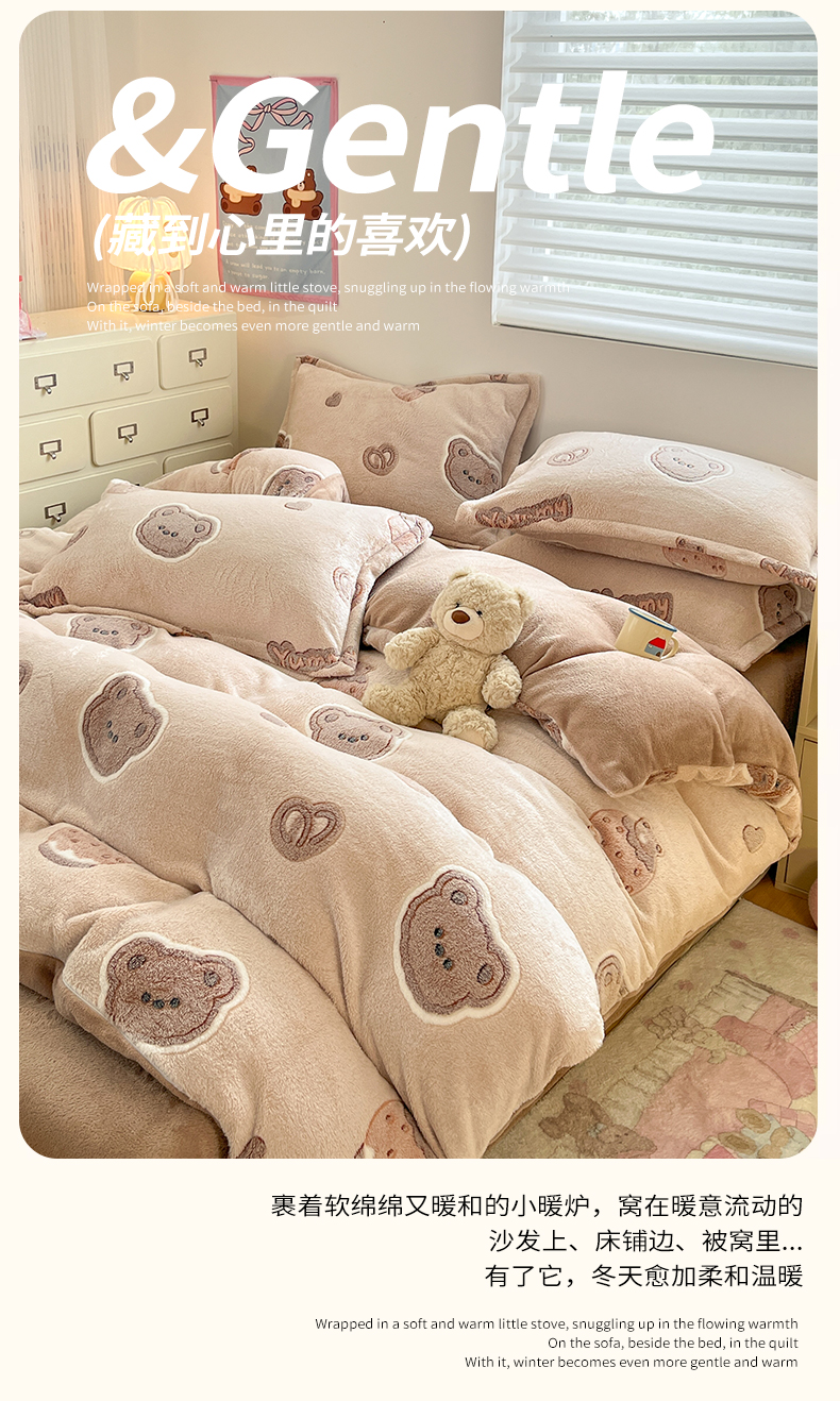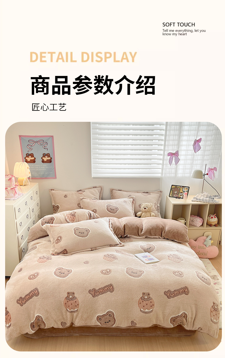 当前位置: 91家纺网 > 商品网购 > 床品套件 > 四件套 > 其它四件套 > 川悦生活 2025新款立体雪花绒印花大床四件套系列一场景一 巧克力熊