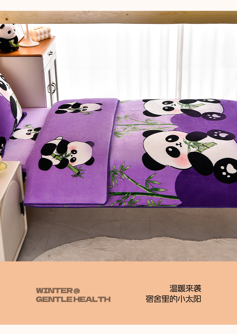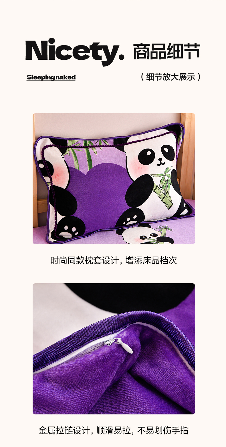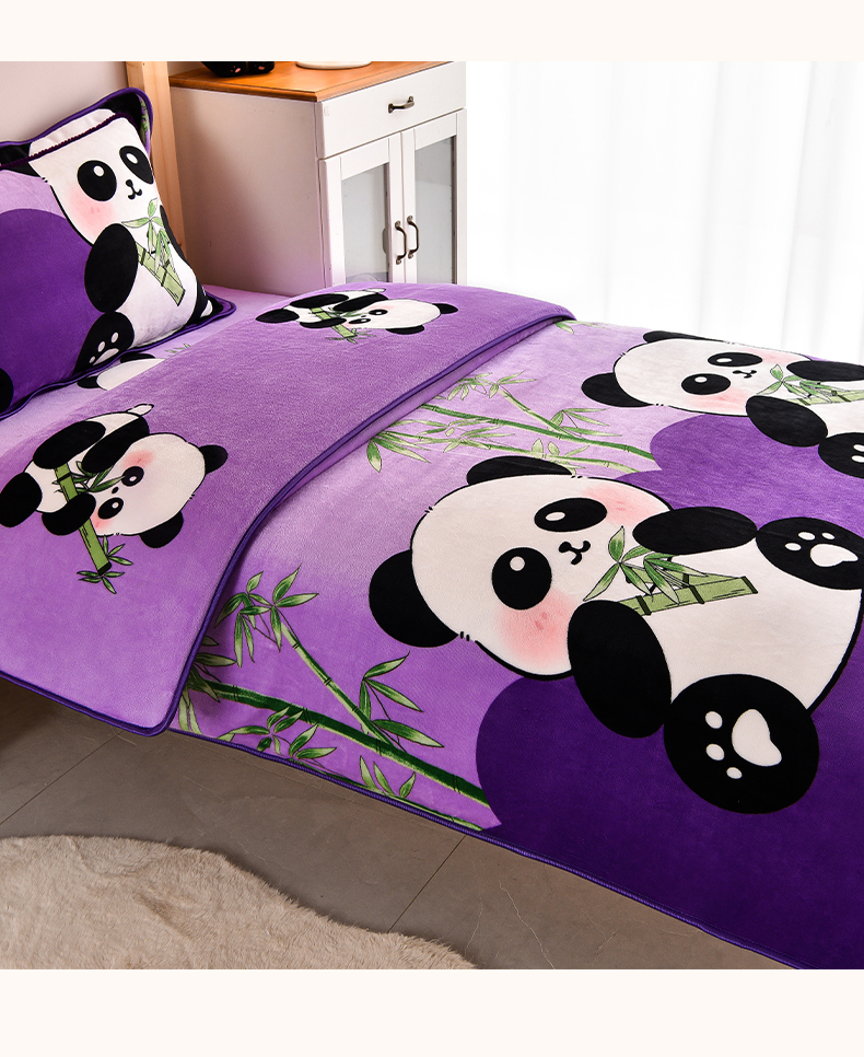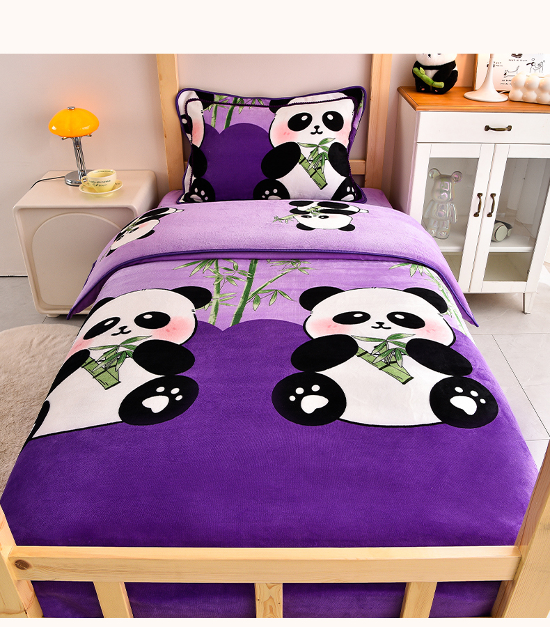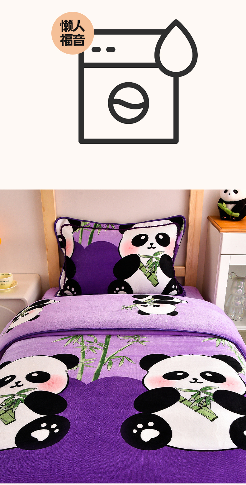 当前位置: 91家纺网 > 商品网购 > 床品套件 > 三件套 > 博兰蒂 2025新款床裙款高克重牛奶绒印花学生三件套 熊猫-紫