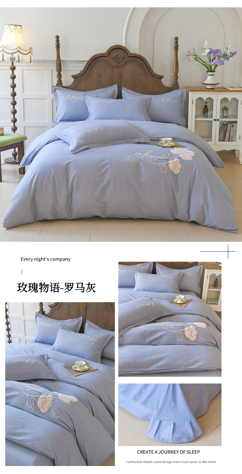 当前位置: 91家纺网 > 商品网购 > 床品套件 > 四件套 > 普通磨毛四件套 > U品汇 2025新品长绒棉加厚全棉纯棉磨毛立体刺绣花四件套生态磨毛加绒(玫瑰物语) 玫瑰物语-浅灰绿