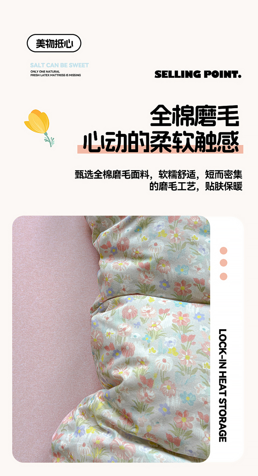 当前位置: 91家纺网 > 商品网购 > 床品套件 > 四件套 > 普通磨毛四件套 > U品汇 【A类母婴级】加厚全棉纯棉磨毛数码印花四件套生态磨毛100%棉(不是全棉不要钱) 初暖