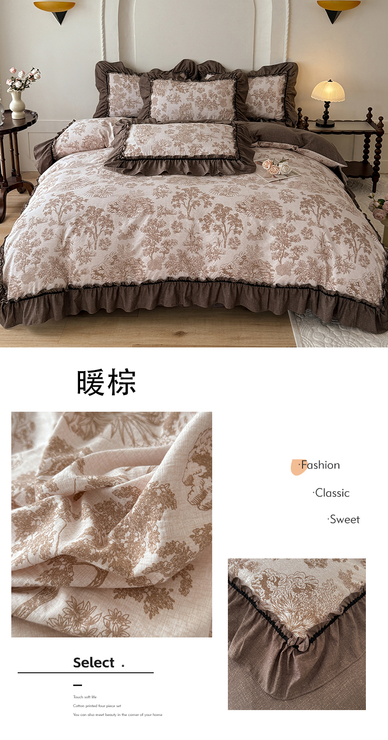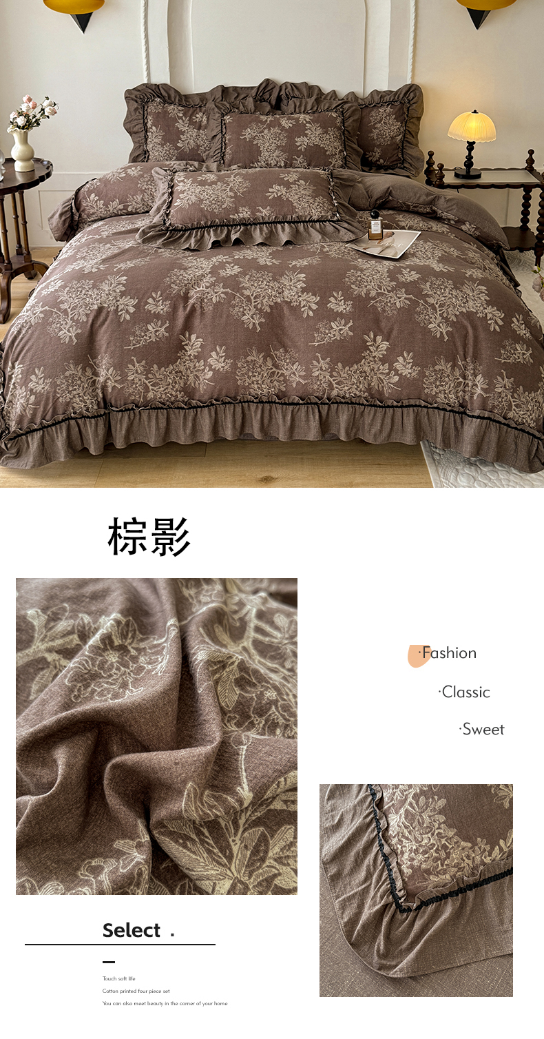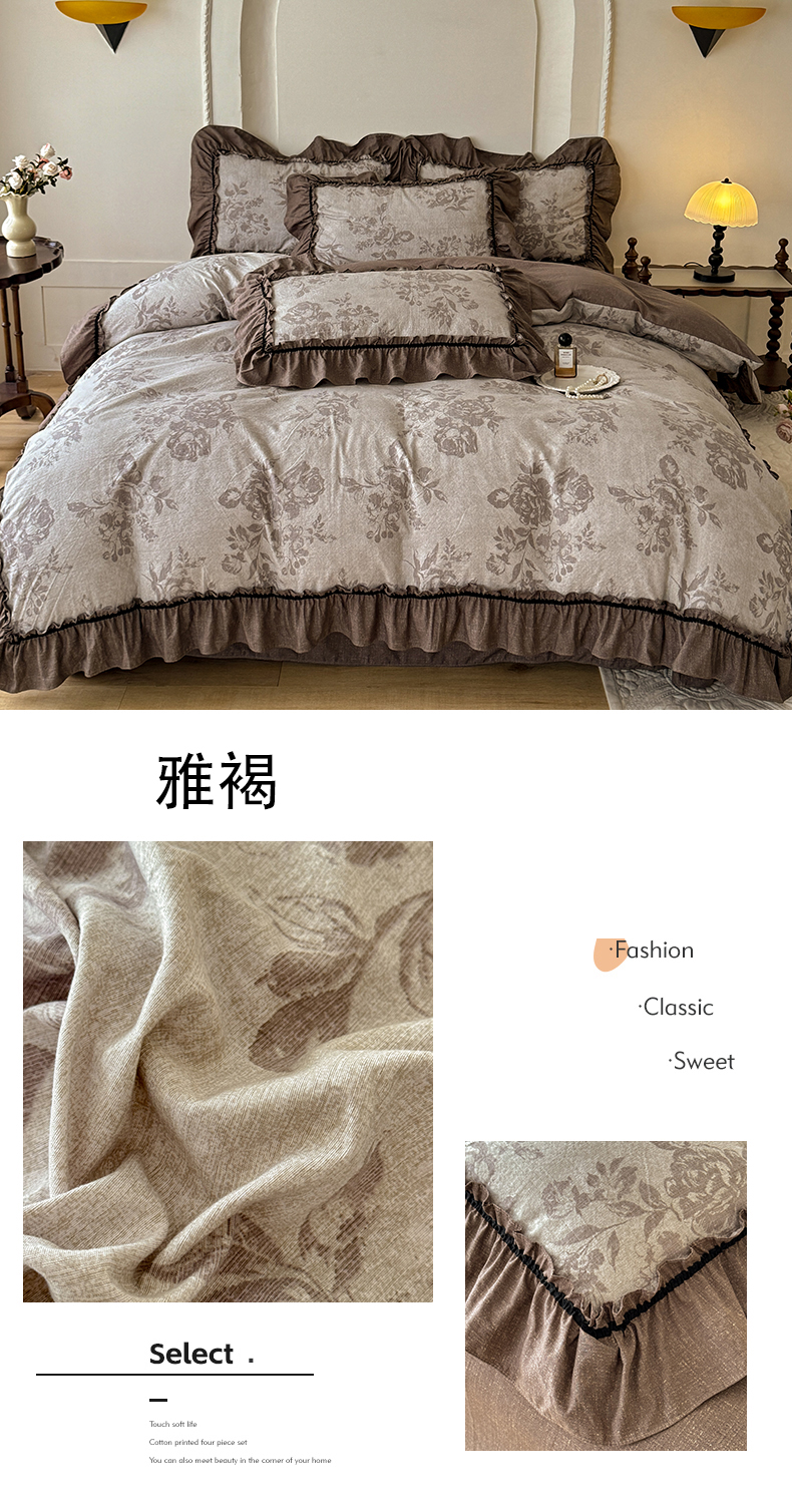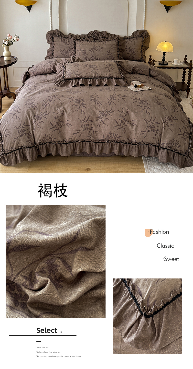 (总)优贝家纺 2025秋冬新款复古风高端提花水洗亚麻原麻棉麻四件套,褐枝,花眠,花瀑,花影,暖棕,雾灰,雅褐,紫菀,棕影