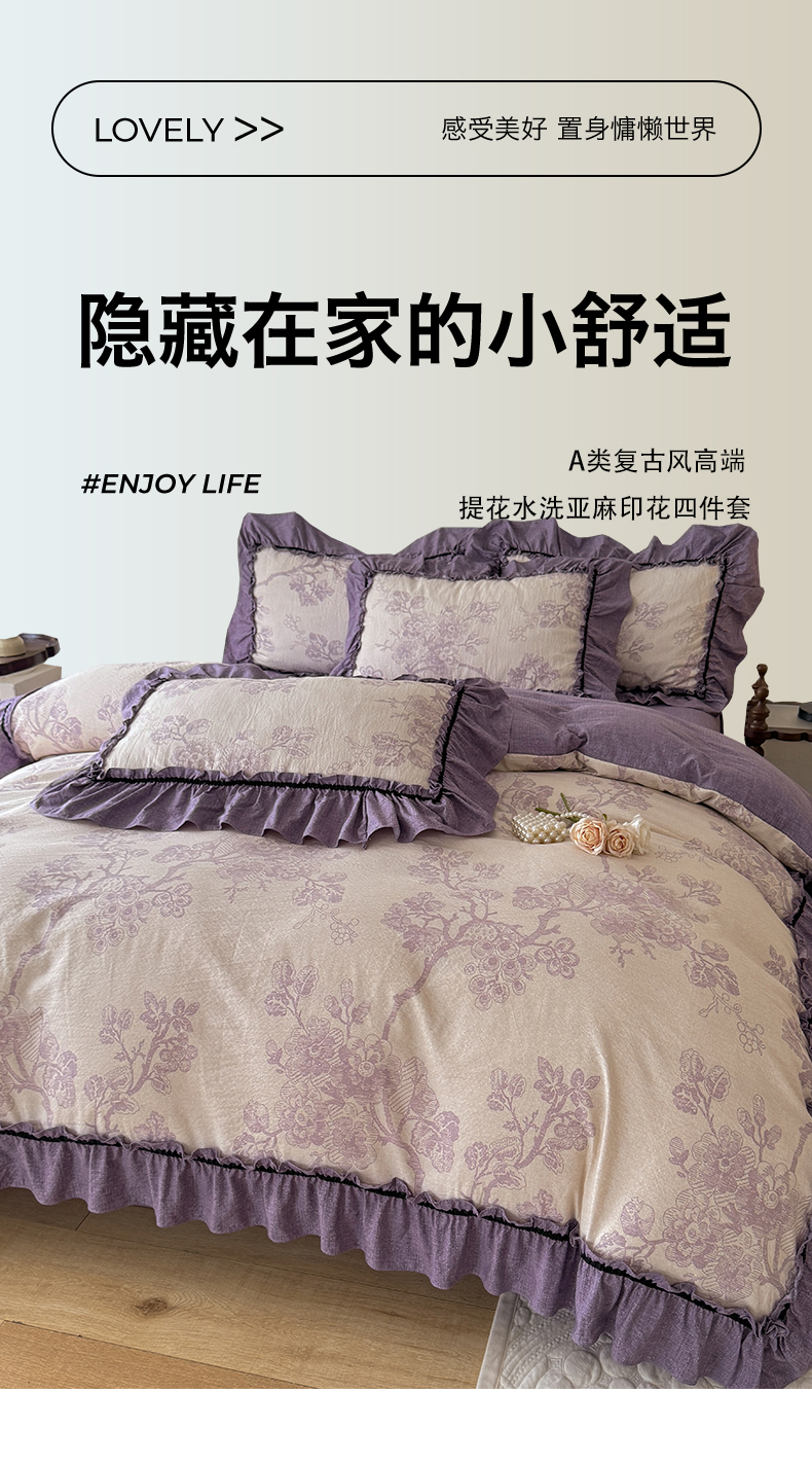 (总)优贝家纺 2025秋冬新款复古风高端提花水洗亚麻原麻棉麻四件套