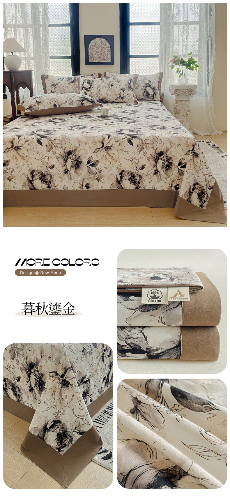 (总)慕梵家居2025新款A类100%全棉磨毛包边床单纯棉宽边单床单,繁花藤叙,红色玫瑰,暮秋鎏金,石榴花红,石榴花灰,硕果累累,甜梦茶语