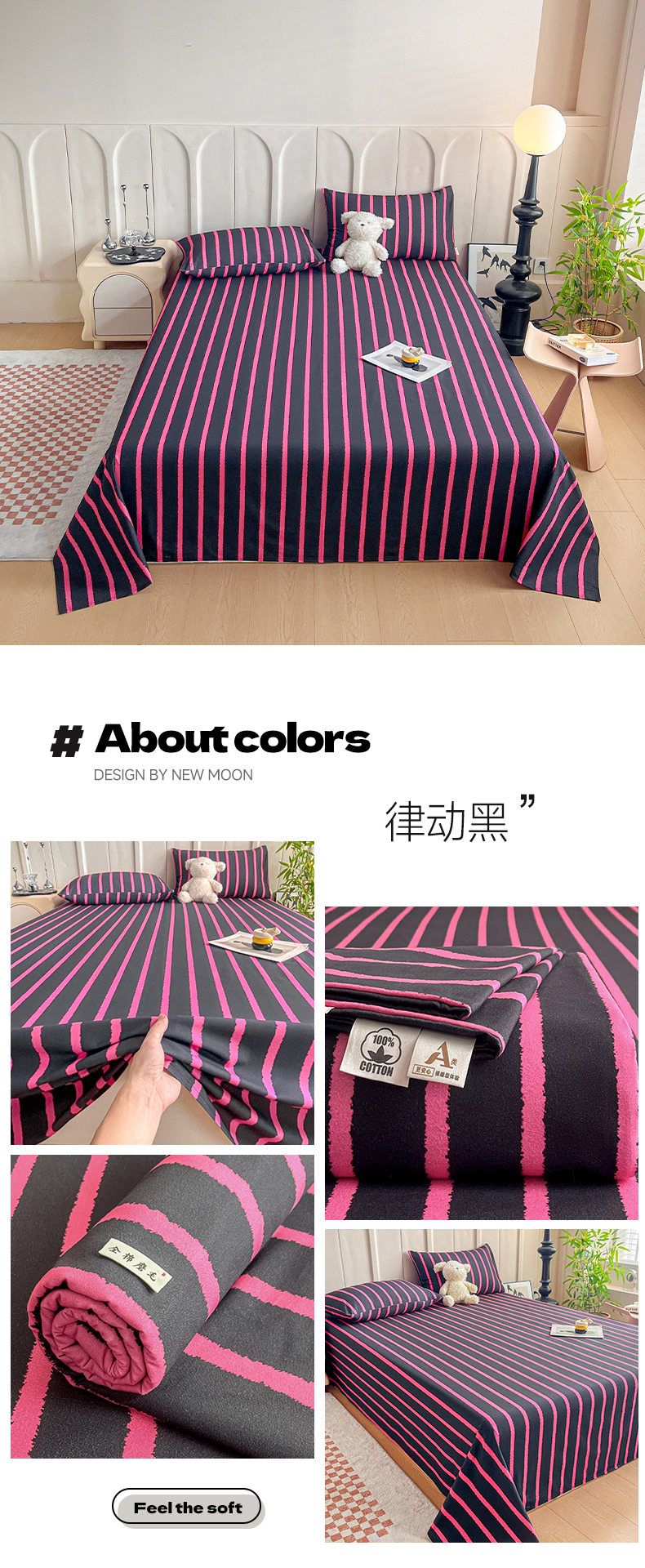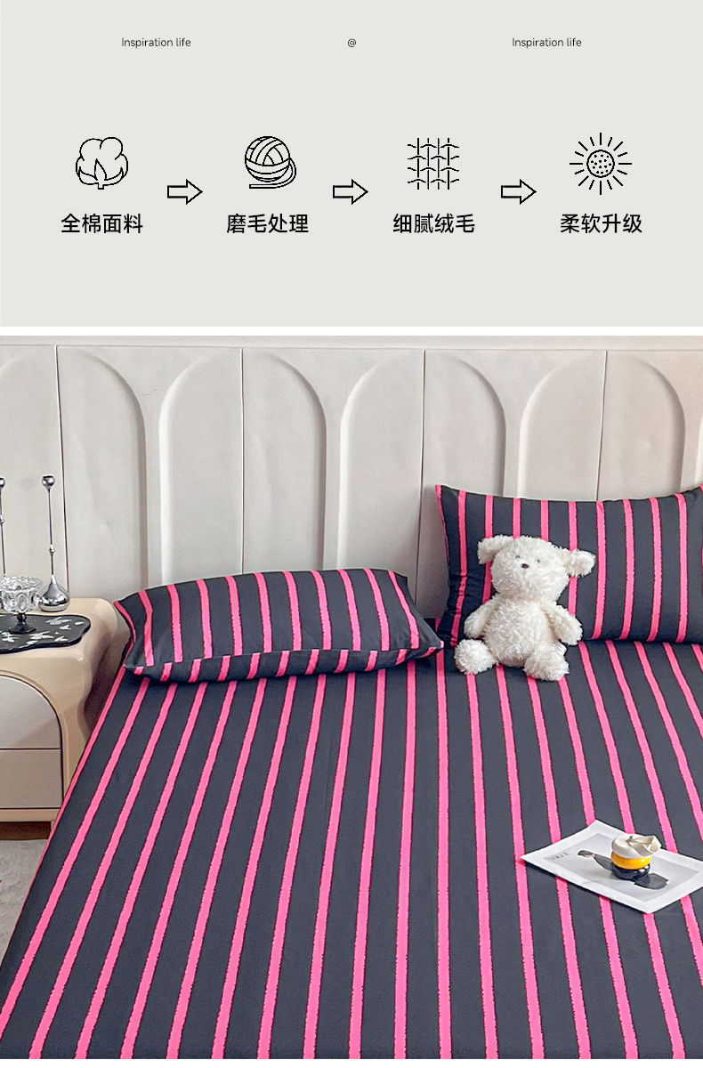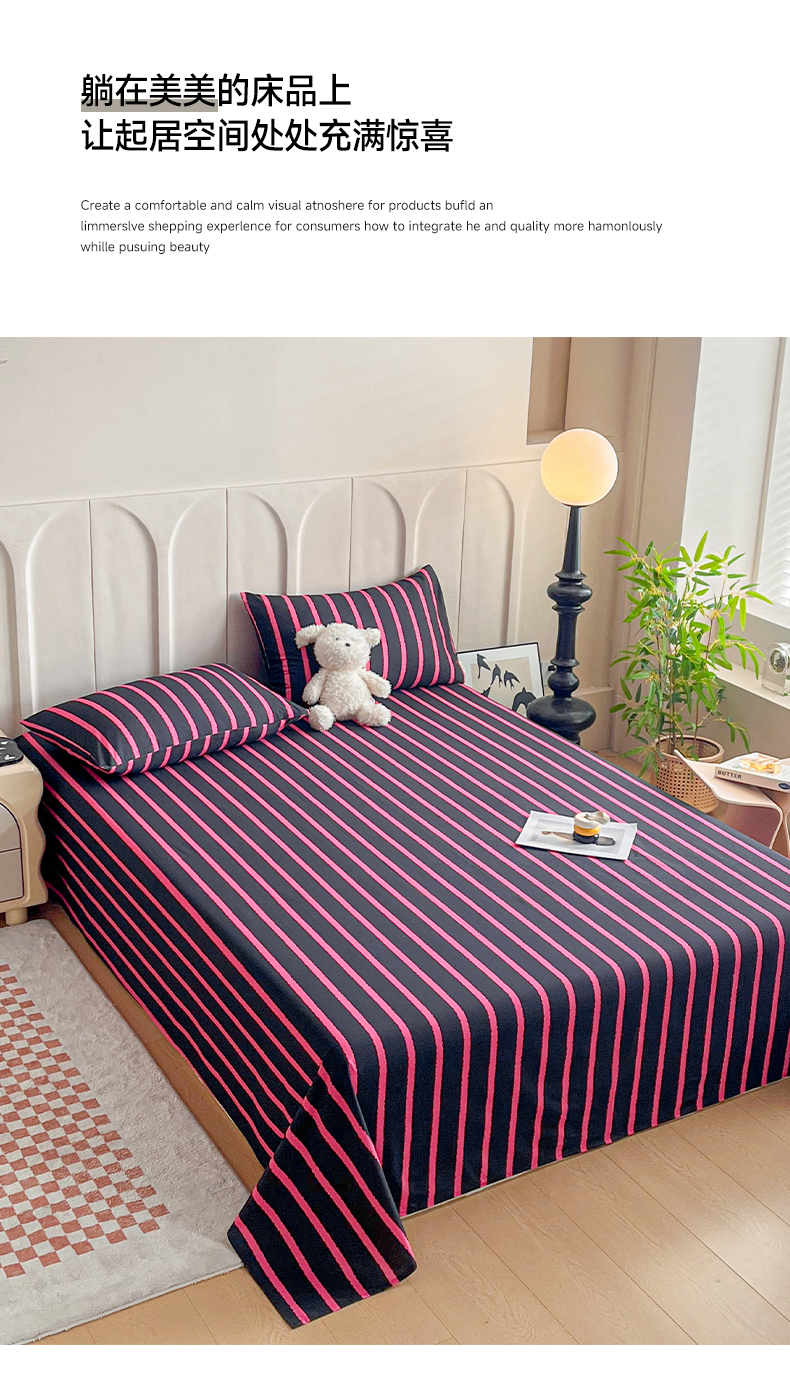 商品名称:慕梵家居2025新款100%全棉磨毛单床单 律动黑