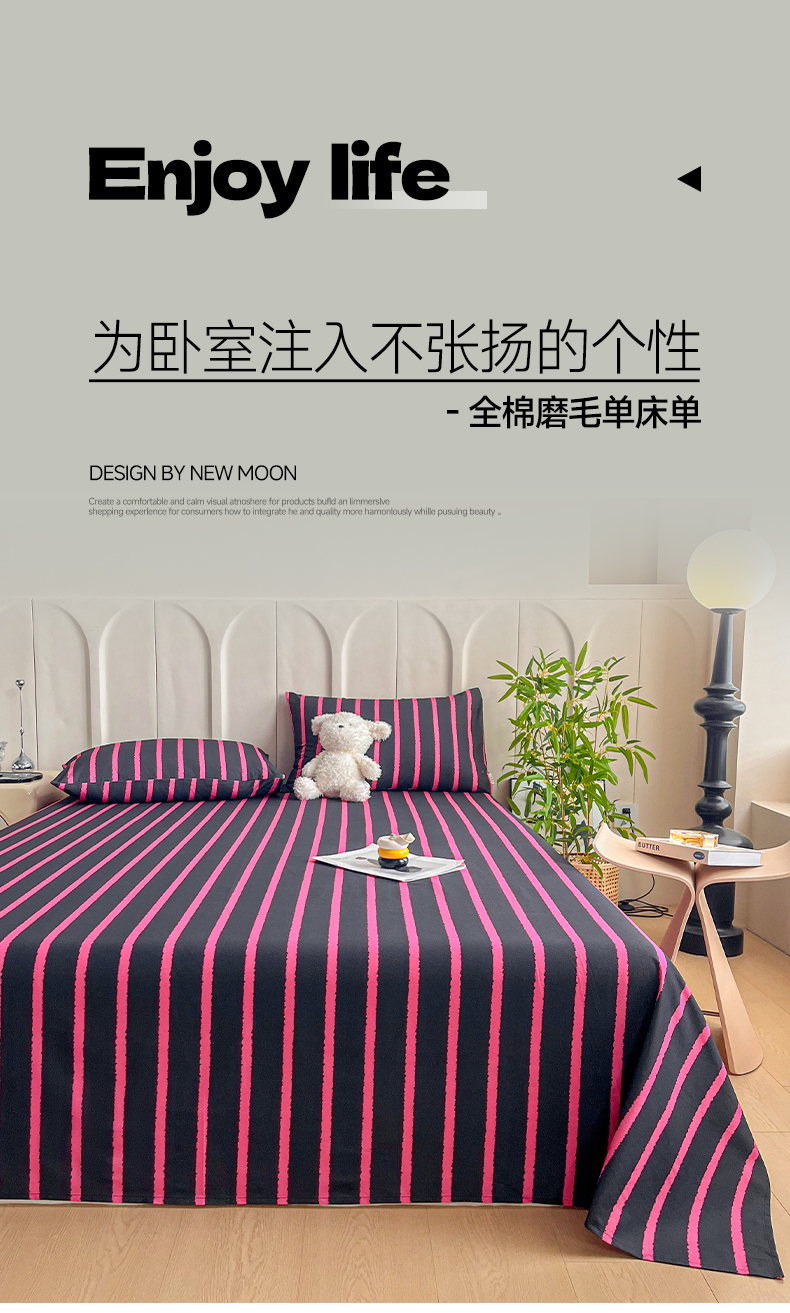 慕梵家居2025新款100%全棉磨毛单床单 律动黑