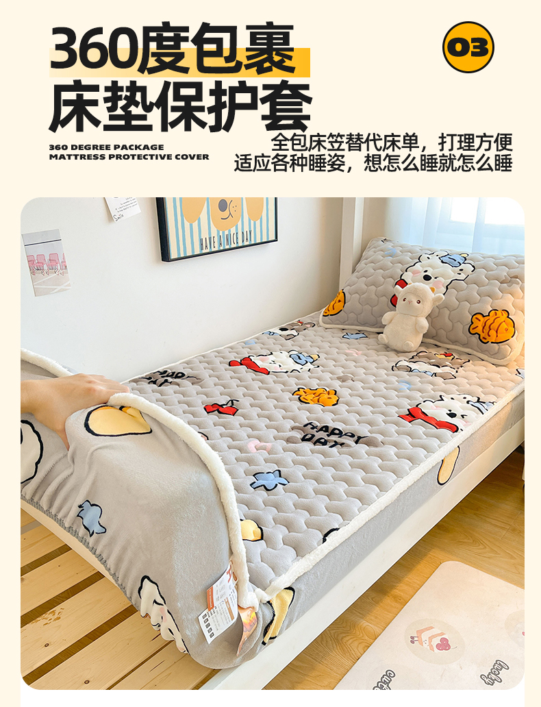 (总)雯豆家纺 2025新款学生上下铺加厚牛奶绒夹棉床笠宿舍大学生床垫保护套