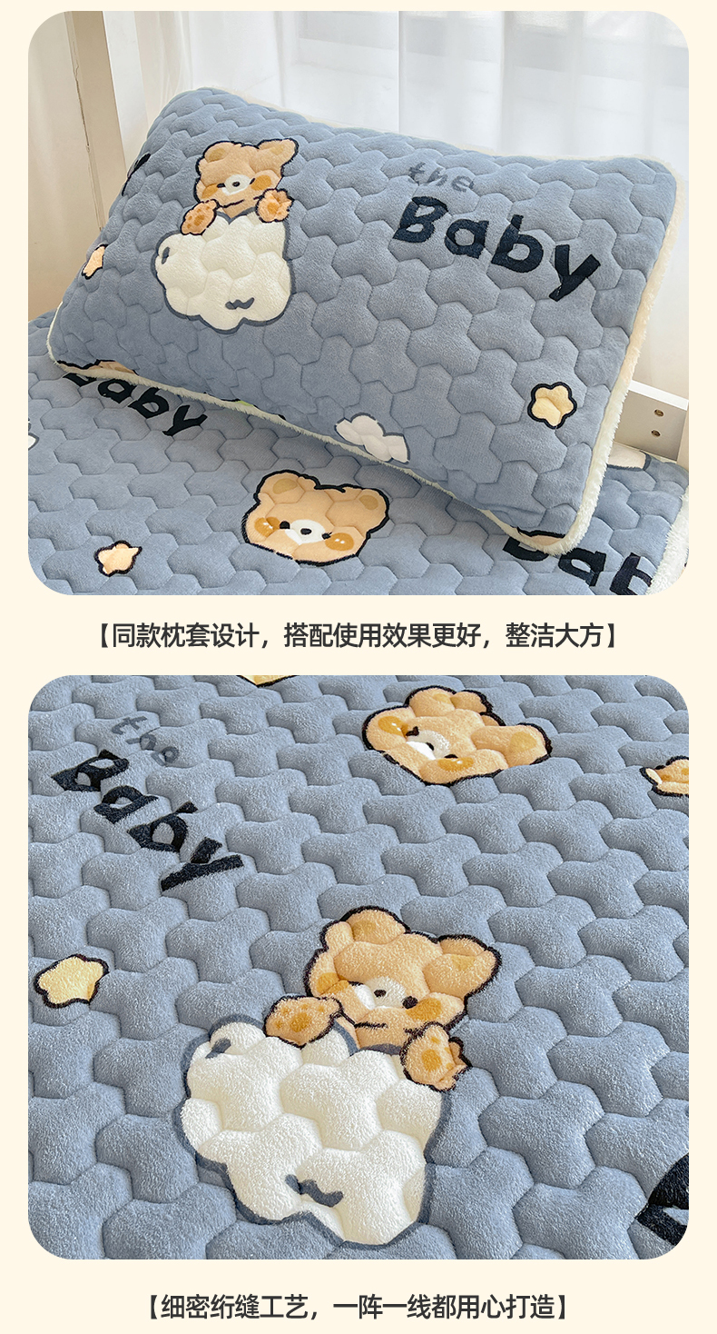 • 91家纺网 家纺一手货源 找家纺 雯豆家纺 2025新款学生上下铺加厚牛奶绒夹棉床笠宿舍大学生床垫保护套 牛奶绒床笠-趴趴熊