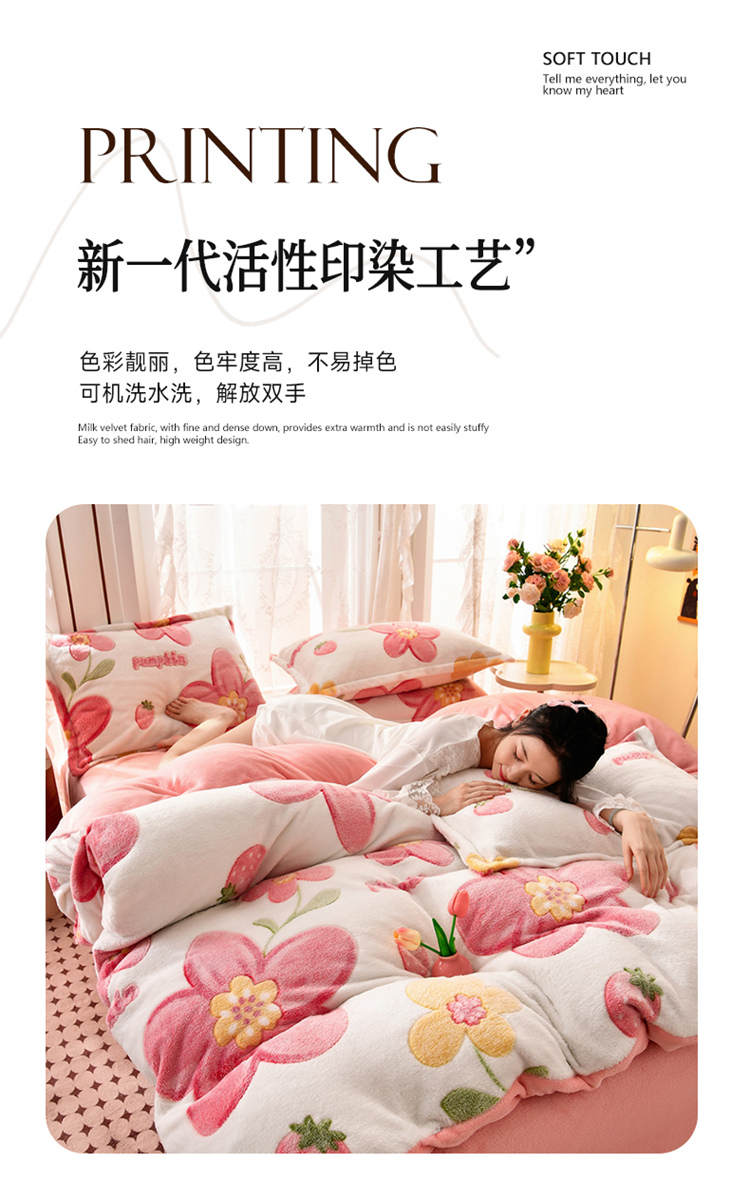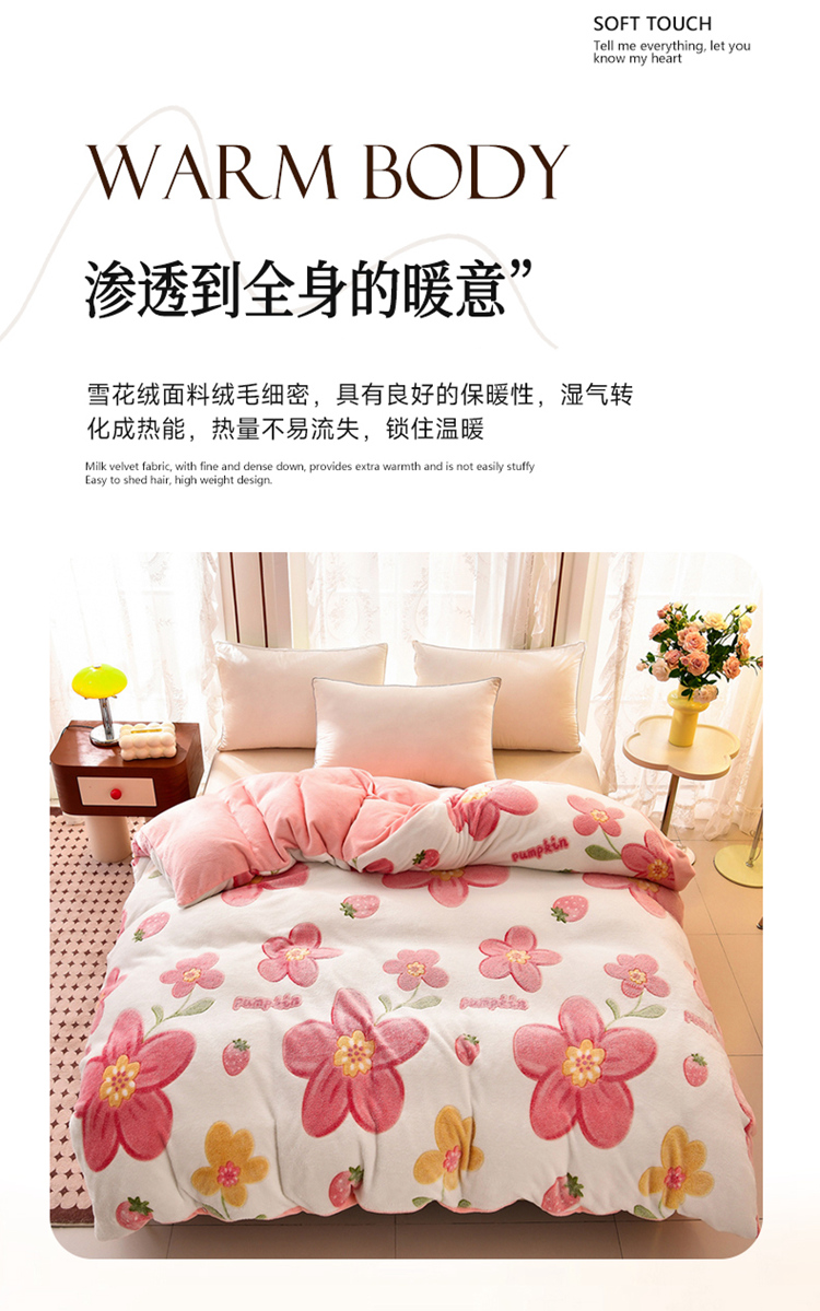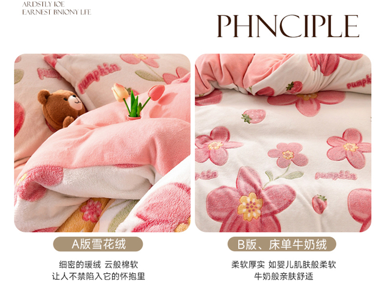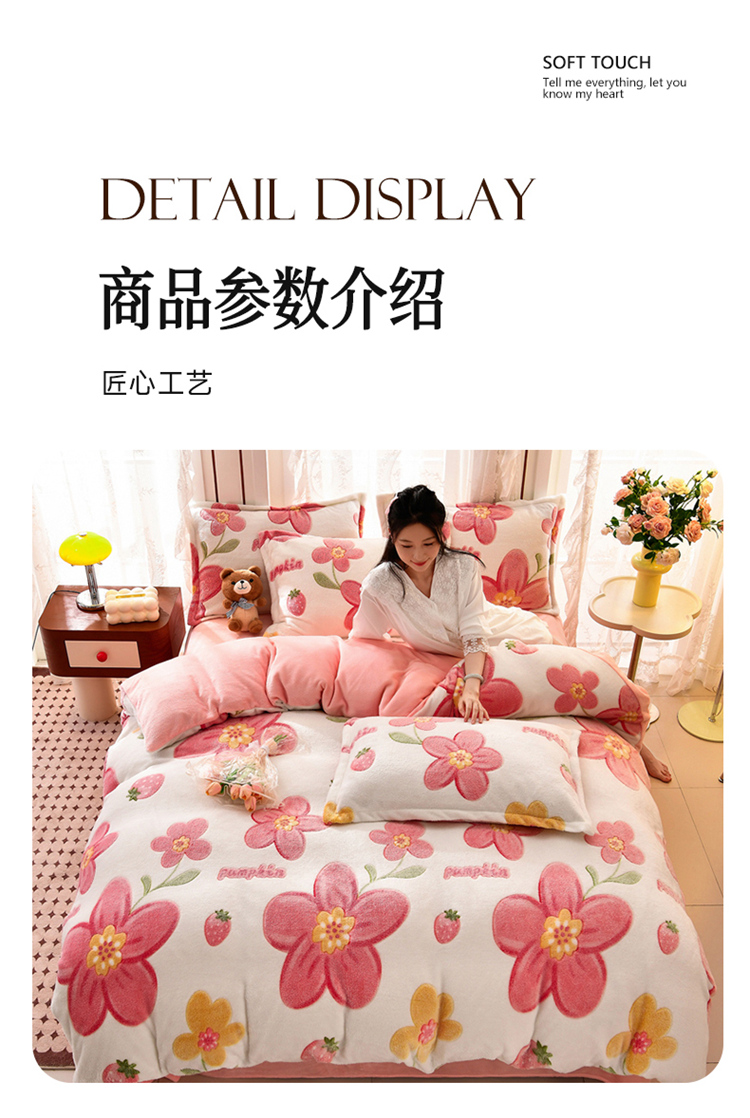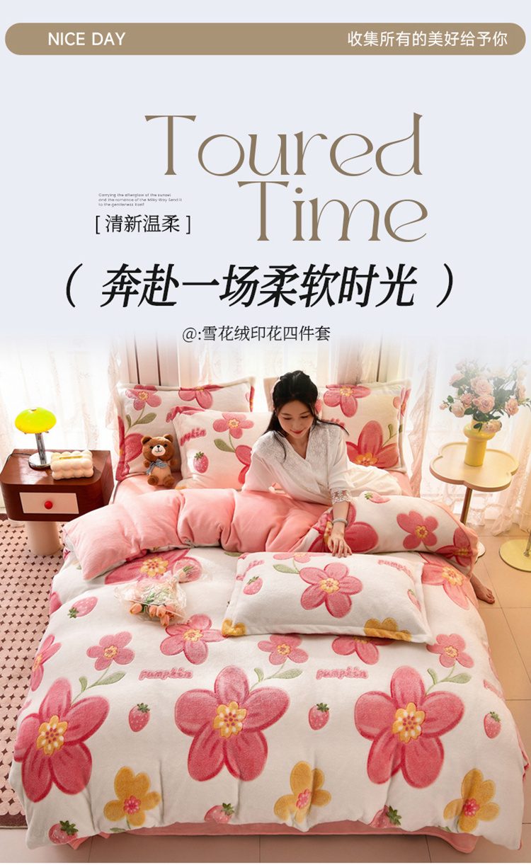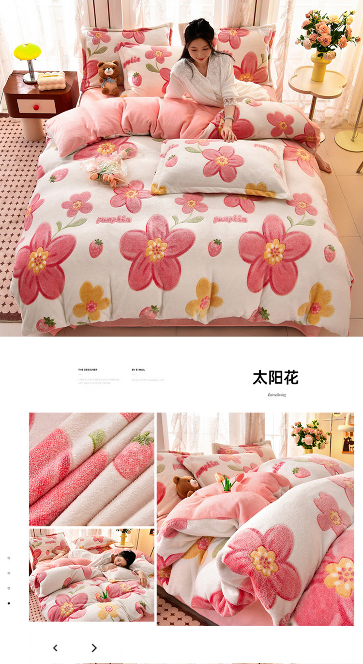 当前位置: 91家纺网 > 商品网购 > 床品套件 > 四件套 > 其它四件套 > 牵梦萦 2025新款雪花绒小清新印花四件套 太阳花
