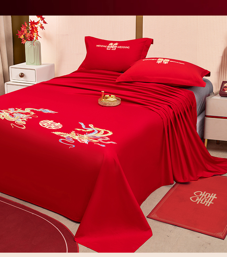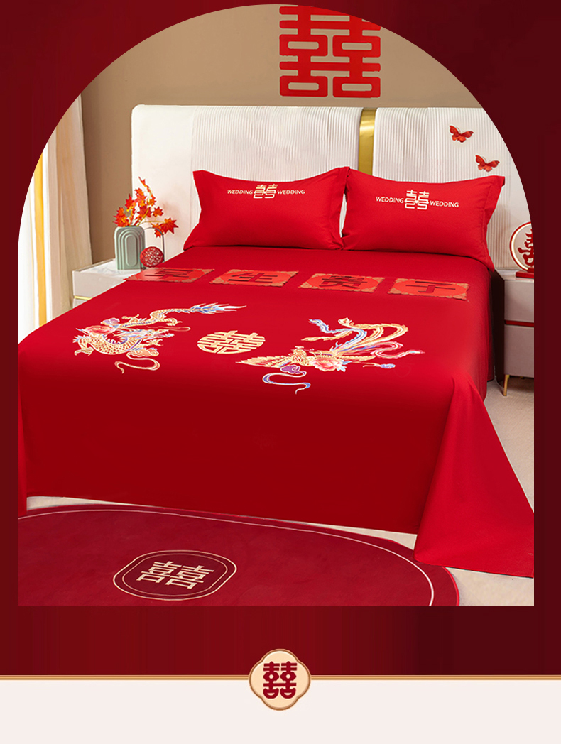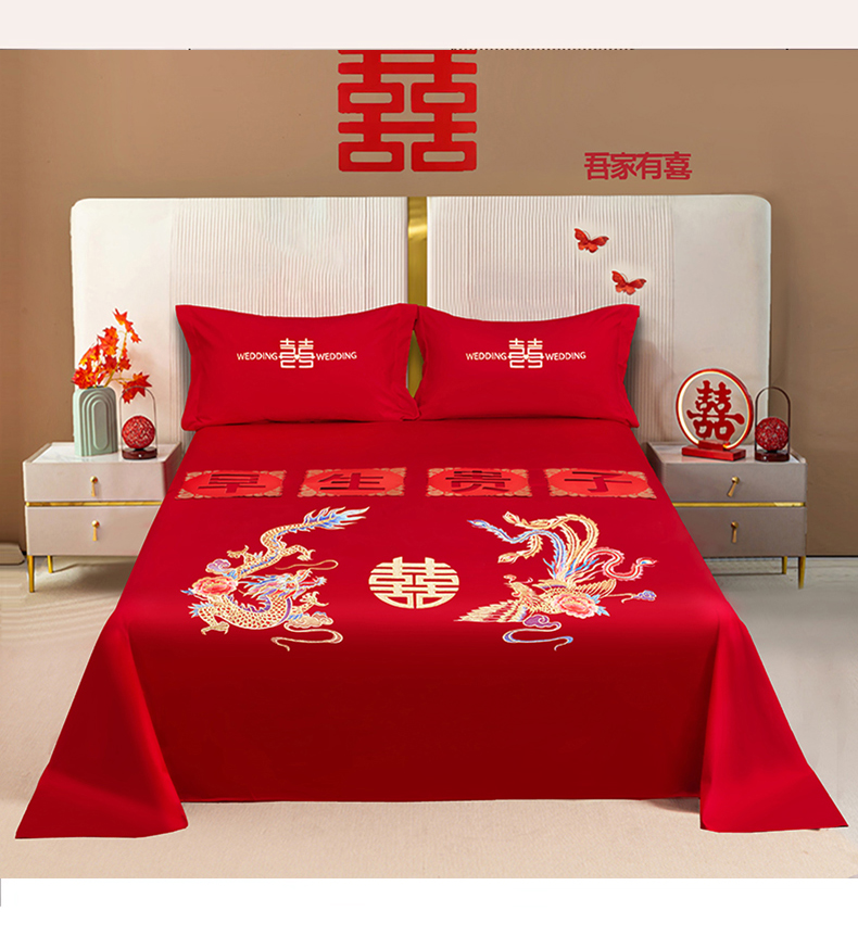 卓缦家纺 2025新款水洗磨毛婚庆床单/床笠 龙凤和鸣
