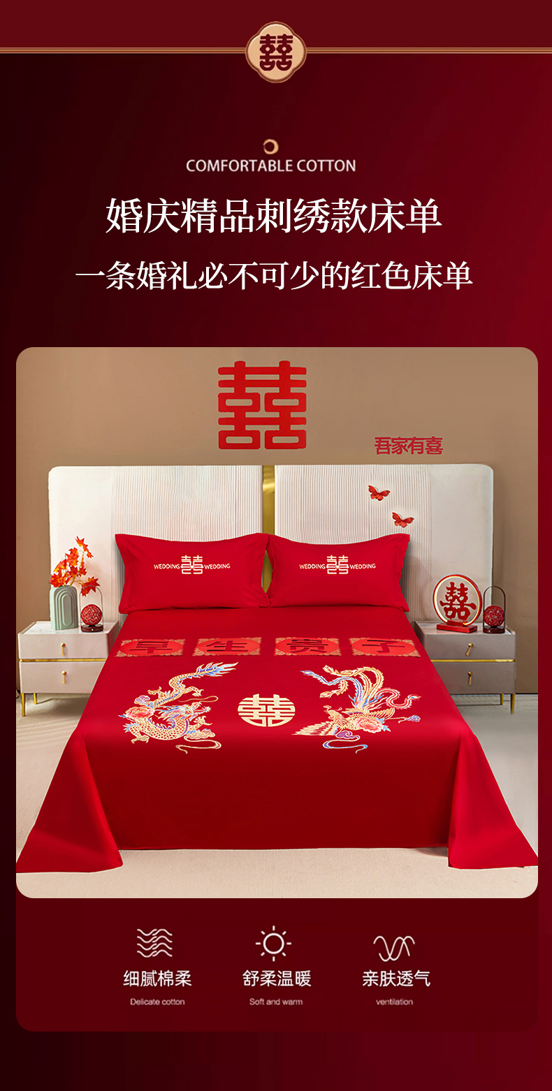 (总)卓缦家纺 2025新款水洗磨毛婚庆床单/床笠,福喜双全,和和美美,龙凤和鸣,千喜图