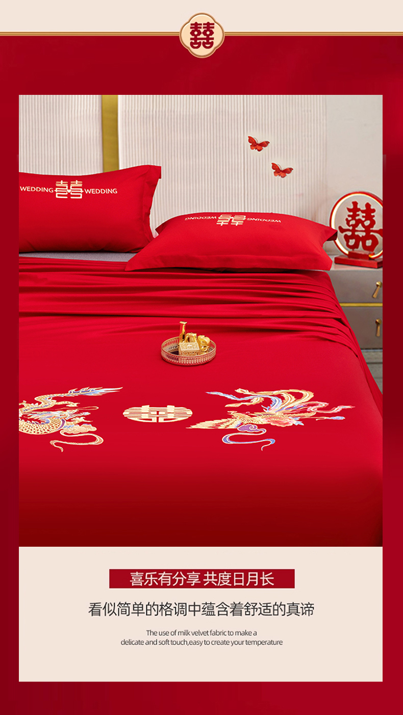 (总)卓缦家纺 2025新款牛奶绒豆豆绒婚庆四件套,双喜临门,欢欢喜喜,龙悦凤鸣,牡丹之恋,心语心愿