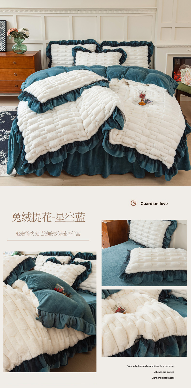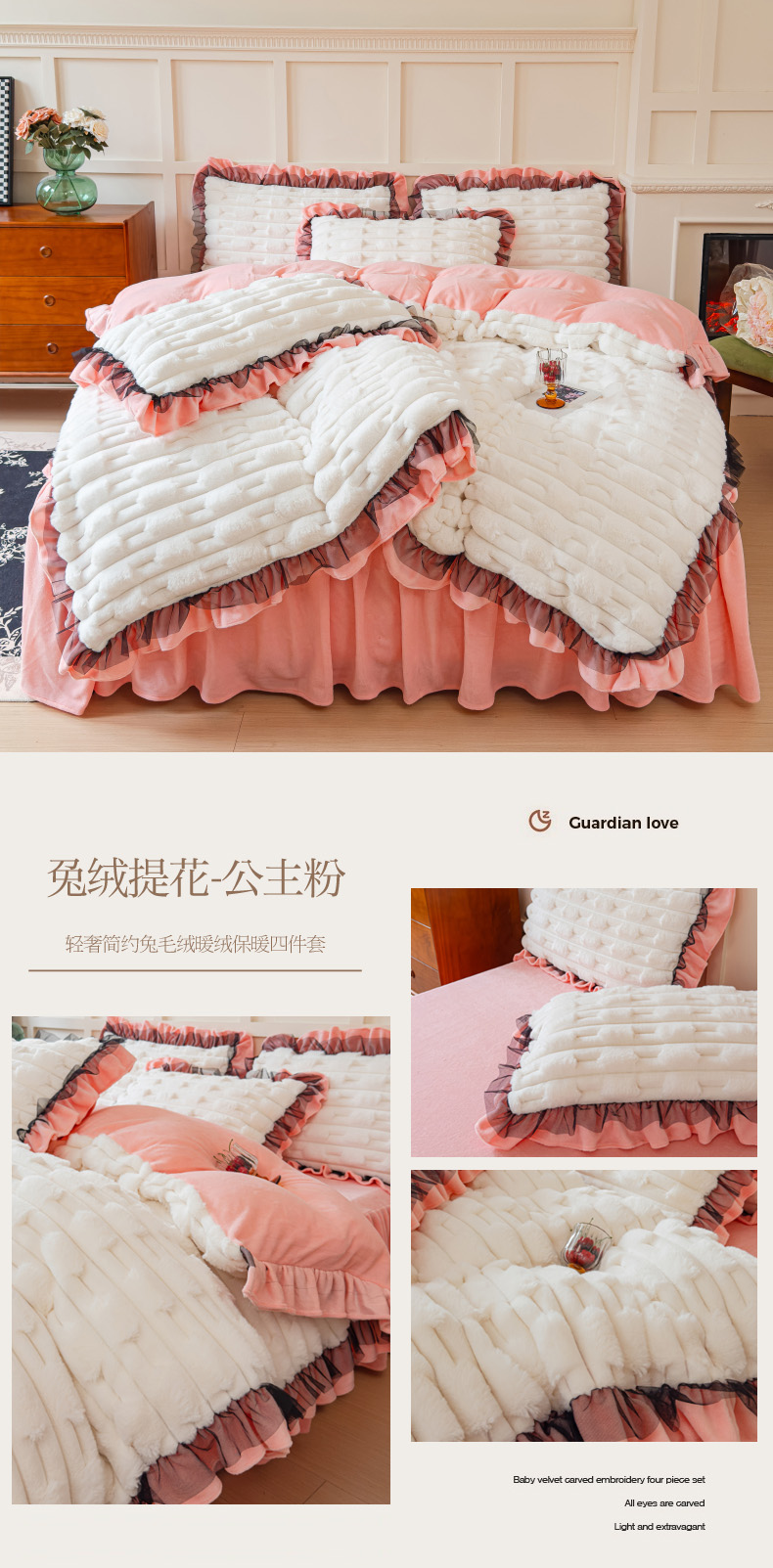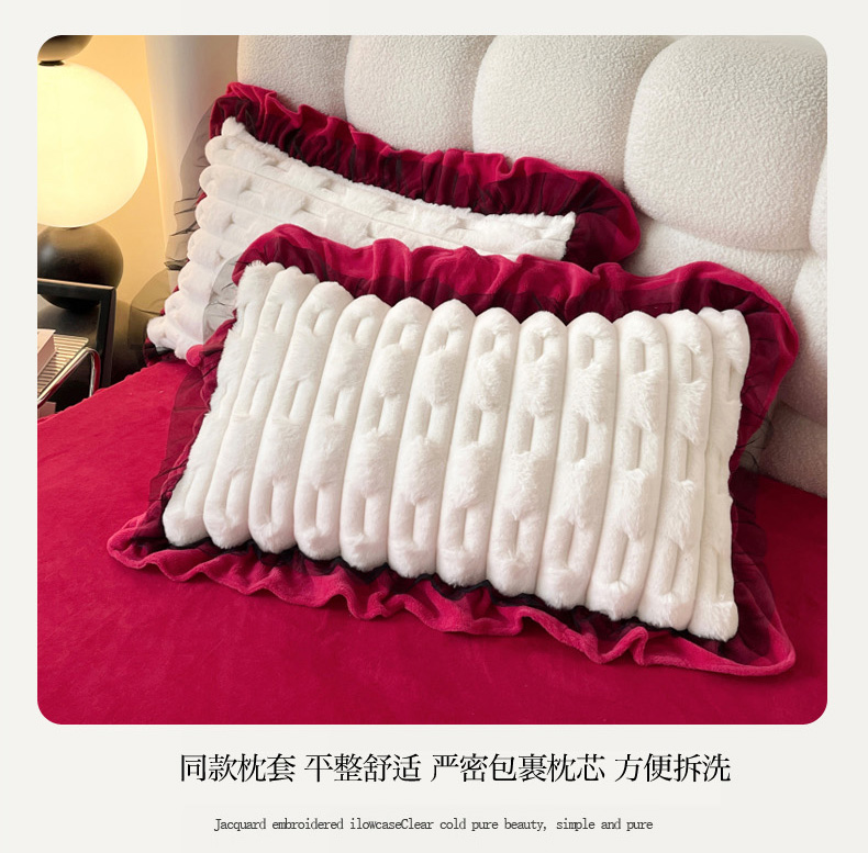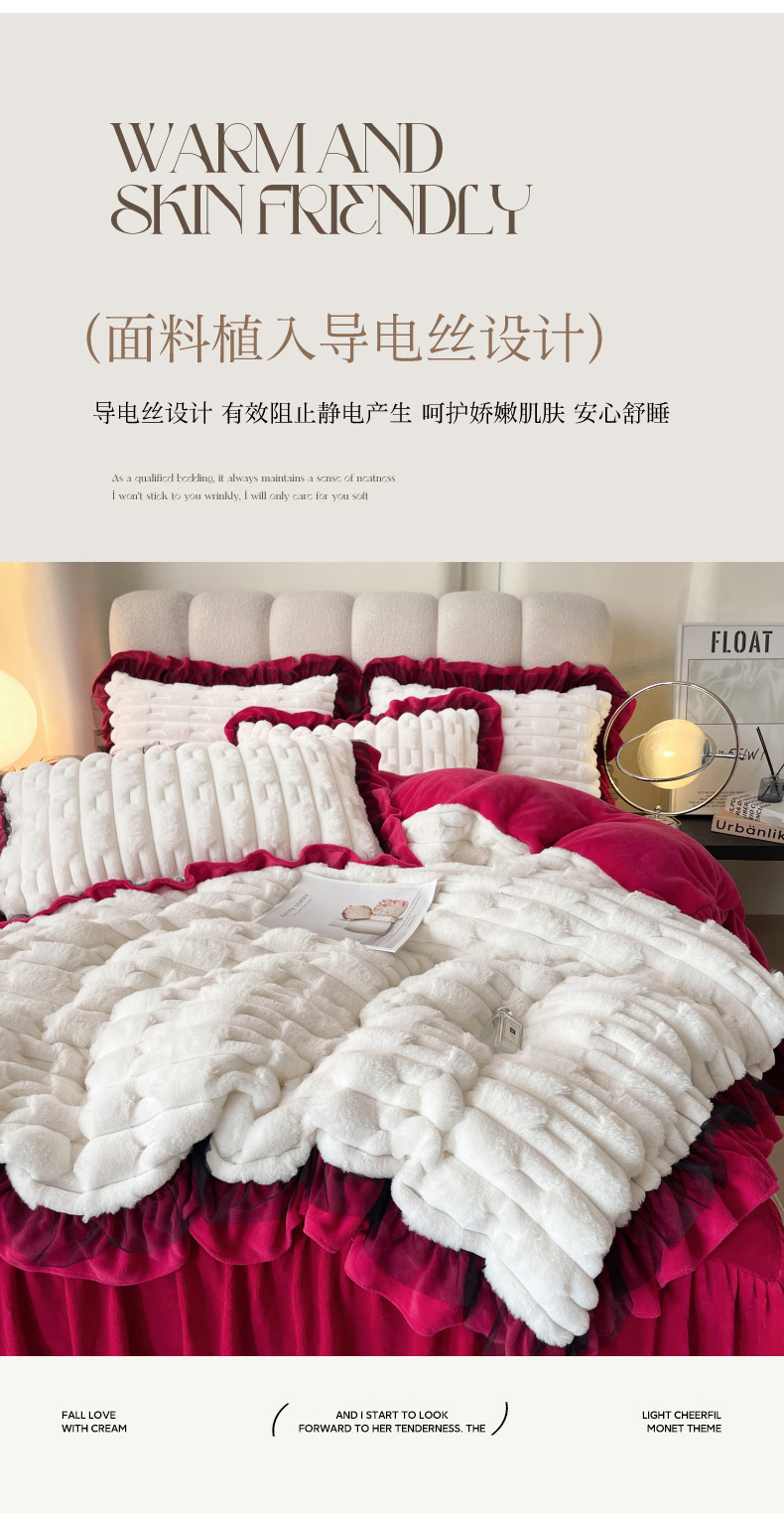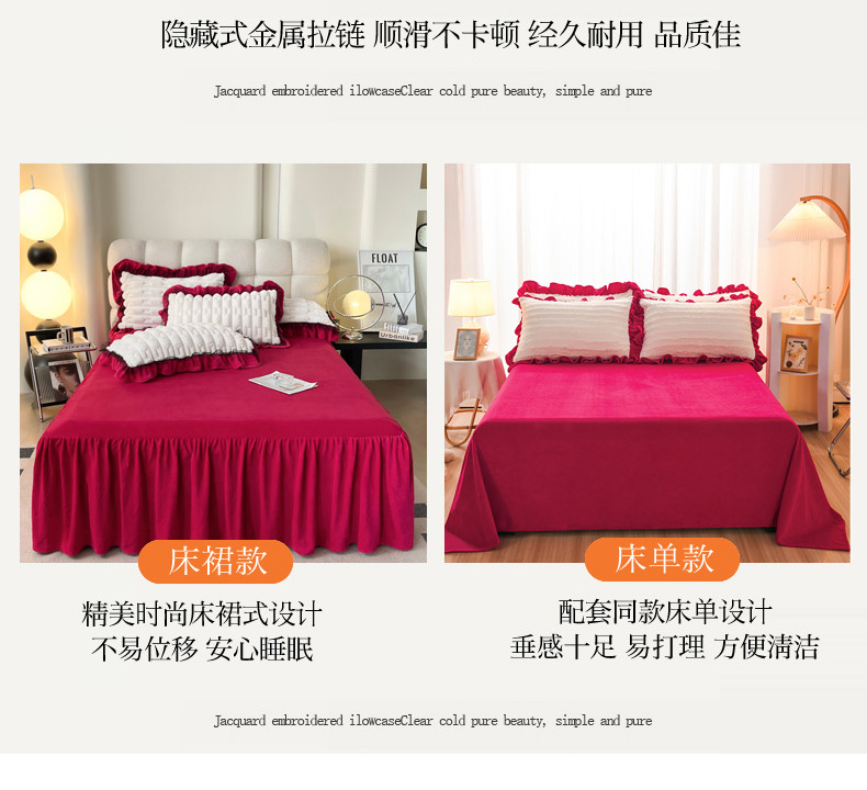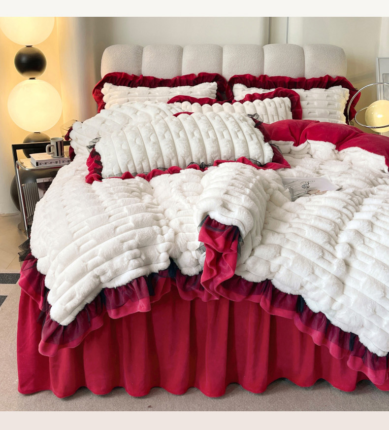 当前位置: 91家纺网 > 商品网购 > 床品套件 > 四件套 > 牛奶绒四件套 > 睡美人 2025韩版兔绒提花牛奶绒床裙床单床笠款四件套 兔绒提花-酒红色
