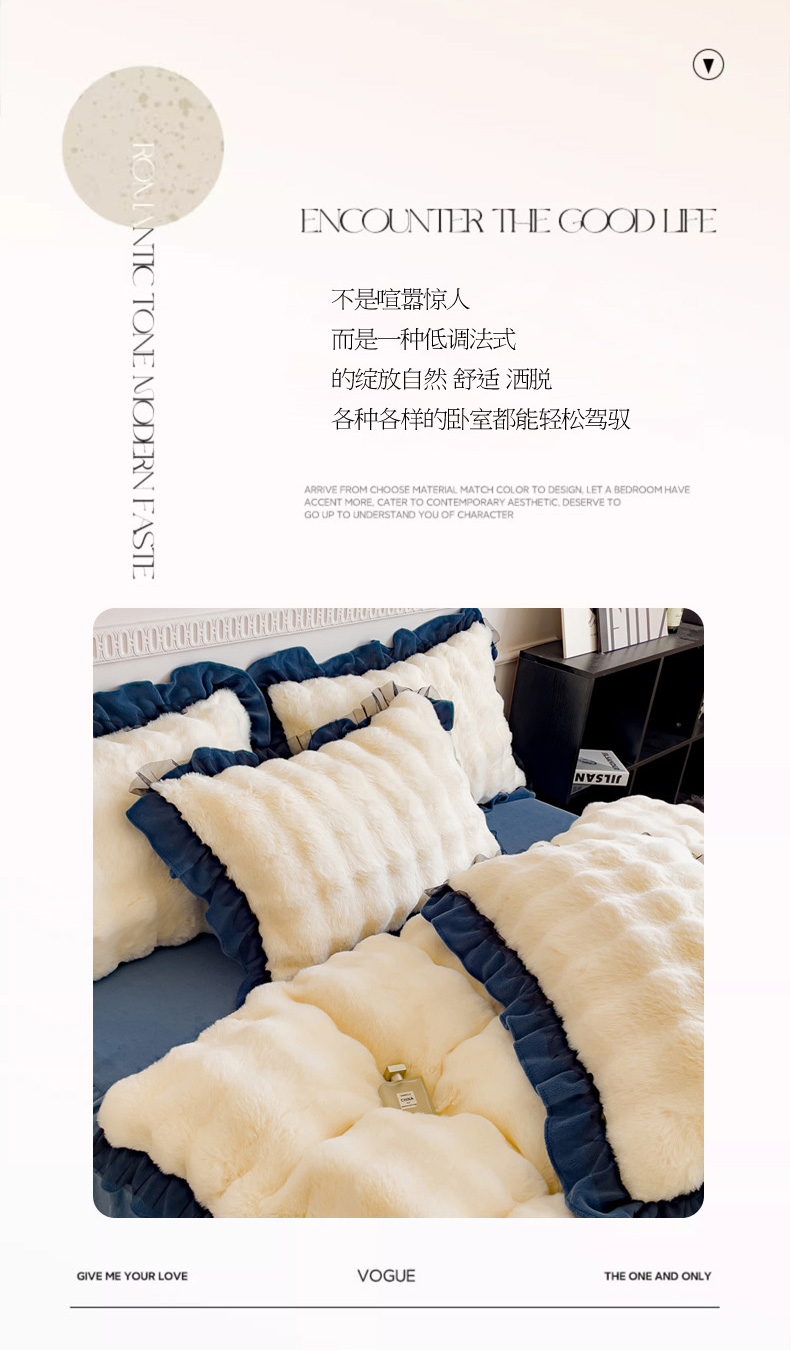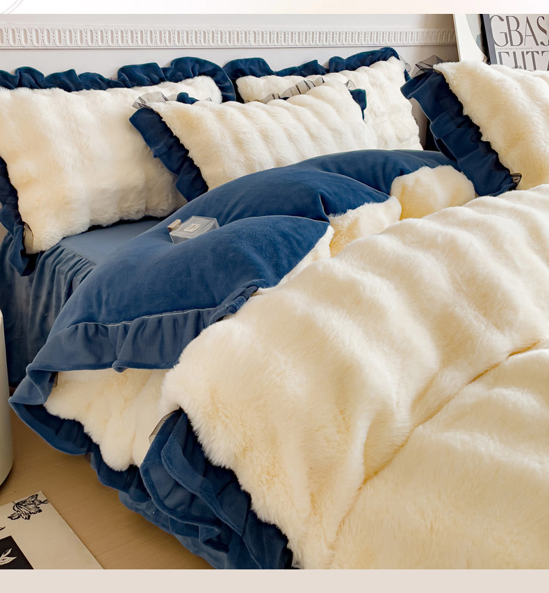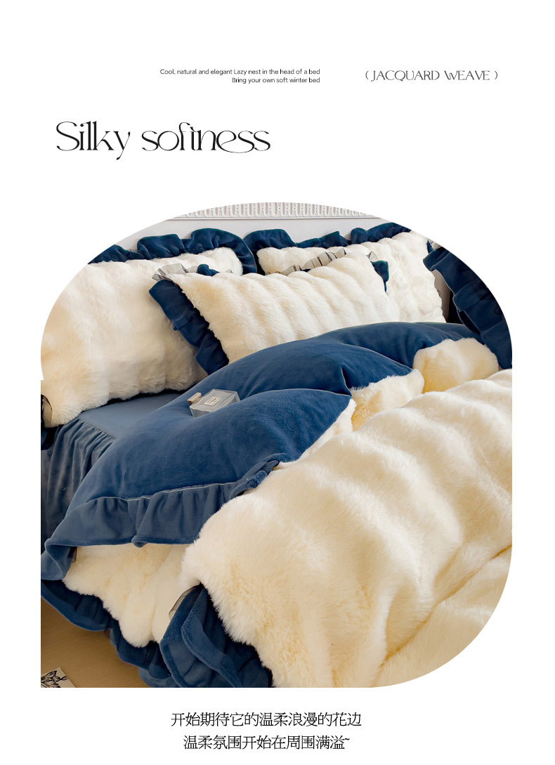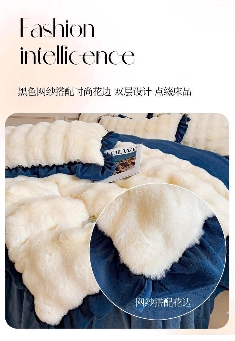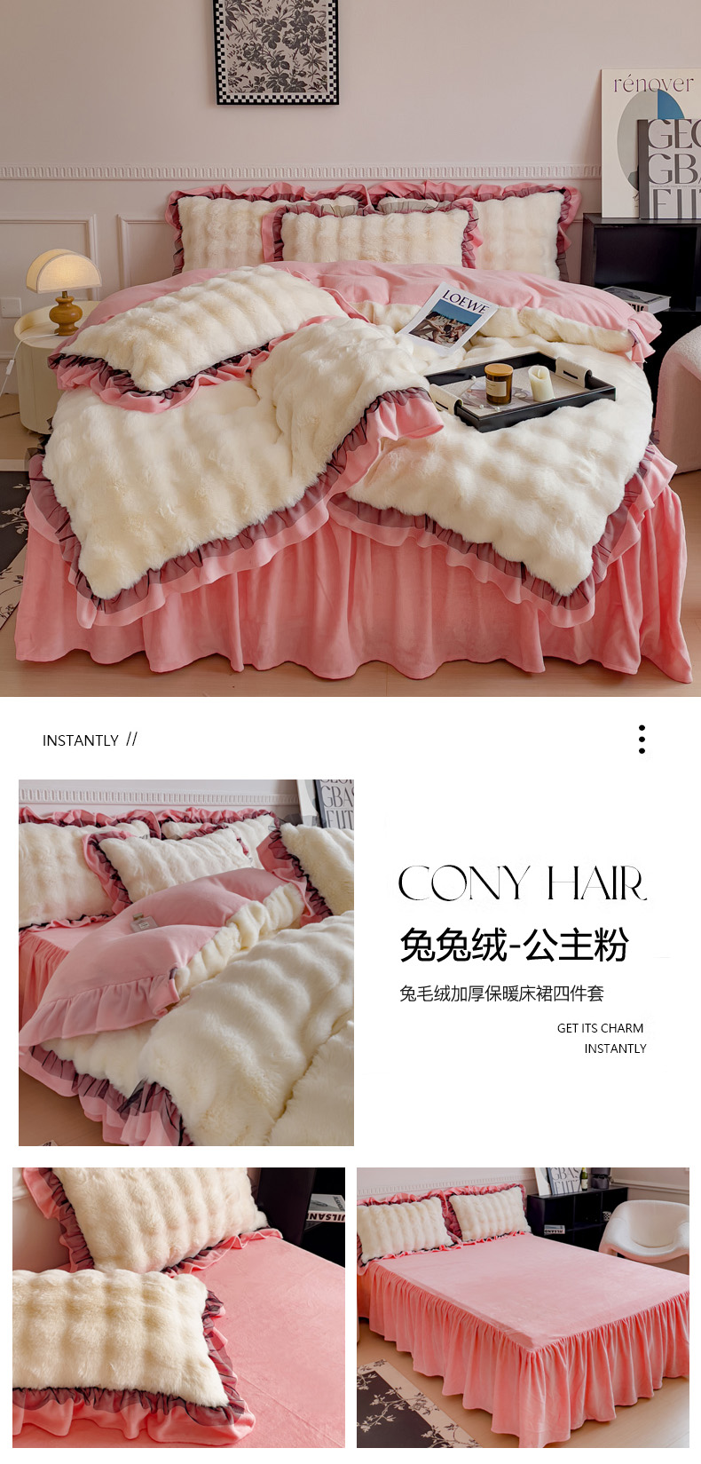 当前位置: 91家纺网 > 商品网购 > 床品套件 > 四件套 > 牛奶绒四件套 > 睡美人 2025韩版兔兔绒牛奶绒床裙床单床笠款公主蕾丝四件套 兔兔绒-气质灰
