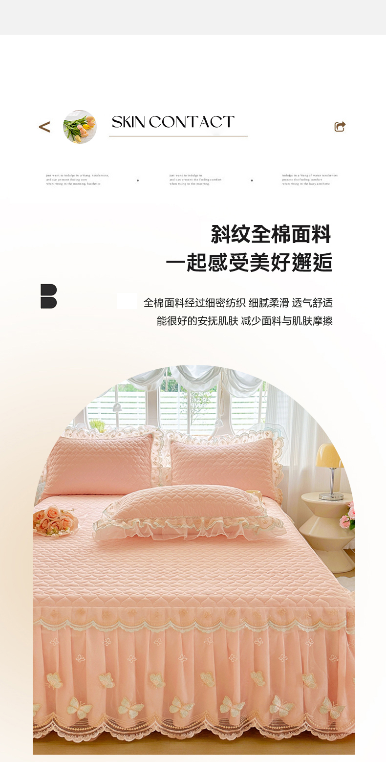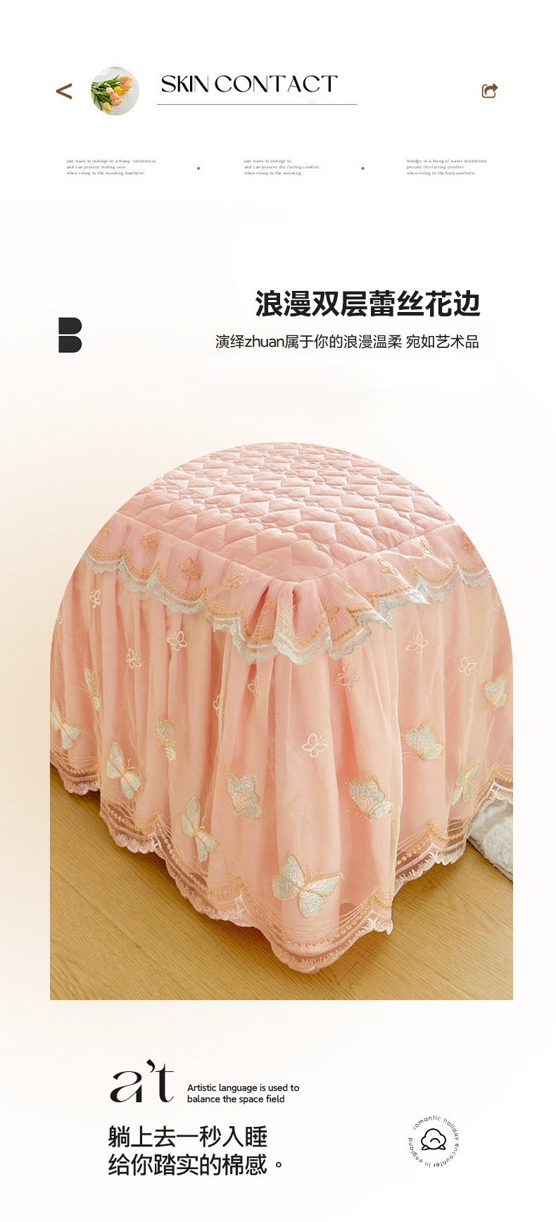 商品名称:罗艺轩 2025新款全棉纯棉斜纹花边单床裙床裙单件单品床裙 蓝蝴蝶-玉色