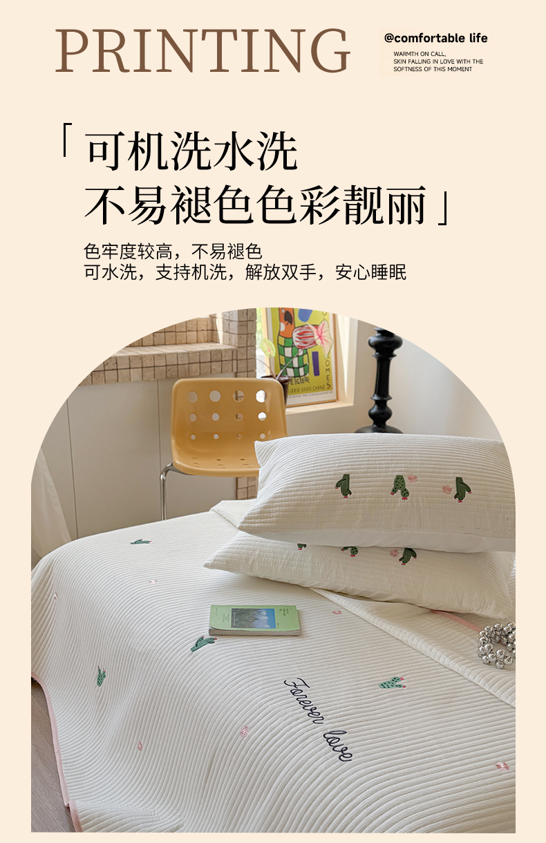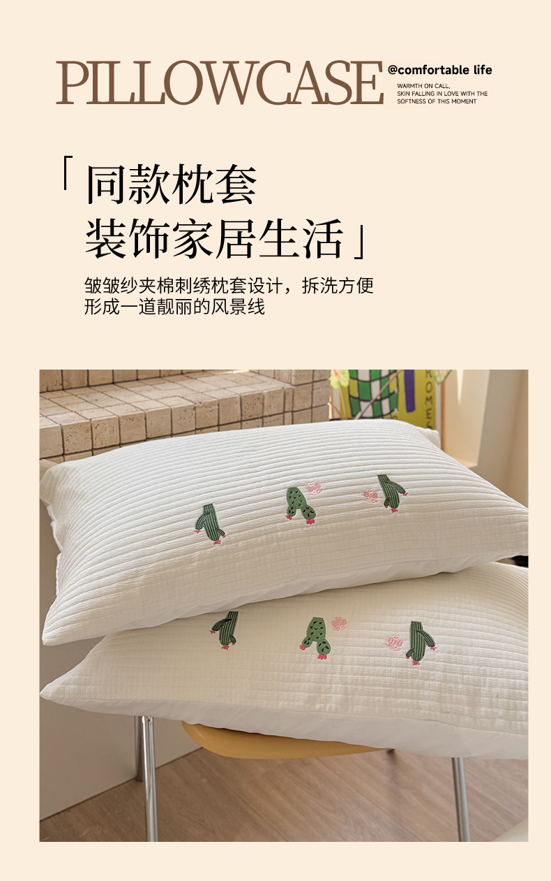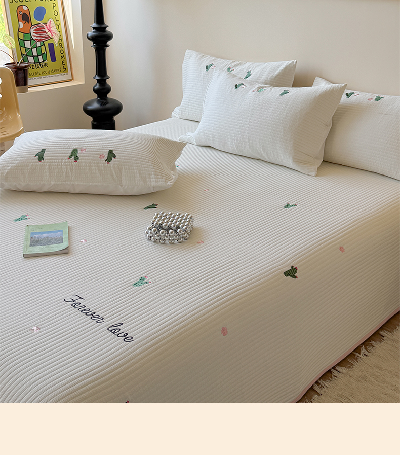 优悦生活馆 2025新款皱皱纱夹棉刺绣系列床盖 仙人掌-灰