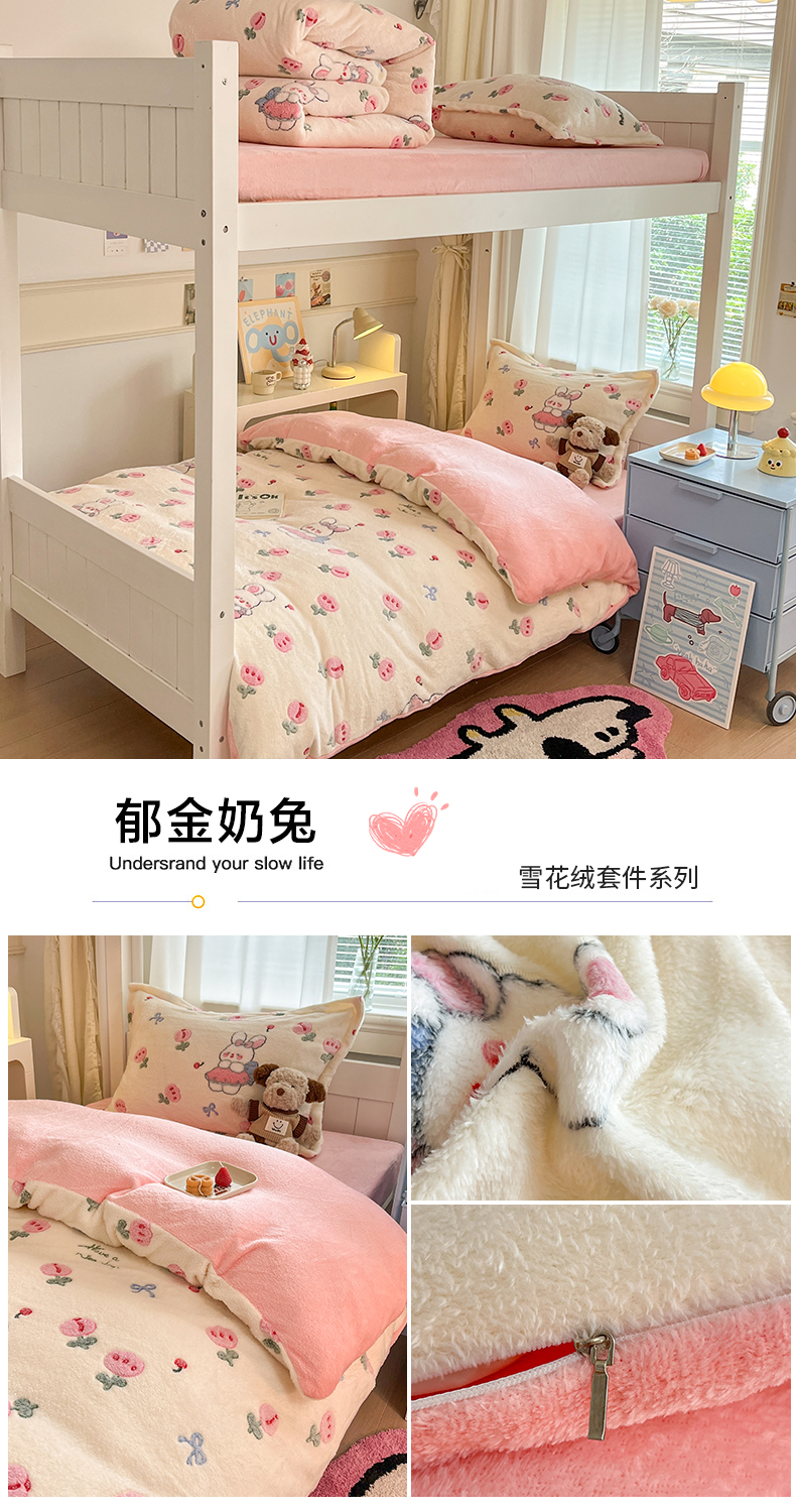 当前位置: 91家纺网 > 商品网购 > 床品套件 > 三件套 > 川悦生活 2025新款雪花绒宿舍床笠款三件套 半眠小兔