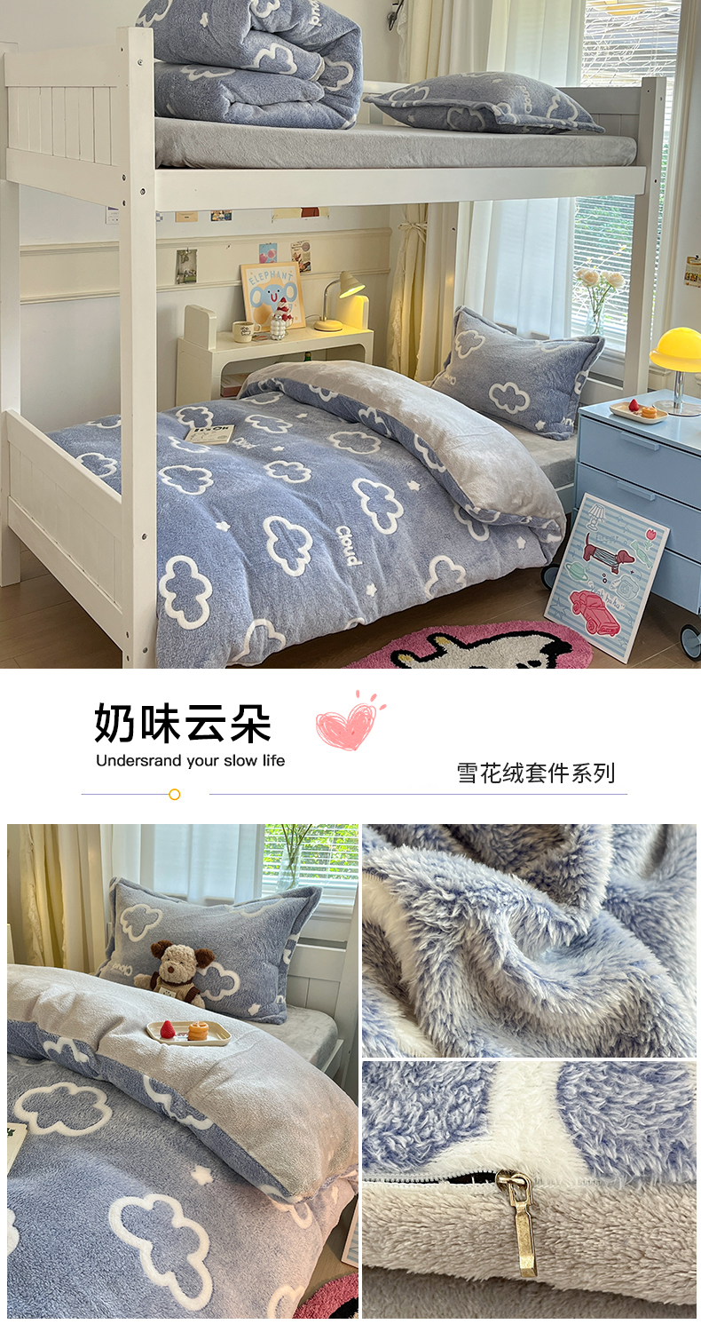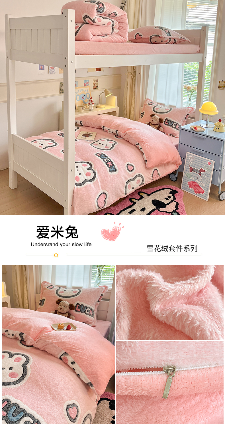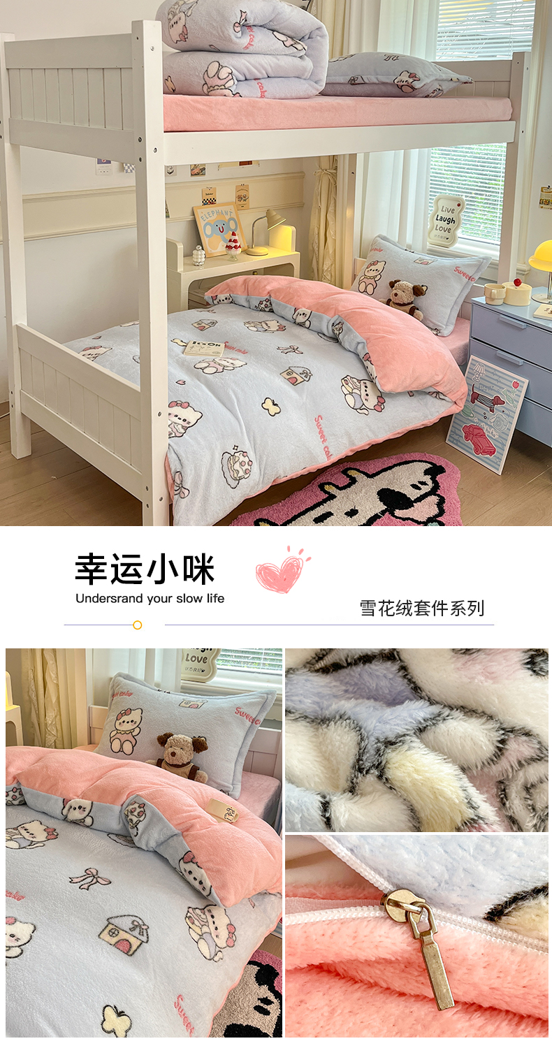 当前位置: 91家纺网 > 商品网购 > 床品套件 > 三件套 > 川悦生活 2025新款雪花绒宿舍床笠款三件套 蜜语奶兔