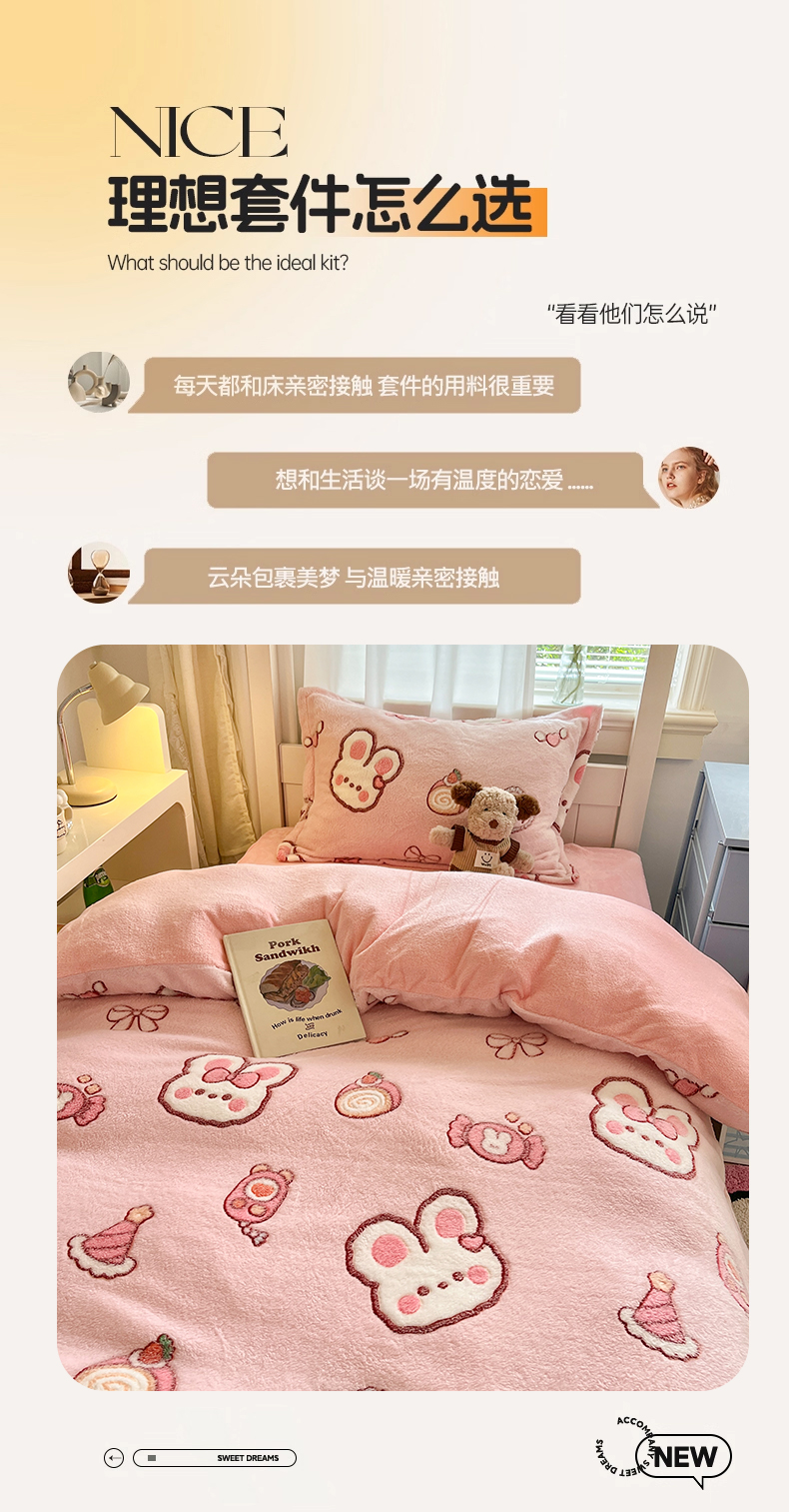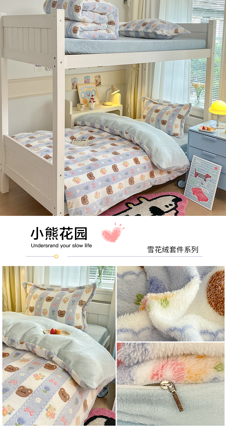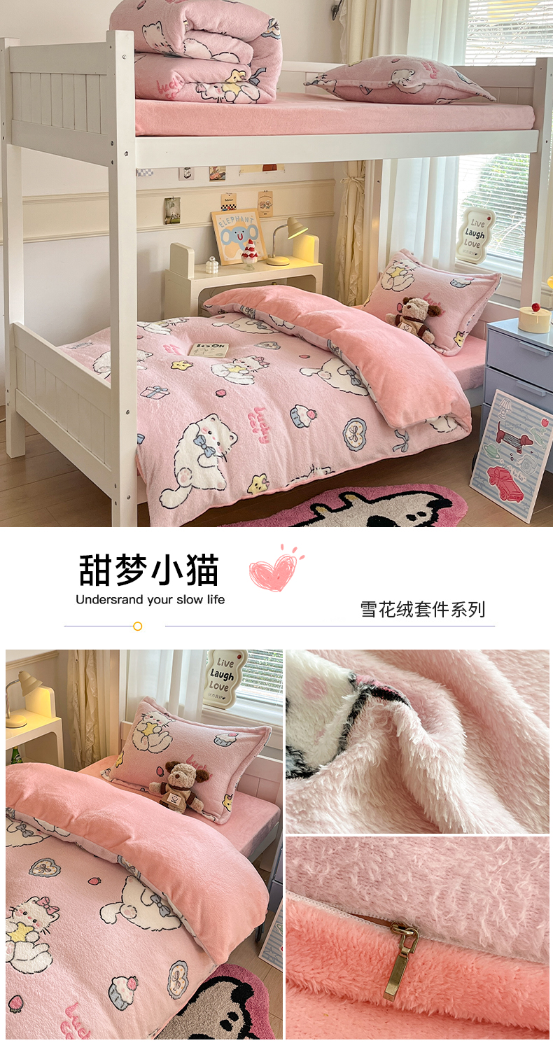 当前位置: 91家纺网 > 商品网购 > 床品套件 > 三件套 > 川悦生活 2025新款雪花绒宿舍床笠款三件套 蜜语奶兔