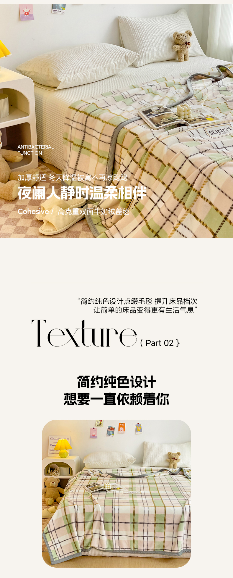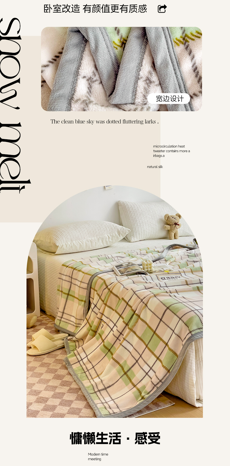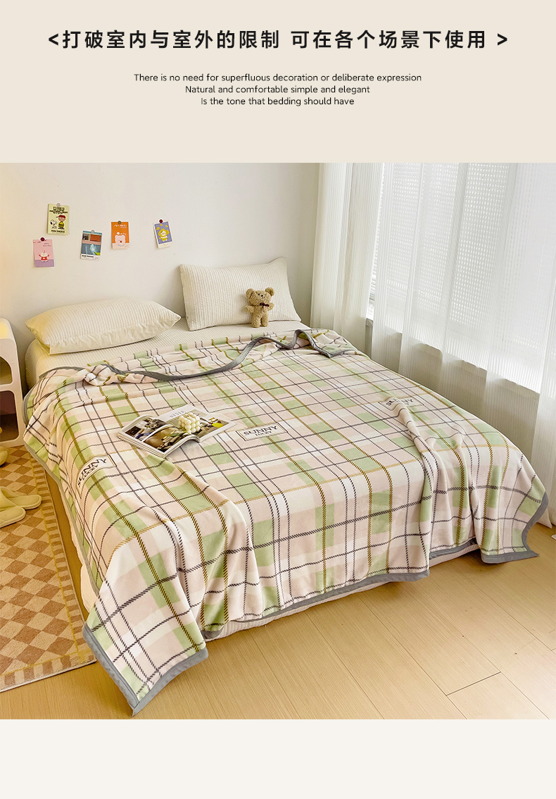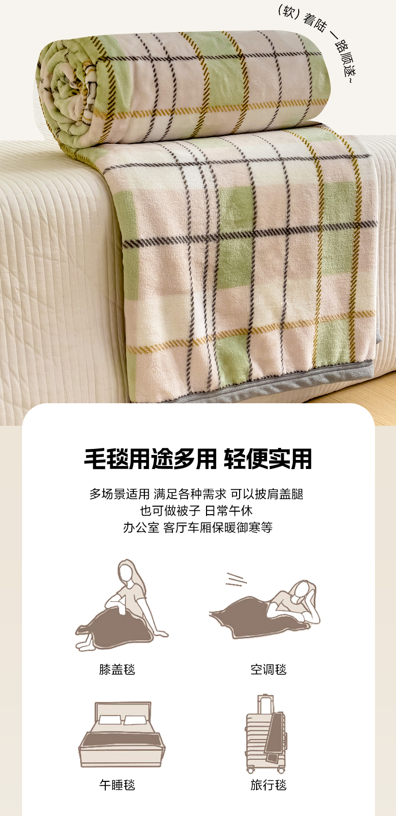 商品名称:启发毛毯 2025新款高克重双面牛奶绒盖毯 绿大格