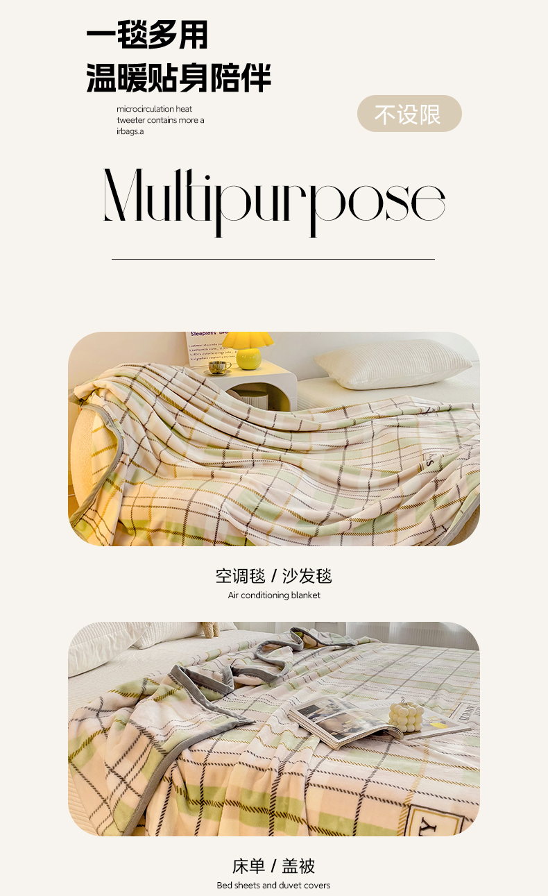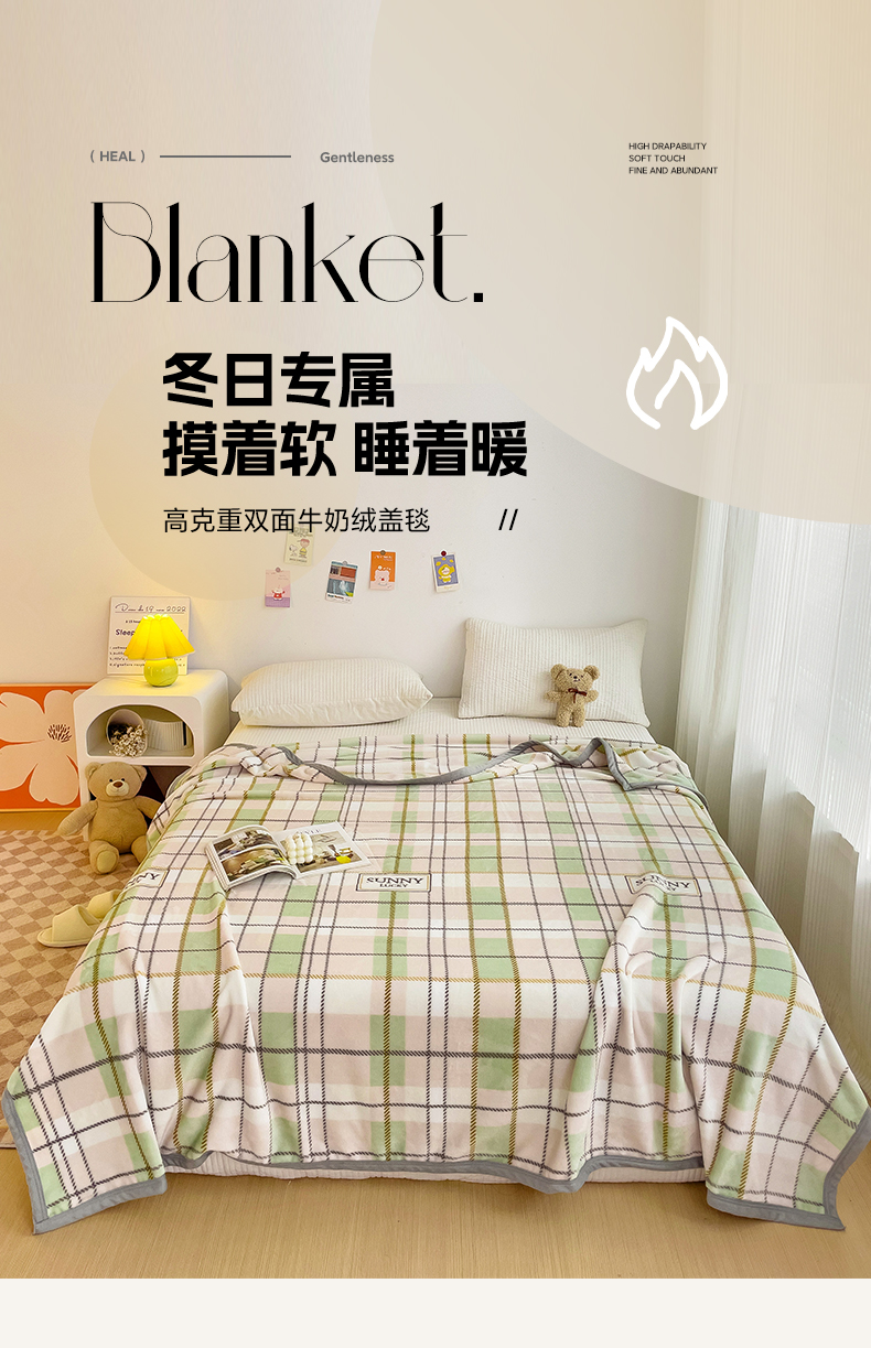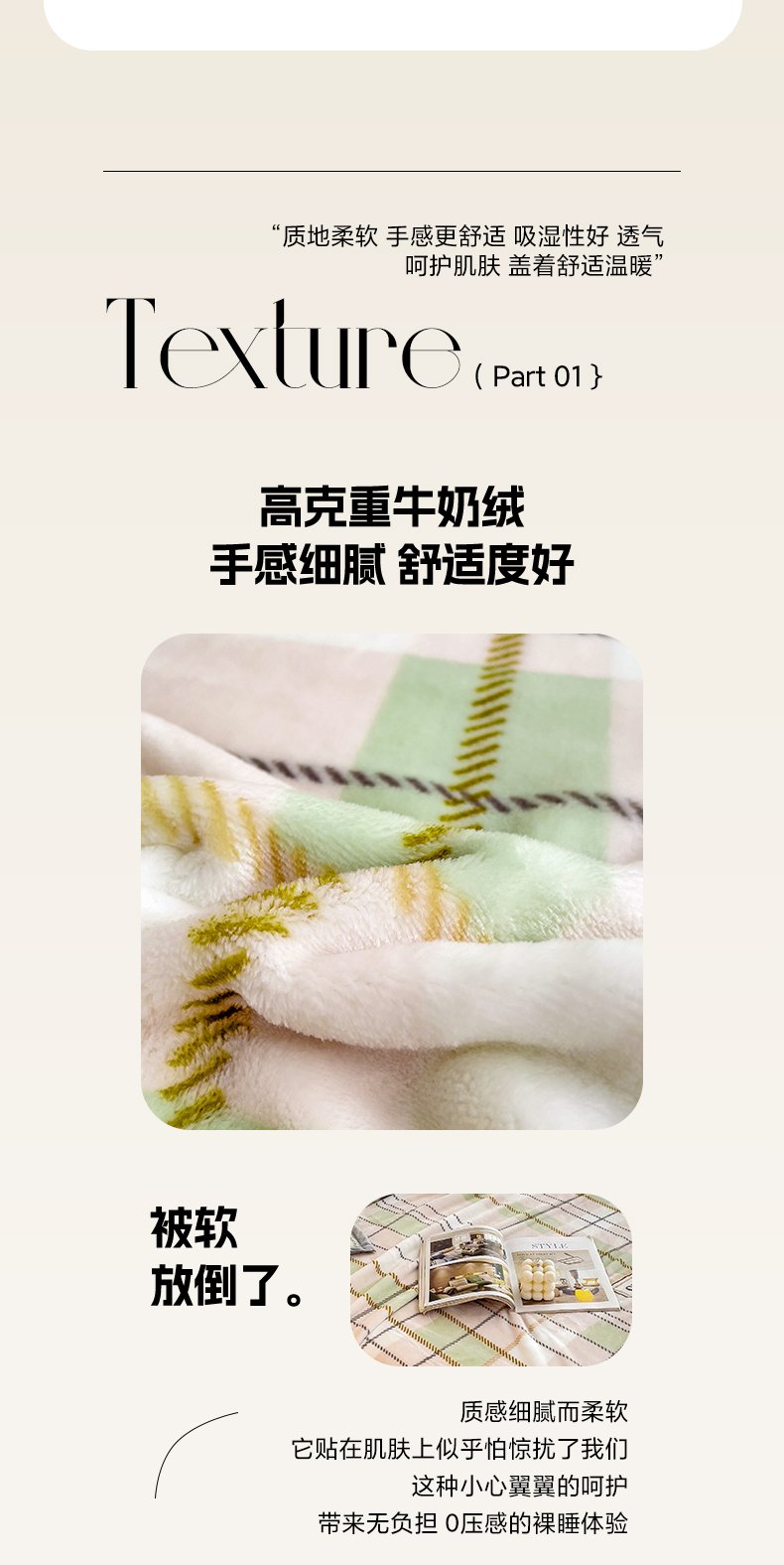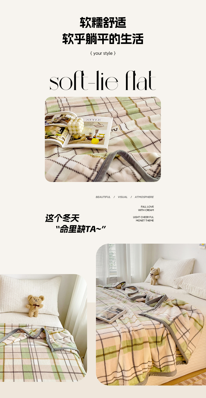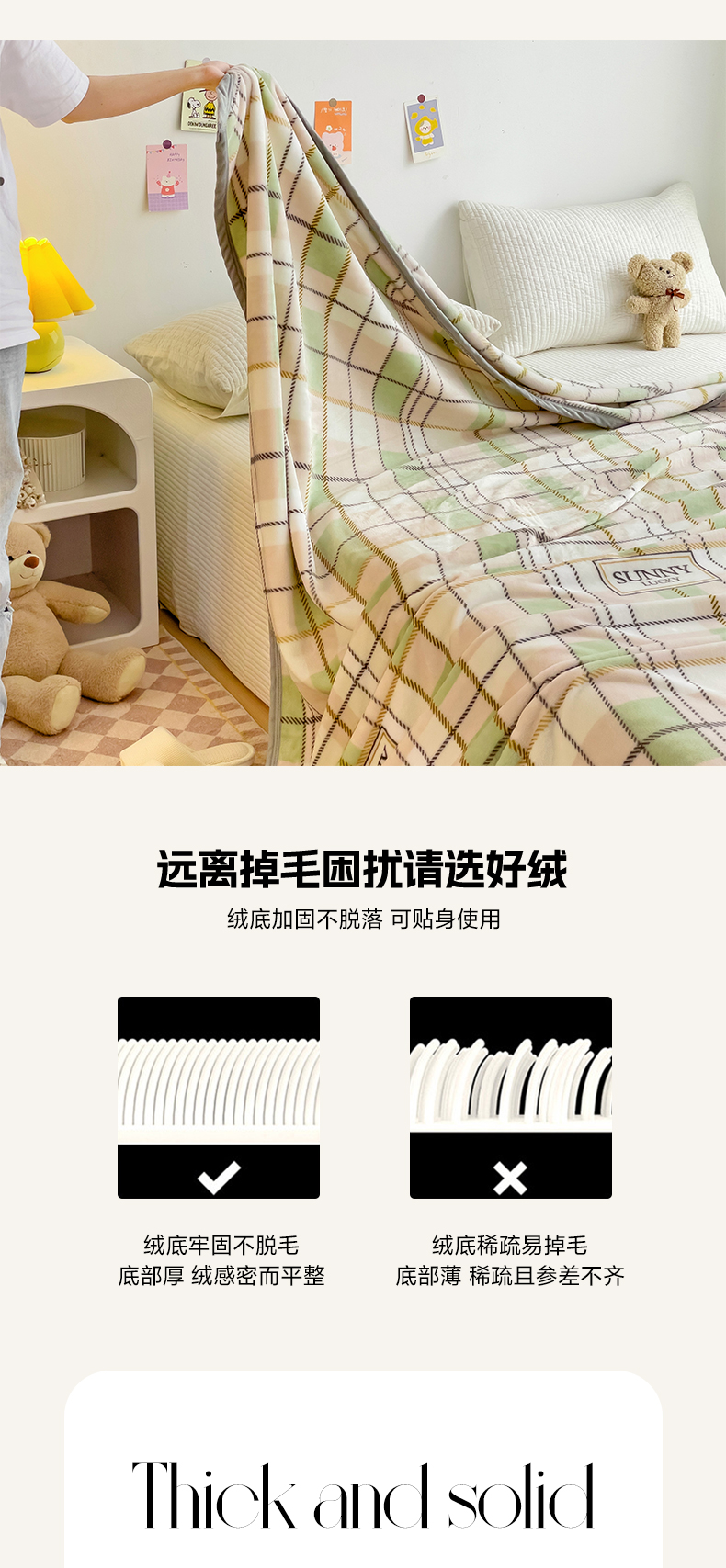 商品名称:启发毛毯 2025新款高克重双面牛奶绒盖毯 绿大格