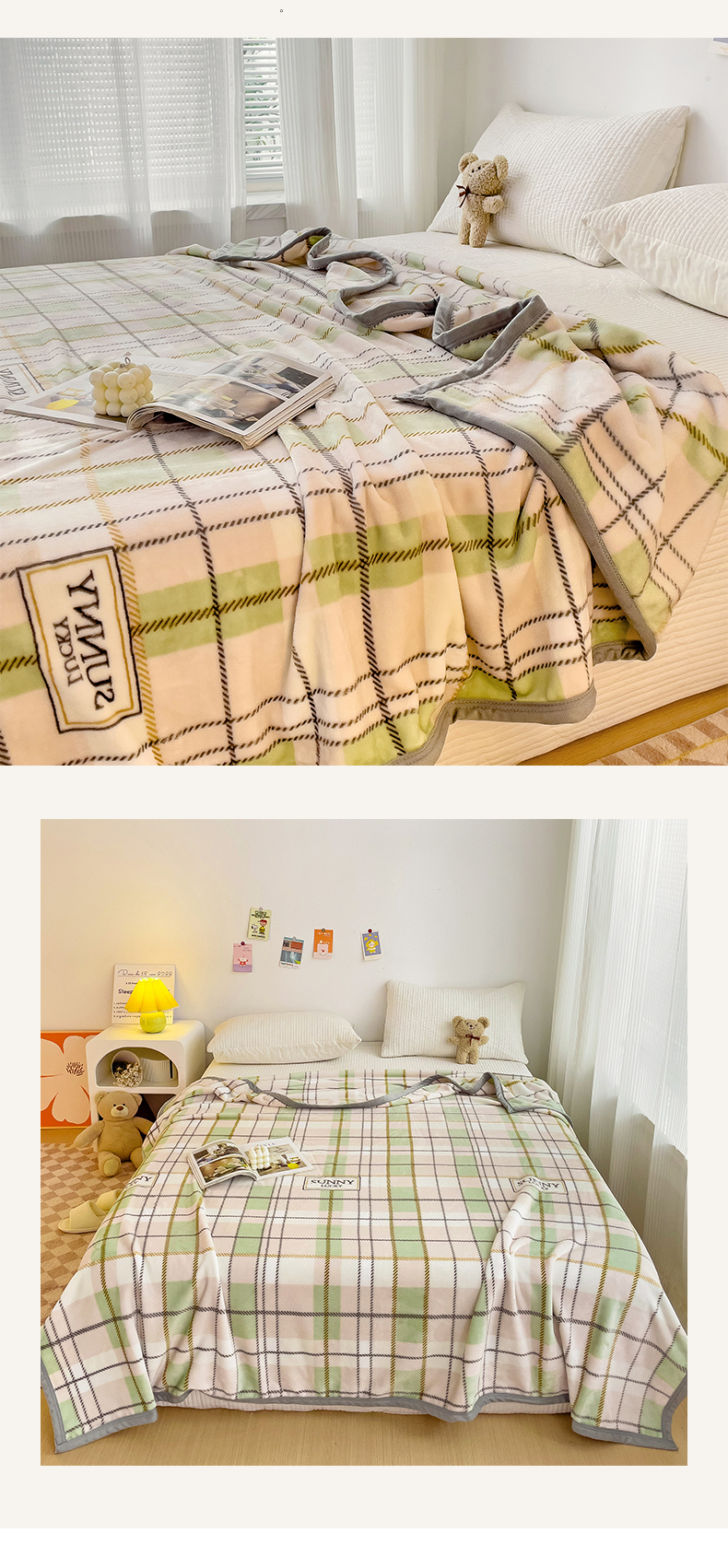 启发毛毯 2025新款高克重双面牛奶绒盖毯 绿大格
