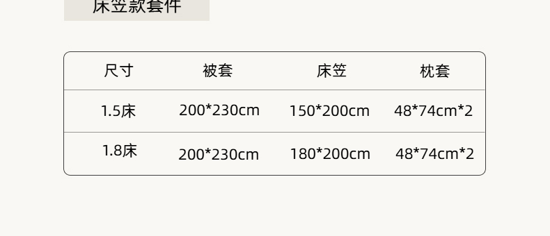1.8m床笠款四件套 | ¥120.00 |