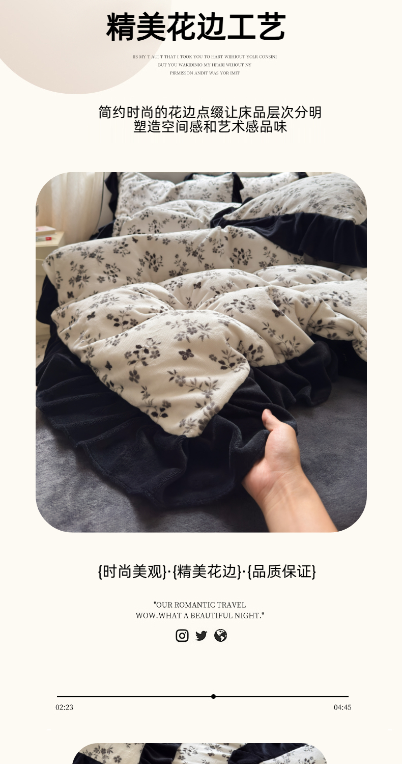 当前位置: 91家纺网 > 商品网购 > 床品套件 > 四件套 > 牛奶绒四件套 > 2025新款赫本风牛奶绒-花边款四件套 花边款-蝶恋花