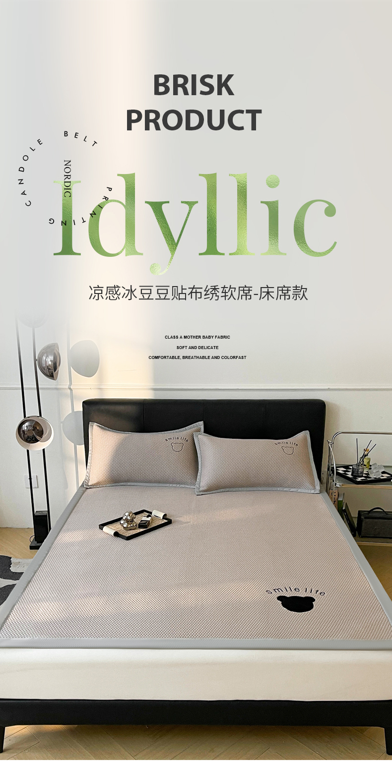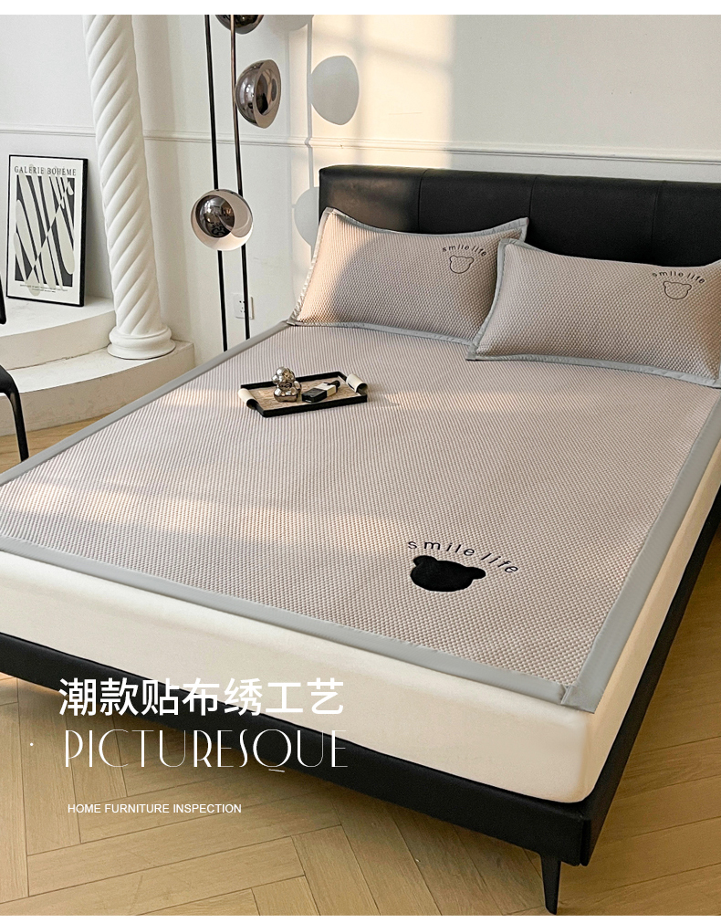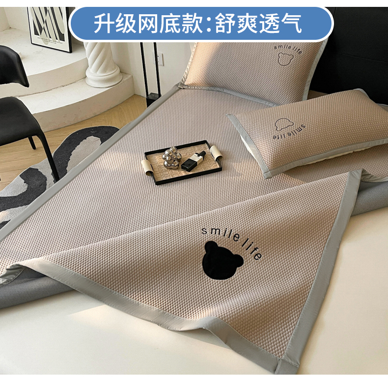 当前位置: 91家纺网 > 商品网购 > 床上用品 > 凉席 > 其他凉席 > 小叮当家纺仓储工厂店 2025新款冰豆豆贴布绣八宝熊系列绑带床席款(场景一) 绑带款-八宝熊-咖
