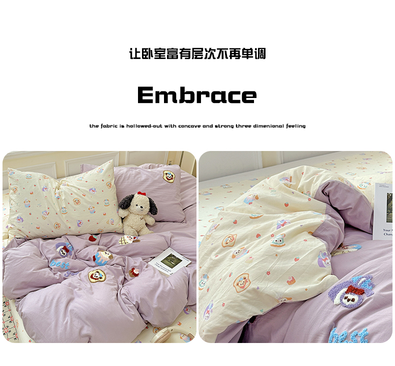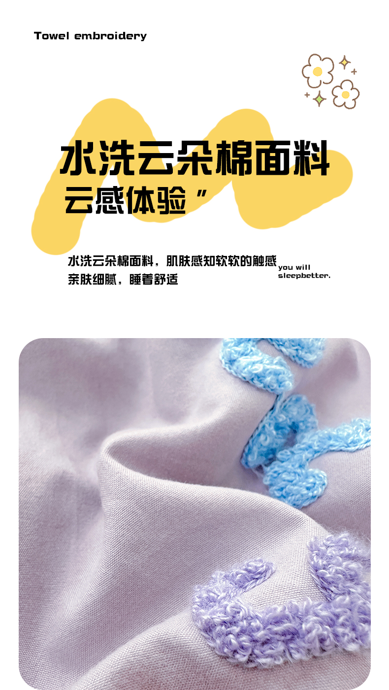 当前位置: 91家纺网 > 商品网购 > 床品套件 > 四件套 > 毛巾绣四件套 > 奈颜 2025新款爆款水洗云朵棉毛巾绣四件套 星黛公主