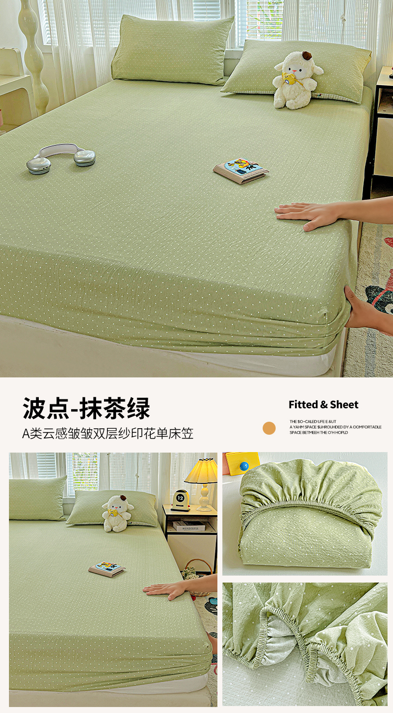 格真 2025秋冬新款110克高克重提花加厚皱皱纱双层纱印花单床笠 草木集黄