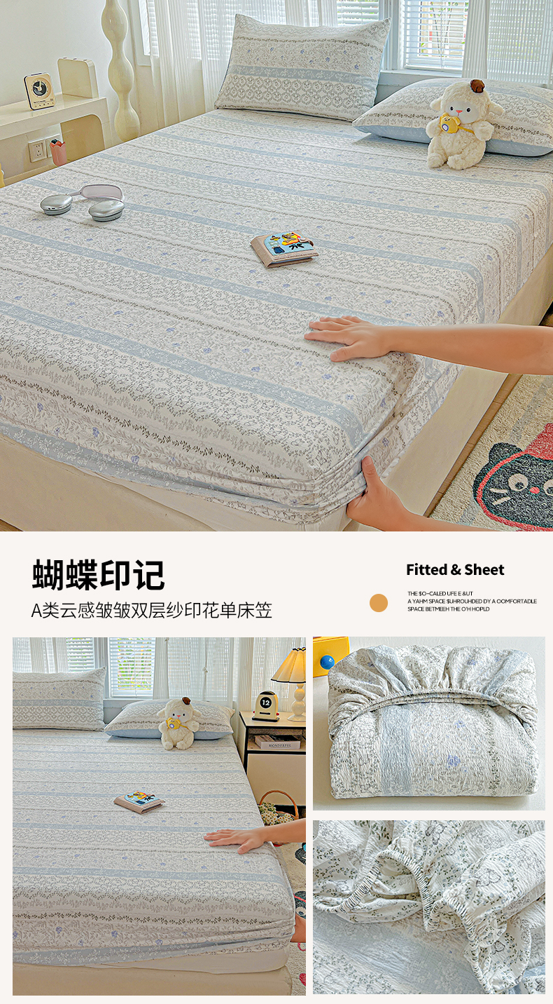 当前位置: 91家纺网 > 商品网购 > 床上用品 > 床笠 > 格真 2025秋冬新款110克高克重提花加厚皱皱纱双层纱印花单床笠 草木集黄