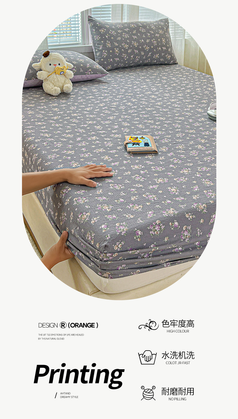 • 91家纺网 家纺一手货源 找家纺 格真 2025秋冬新款110克高克重提花加厚皱皱纱双层纱印花单床笠 草木集黄