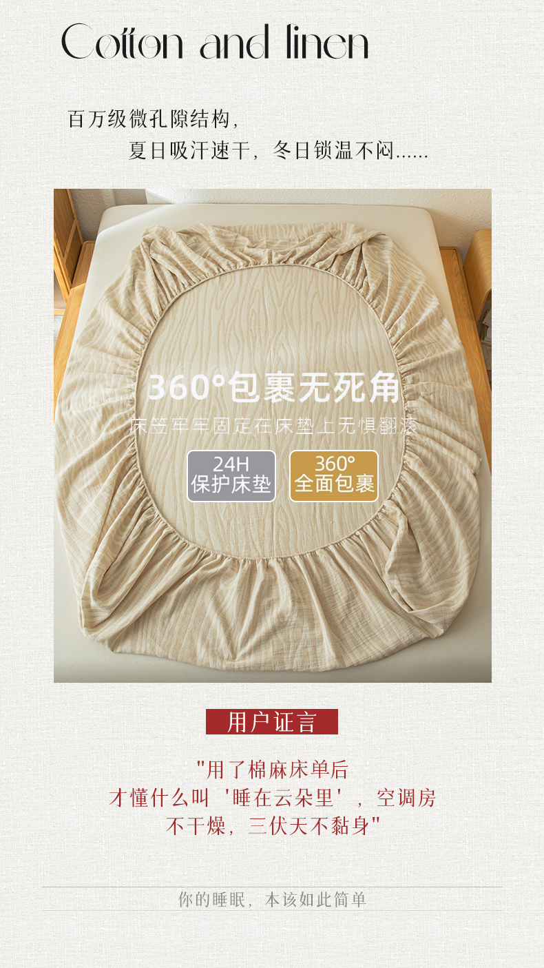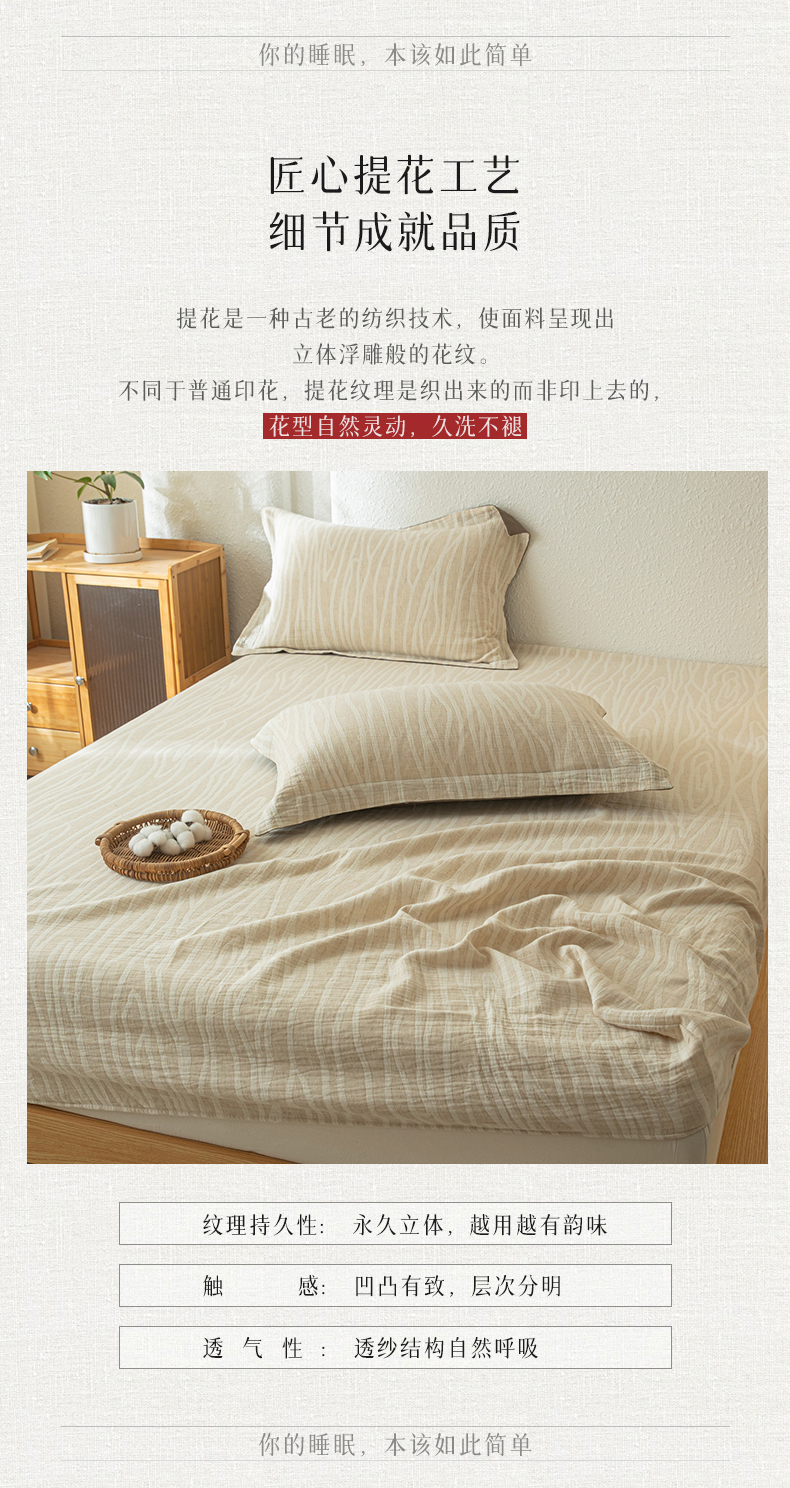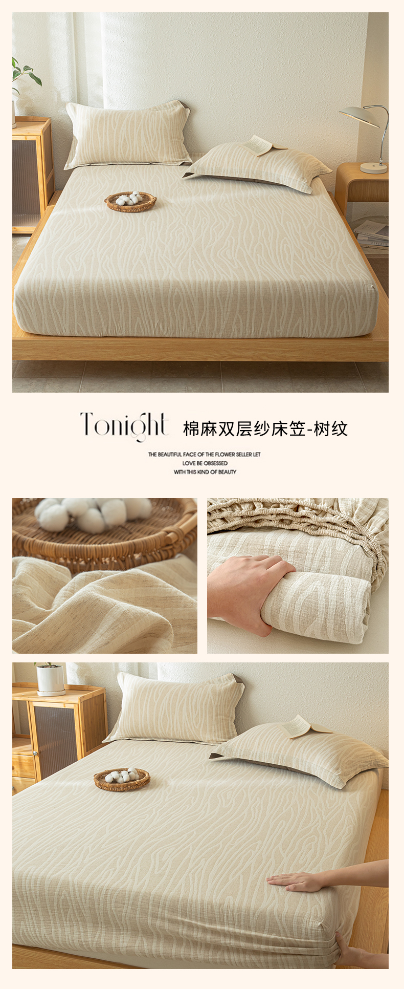 • 91家纺网 家纺一手货源 找家纺 眠博士 2025新款A类棉麻双层纱提花床笠 棉麻双层纱床笠-树纹