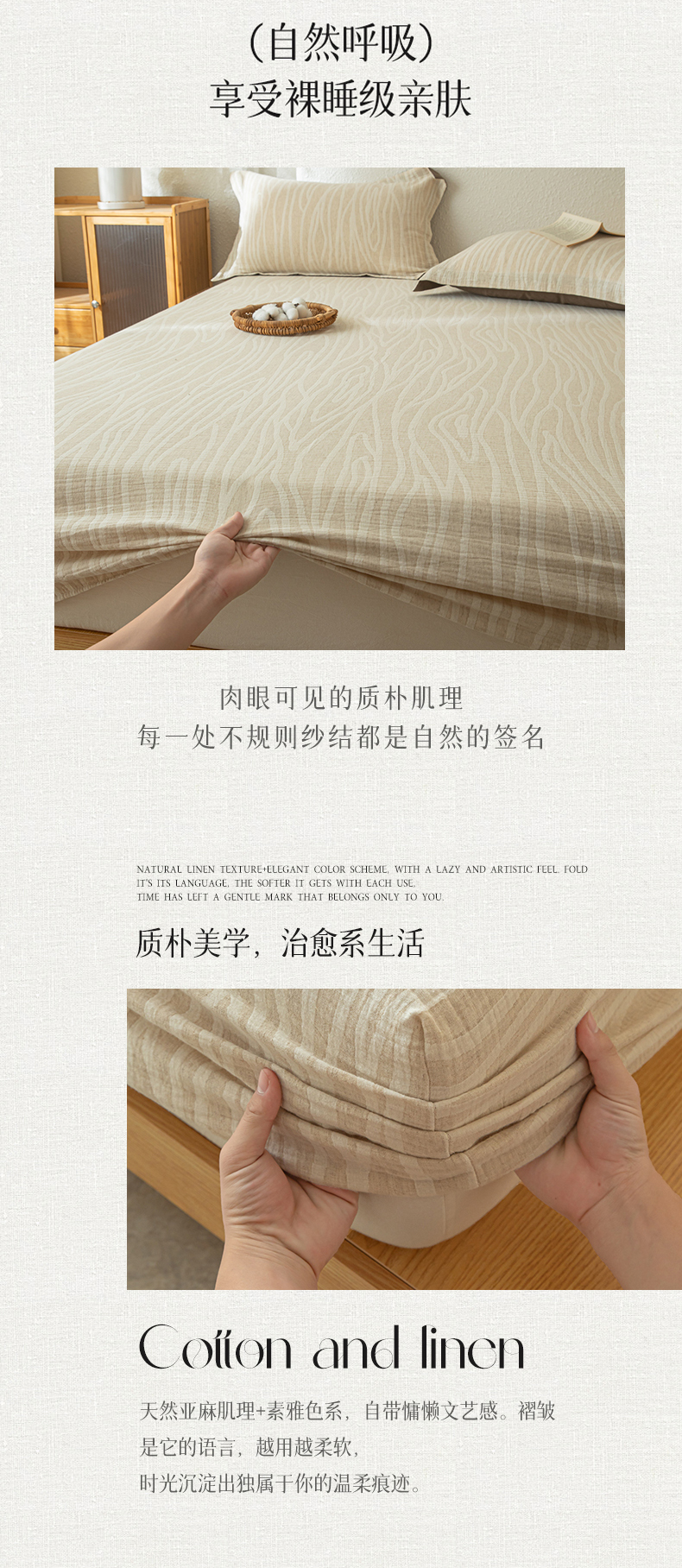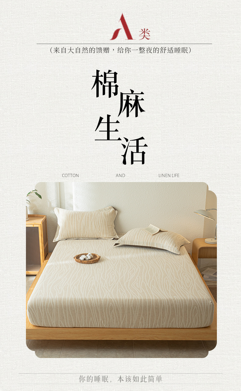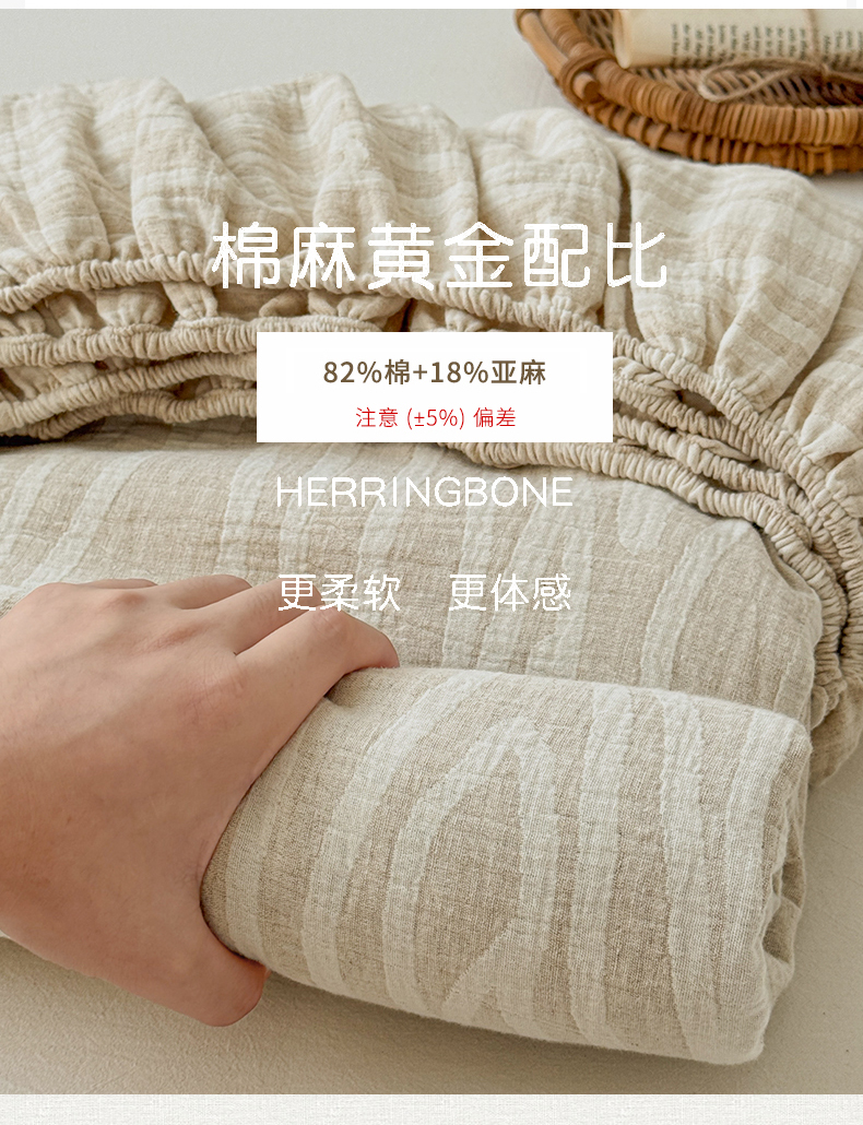 • 91家纺网 家纺一手货源 找家纺 眠博士 2025新款A类棉麻双层纱提花床笠 棉麻双层纱床笠-树纹