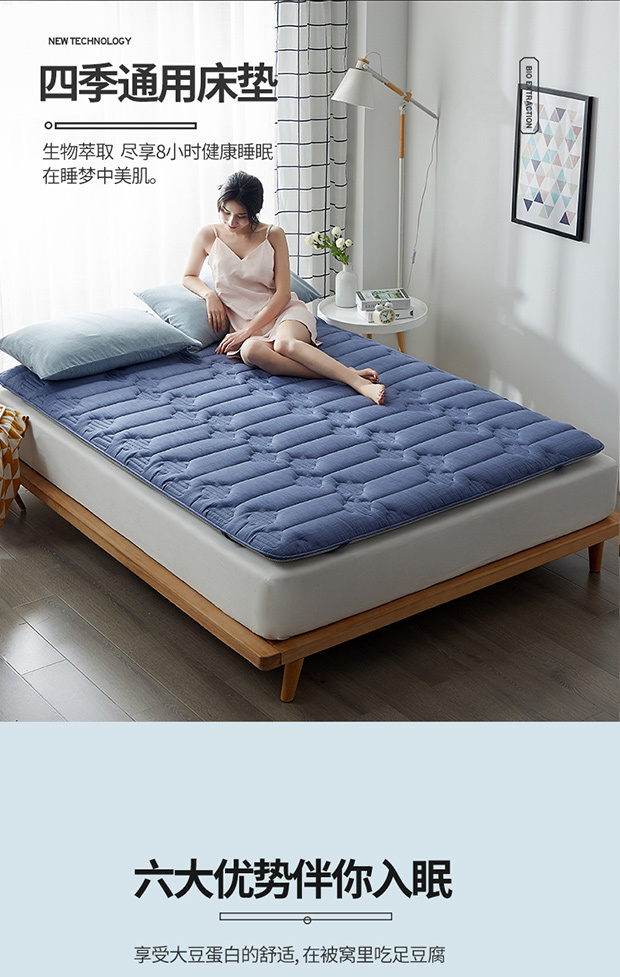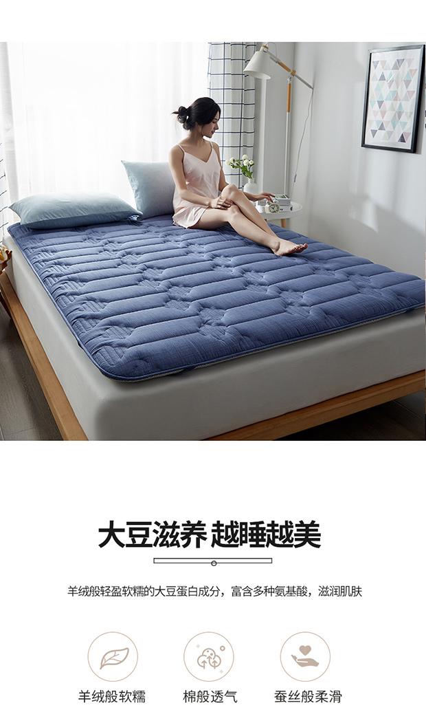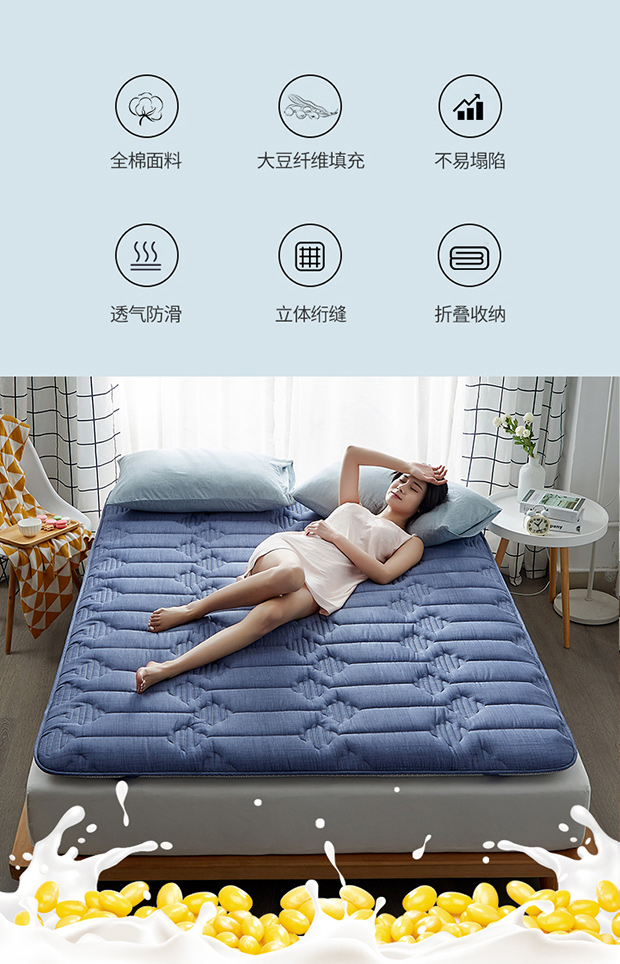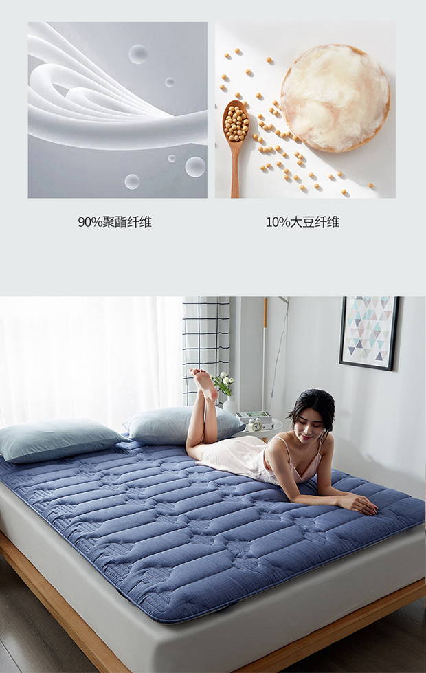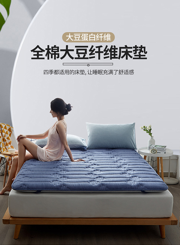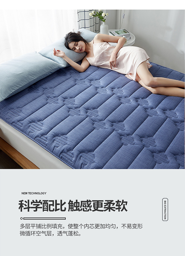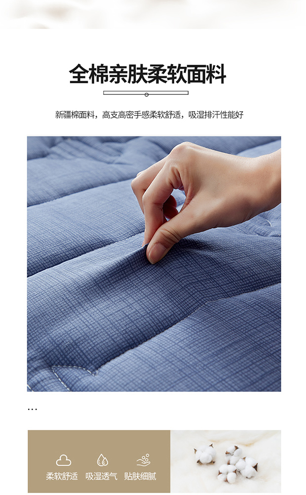 商品名称:红淳家纺 2025新款全棉床垫学生宿舍床褥家用床垫子 蓝色全棉透气床垫
