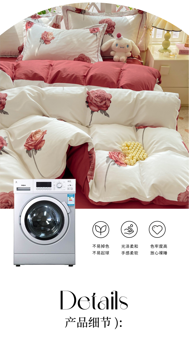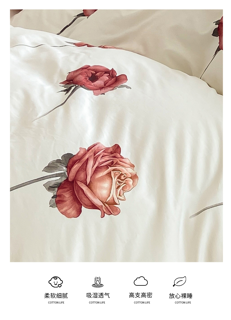 商品名称:红淳家纺 2025新款13376全棉活性印花四件套 一辰叶汐