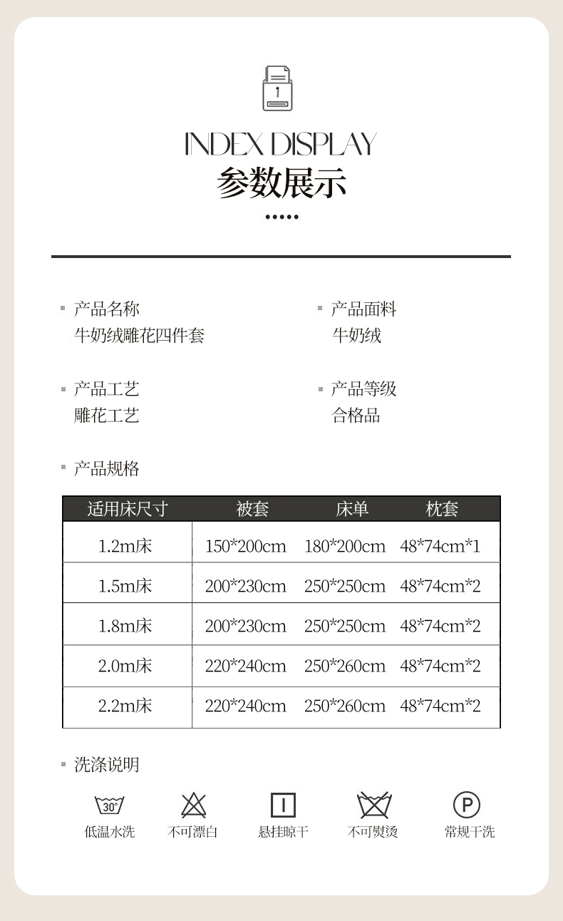 商品名称:(总)爱洛 2025新款牛奶绒四件套牛奶绒雕花四件套纯色牛奶绒四件套