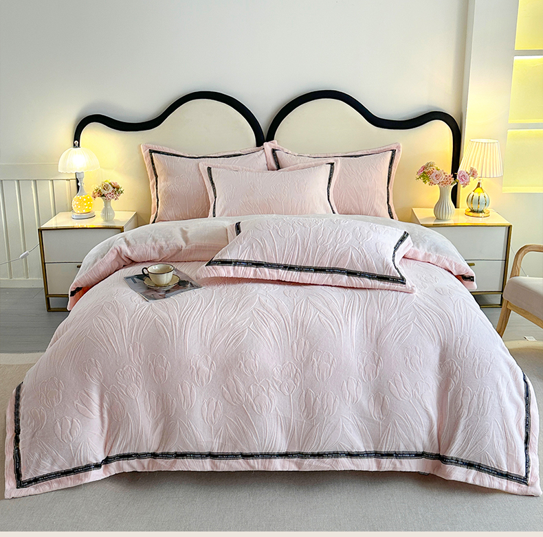 (总)爱洛 2025新款牛奶绒四件套牛奶绒雕花四件套纯色牛奶绒四件套