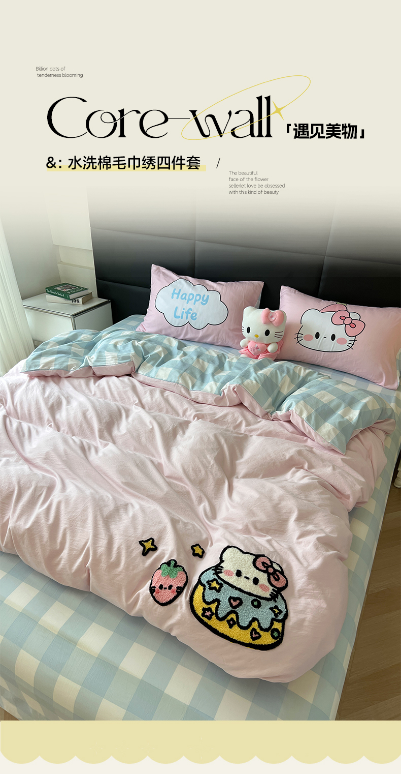 当前位置: 91家纺网 > 商品网购 > 床品套件 > 四件套 > 毛巾绣四件套 > 盼季家纺 2025新款卡通水洗棉毛巾绣四件套 毛巾绣-莓莓蛋糕猫-粉