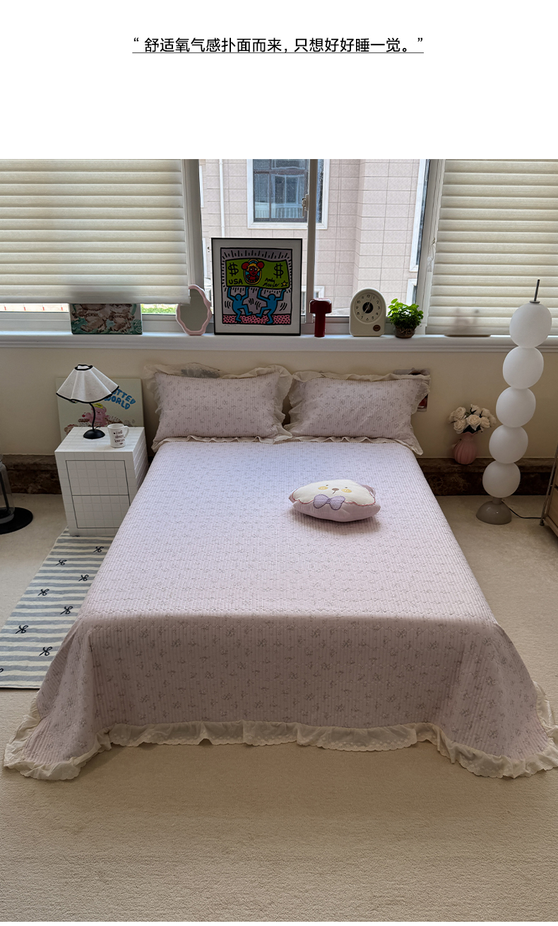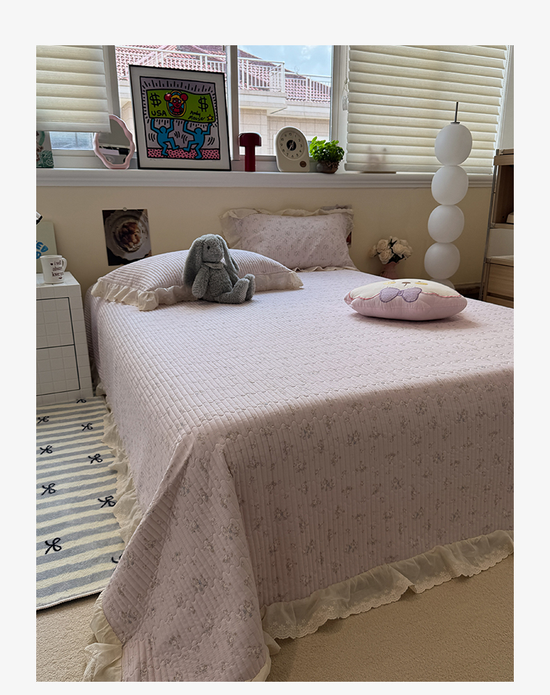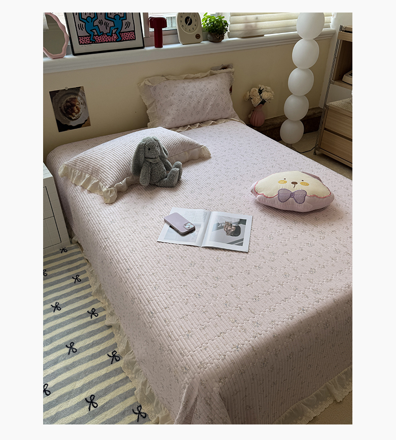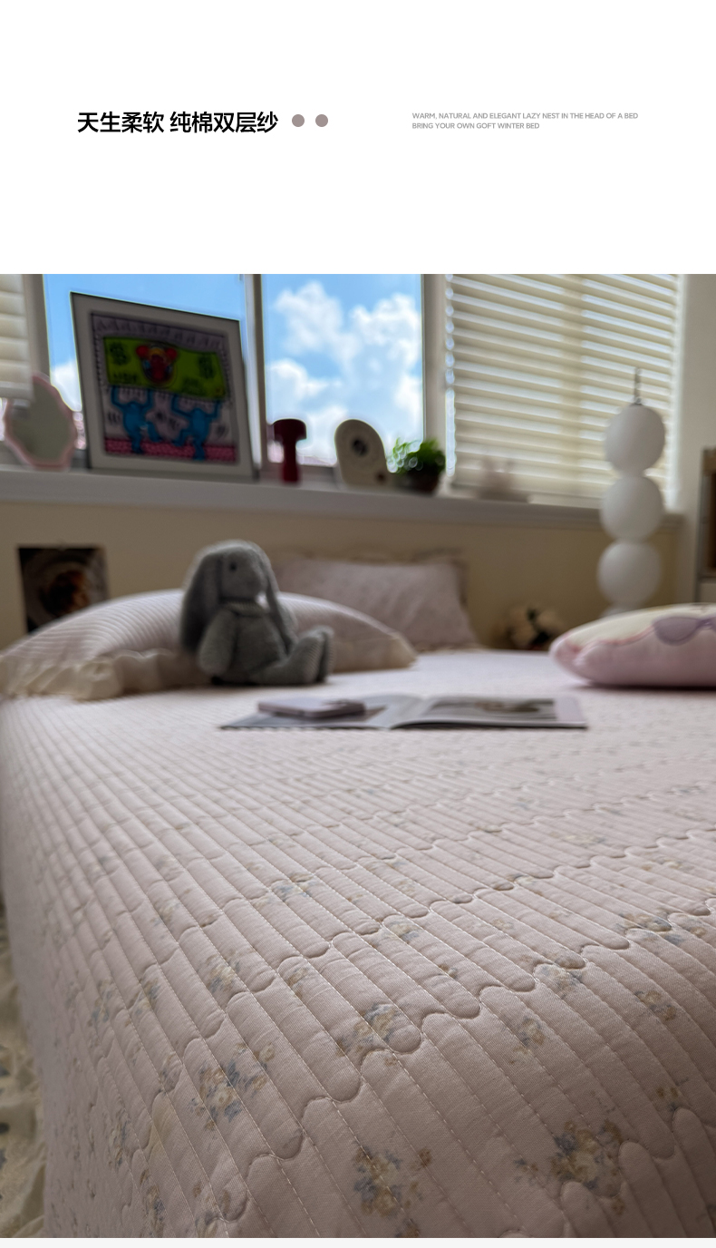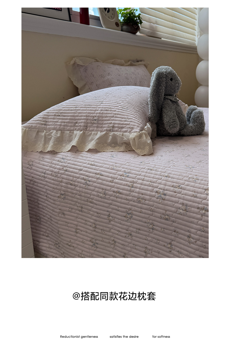 商品名称:一加一 2025新款全棉纯棉双层纱田园风单床盖床盖单件单品床盖 玲兰铛-粉