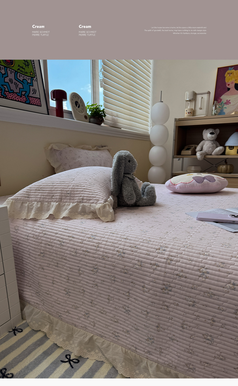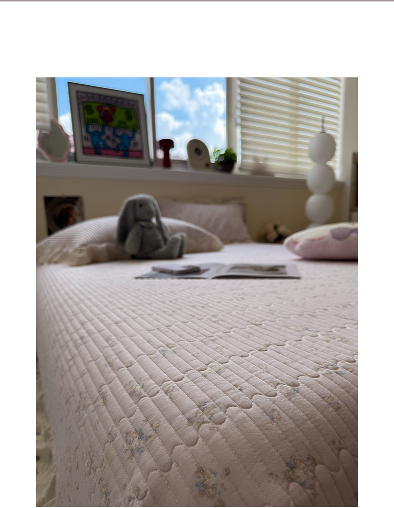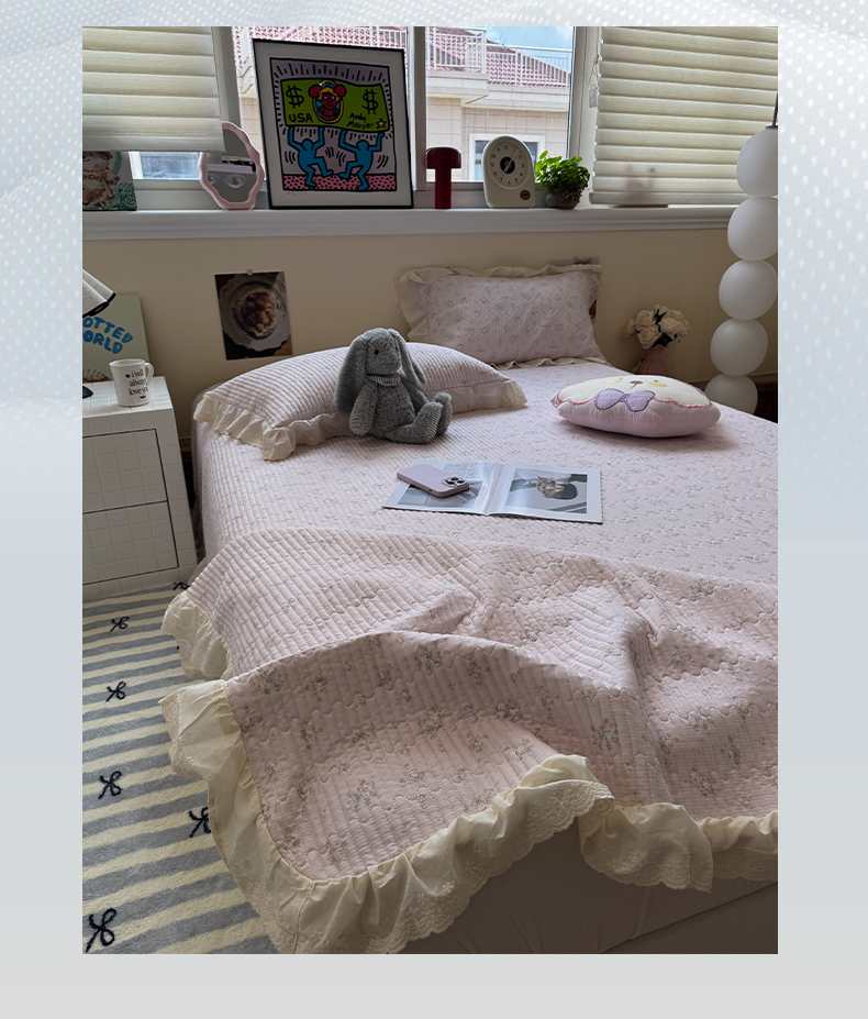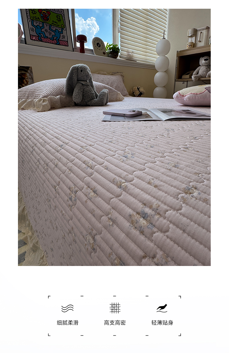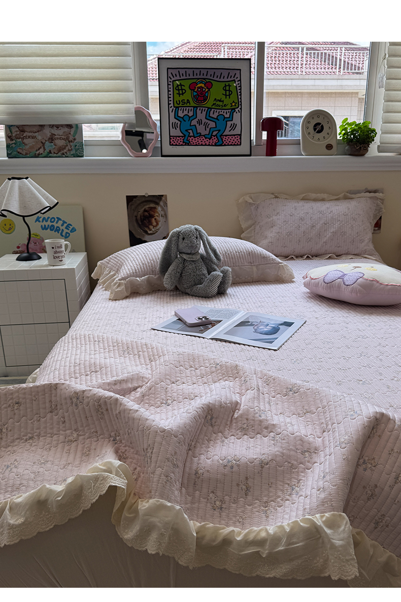 商品名称:一加一 2025新款全棉纯棉双层纱田园风单床盖床盖单件单品床盖 玲兰铛-粉