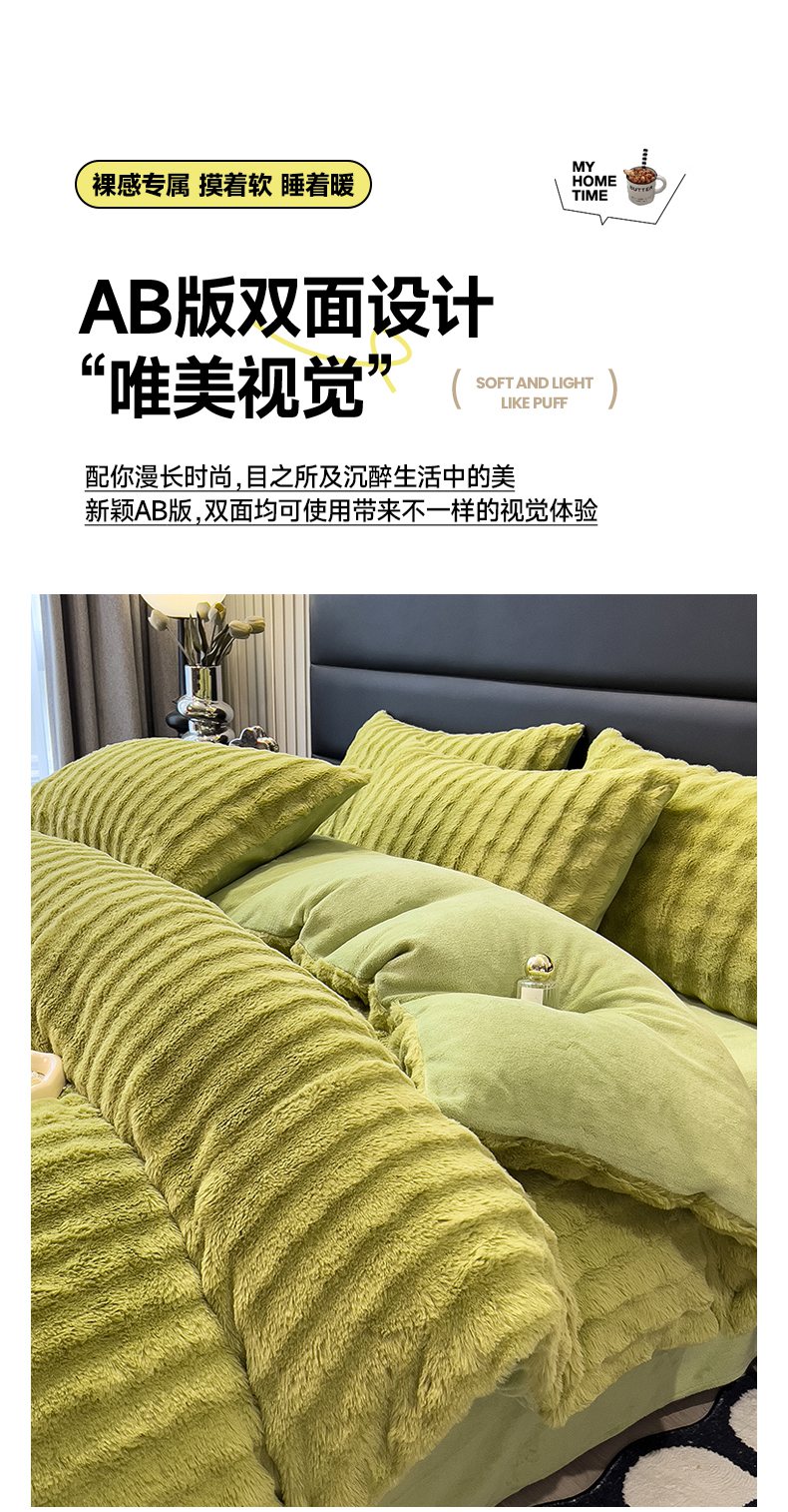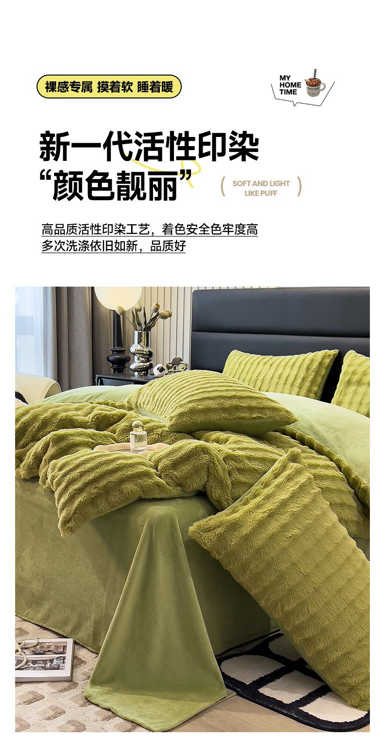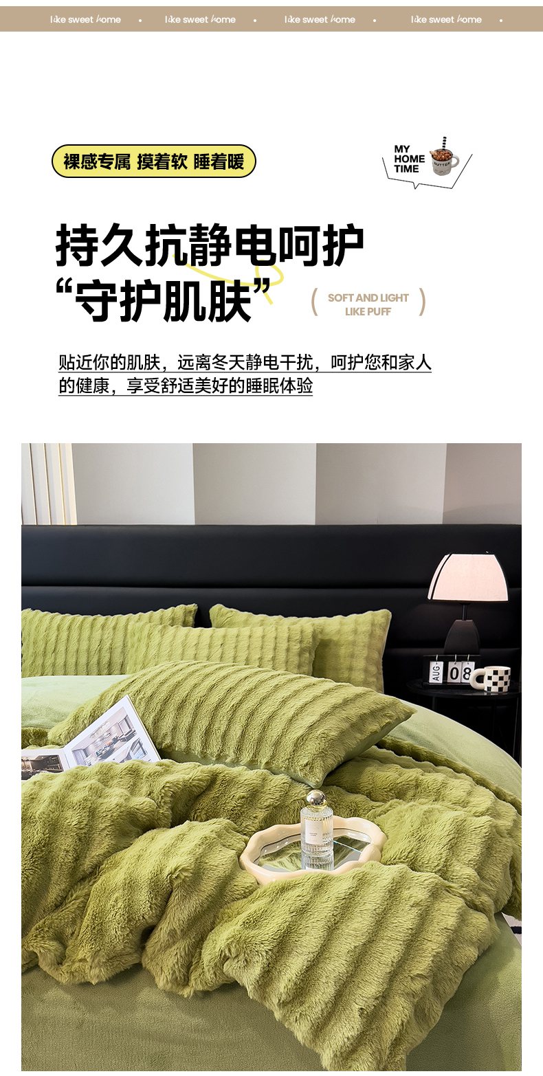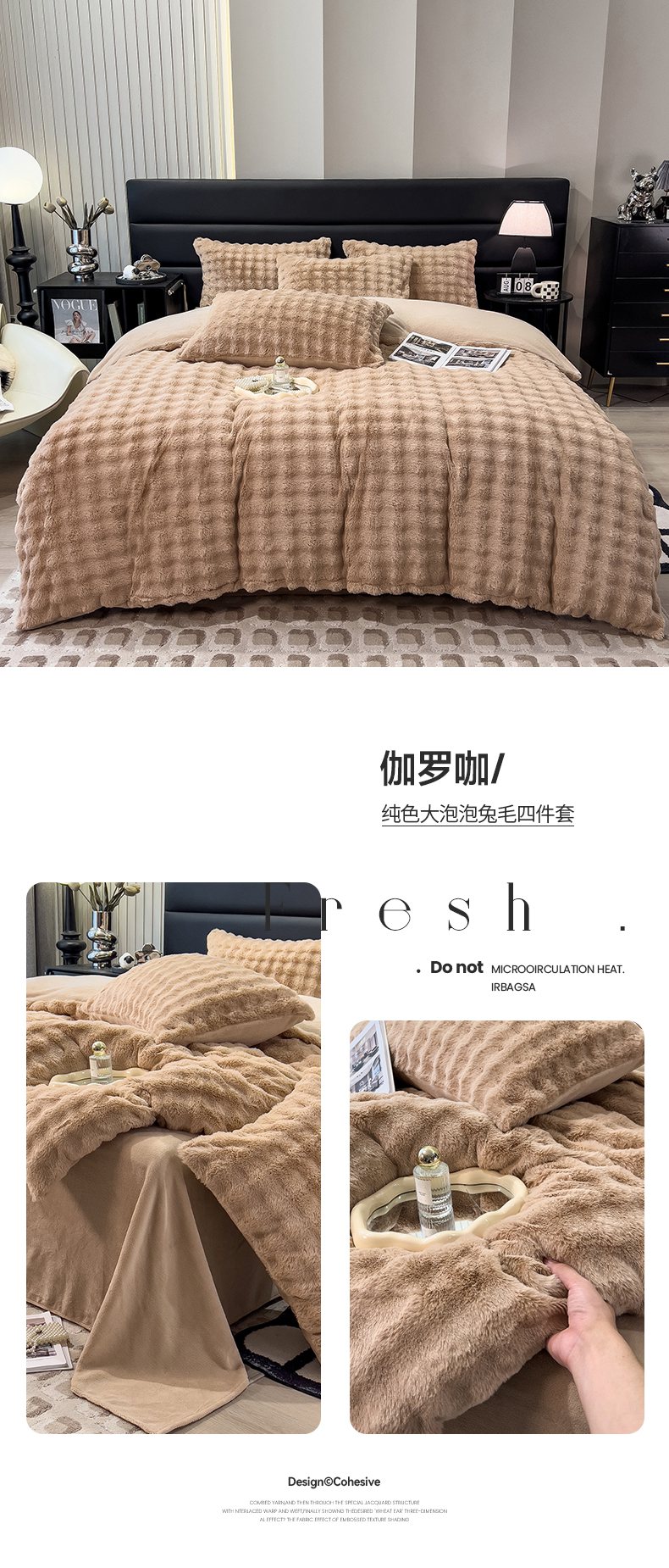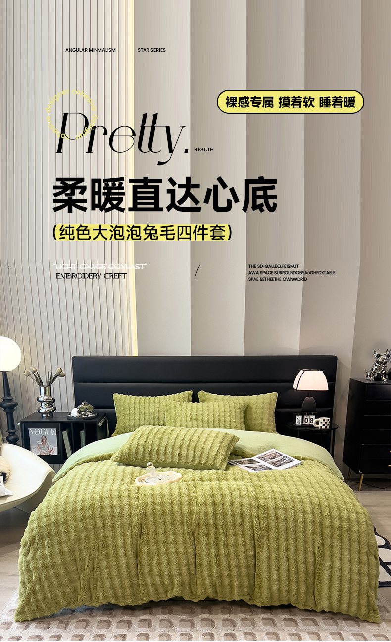 (总)摩妮卡 2025新款加厚大泡泡兔毛牛奶绒四件套,暖白+暗苔绿,暗苔绿,伽罗咖,槿紫,暖白+伽罗咖,韶粉